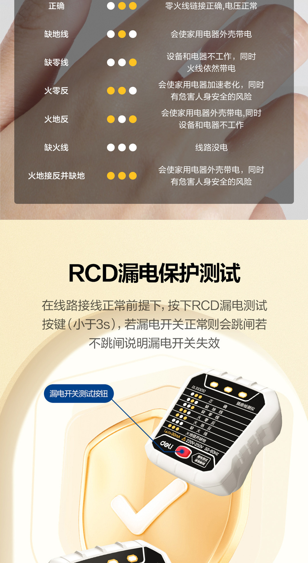 델리 공구 DL333010 소켓 라인 탐지기 그라운드 제로 화재 전원 코드 다기능 위상 누설 측정스토어 가기