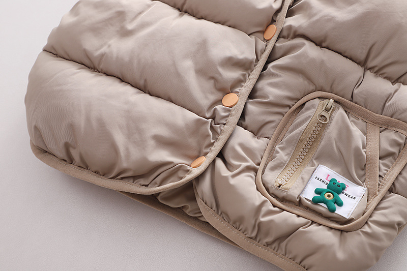 어린이 겨울 세트 새로운 스타일 면화 조끼 기모 소년 소녀를위한 두꺼운 겨울 3 피스 세트 아기 후드 헤어스토어 가기
