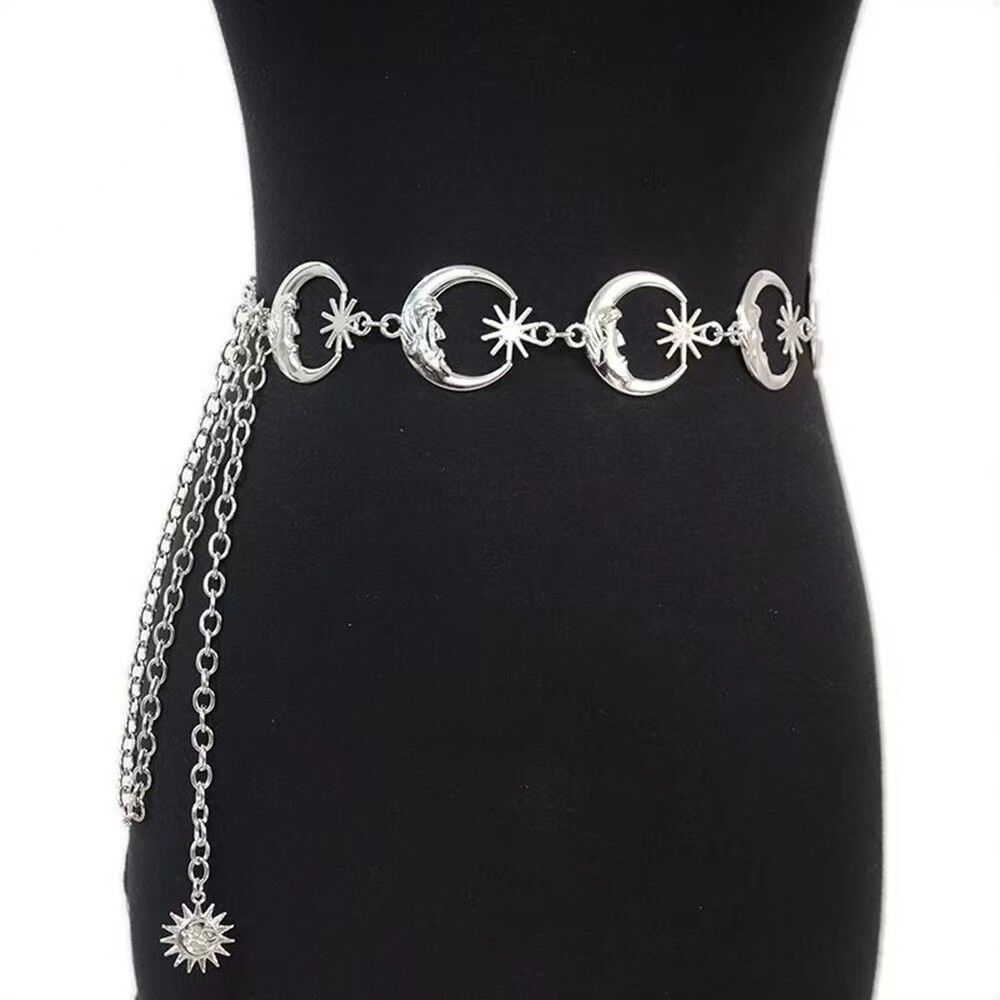 유럽과 미국의 국경 문 스타 메탈 허리 체인 여성 패션 바지 체인 장식 힙합 올 매치 스커트 허리 체인