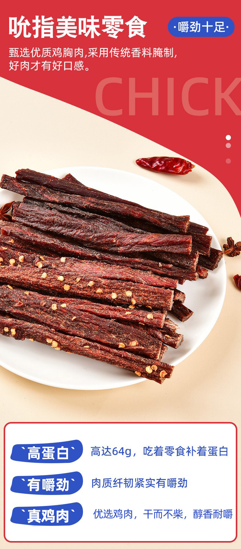 매콤한 손으로 찢은 자연건조 닭가슴살 도매 500g 통조림 치킨 스트립 바로 먹을 수 있는 저지방 스낵 저지방 스낵스토어 가기