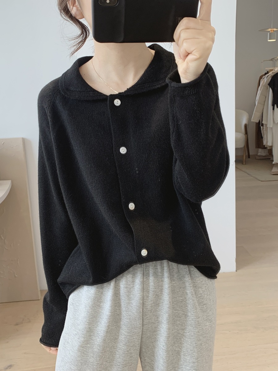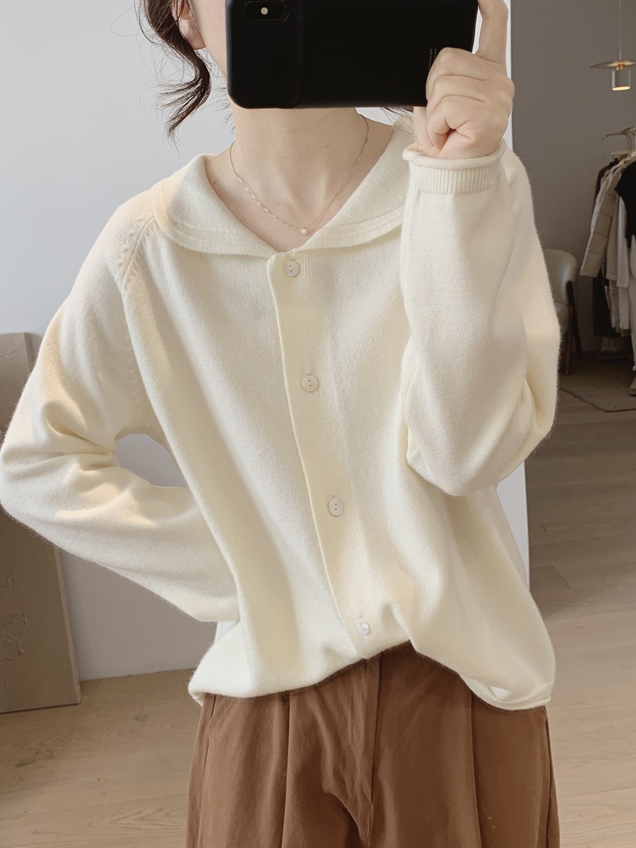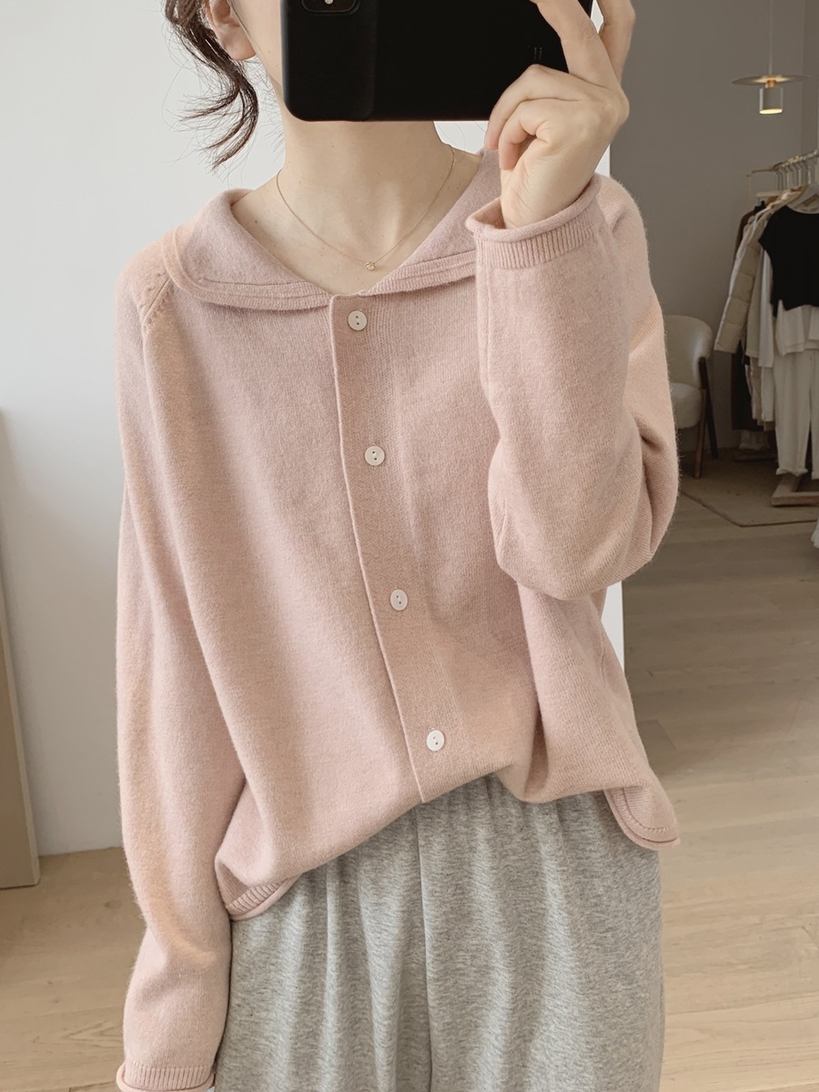 여성 인형 칼라 스웨터 코트 봄과 가을 새로운 느슨한 슬리밍 연령 감소 라글란 소매 작은 신선한 스웨터 카디건스토어 가기