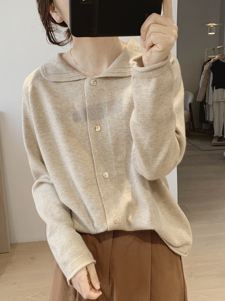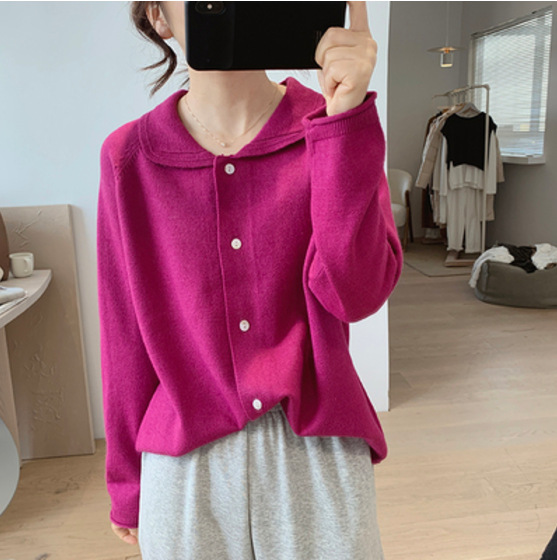 여성 인형 칼라 스웨터 코트 봄과 가을 새로운 느슨한 슬리밍 연령 감소 라글란 소매 작은 신선한 스웨터 카디건