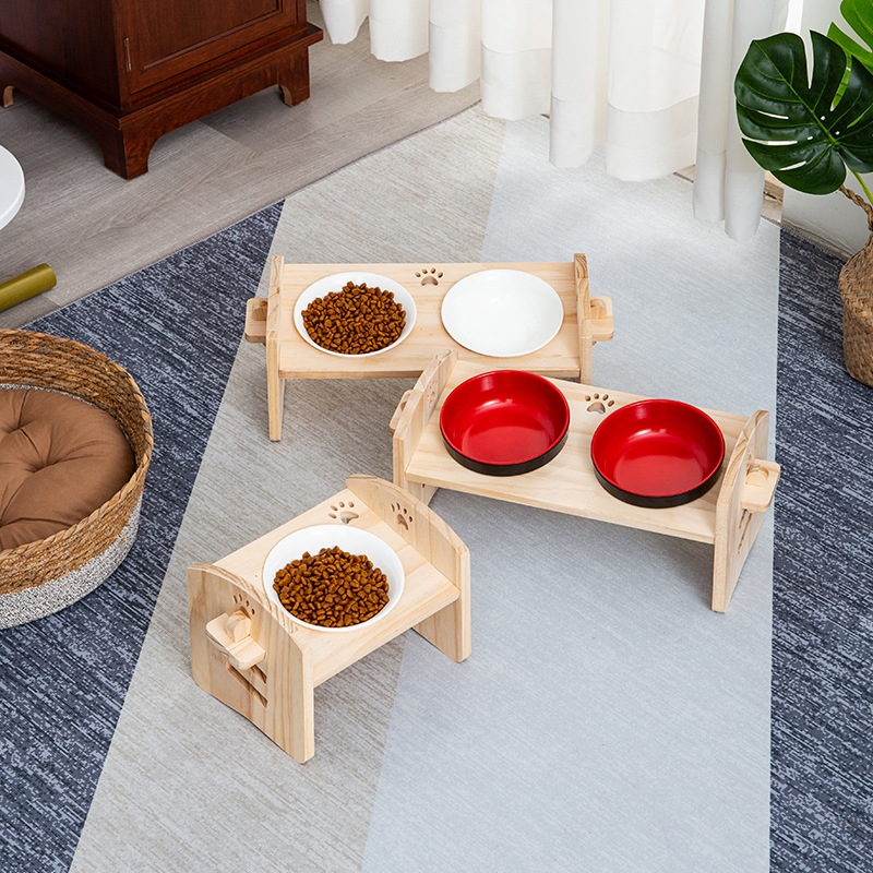 개 그릇 m 콩 고양이 그릇 랙 작은 개 조정 가능한 베벨 보호 자궁 경부 더블 보울 랙 안티 노크 새끼 고양이없이스토어 가기