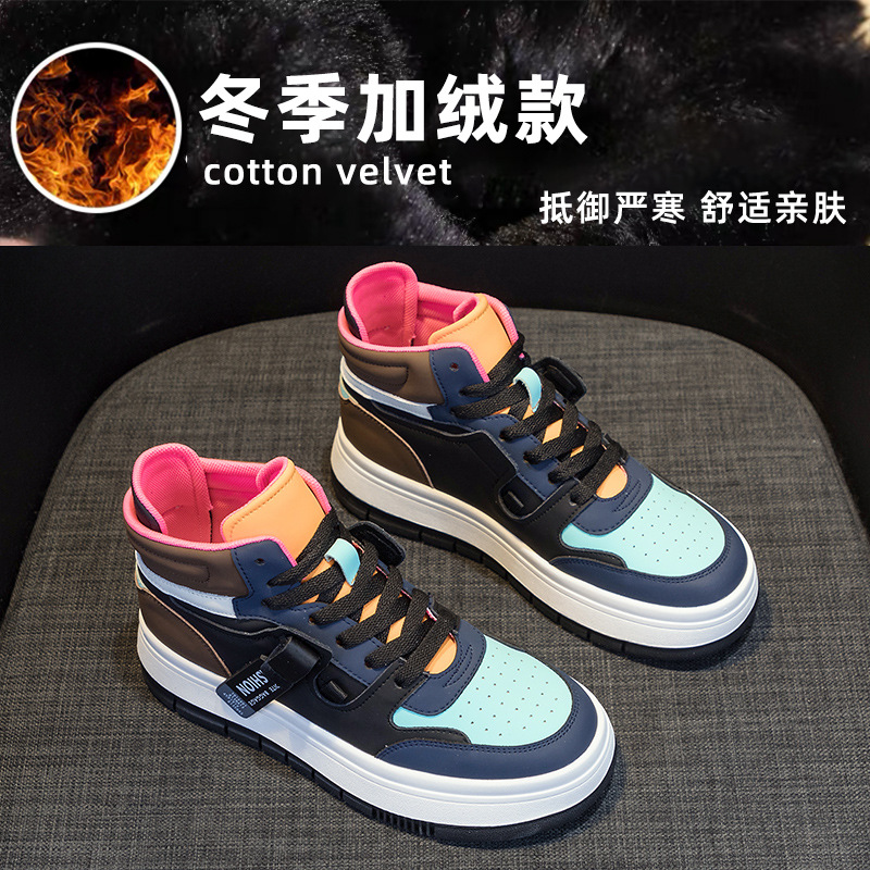 여성을 위한 한국판 인터넷 연예인 하이탑 슈즈 2025 신작 가을 겨울 다용도 캐주얼 스니커즈 플랫 화이트 슈즈 핫 스타일스토어 가기