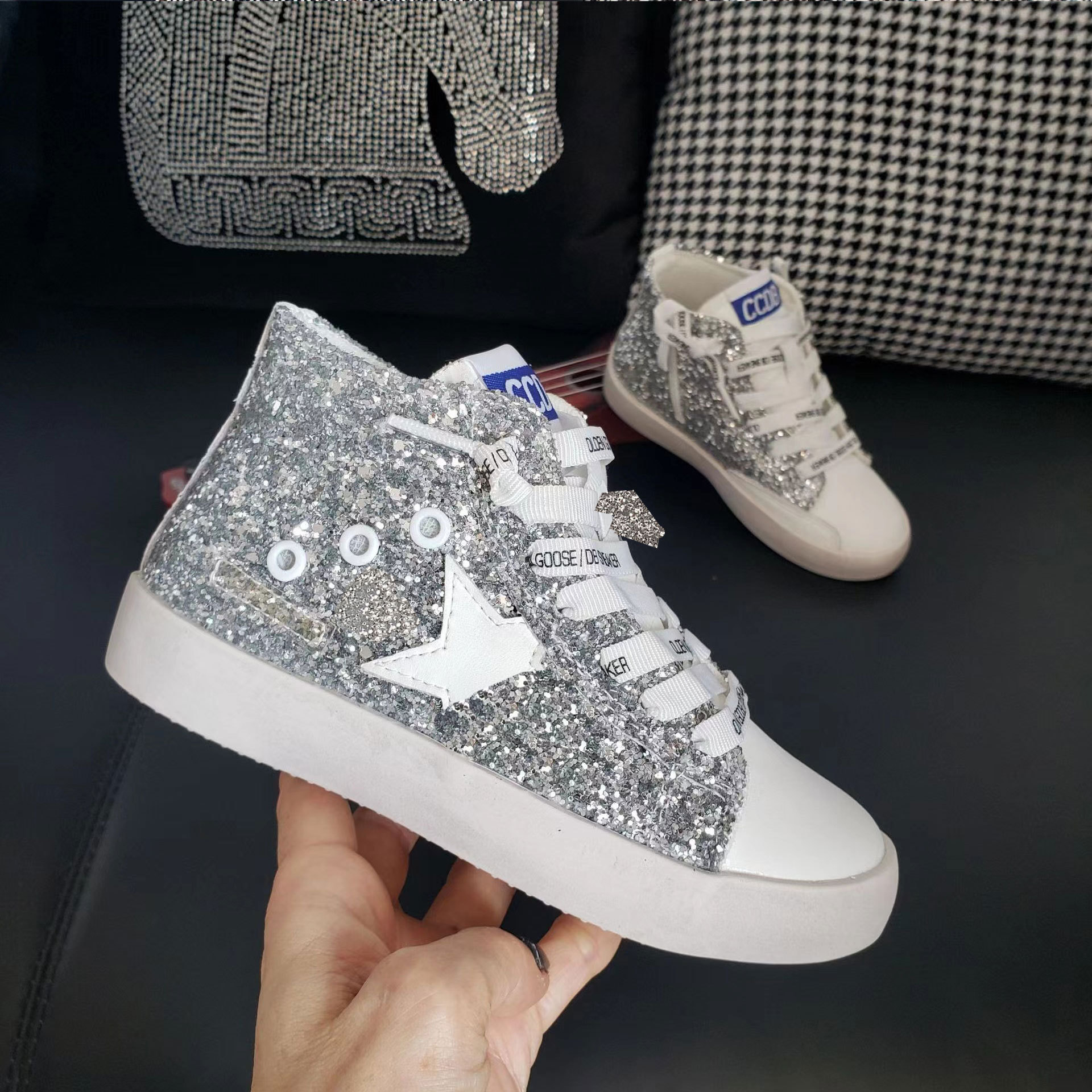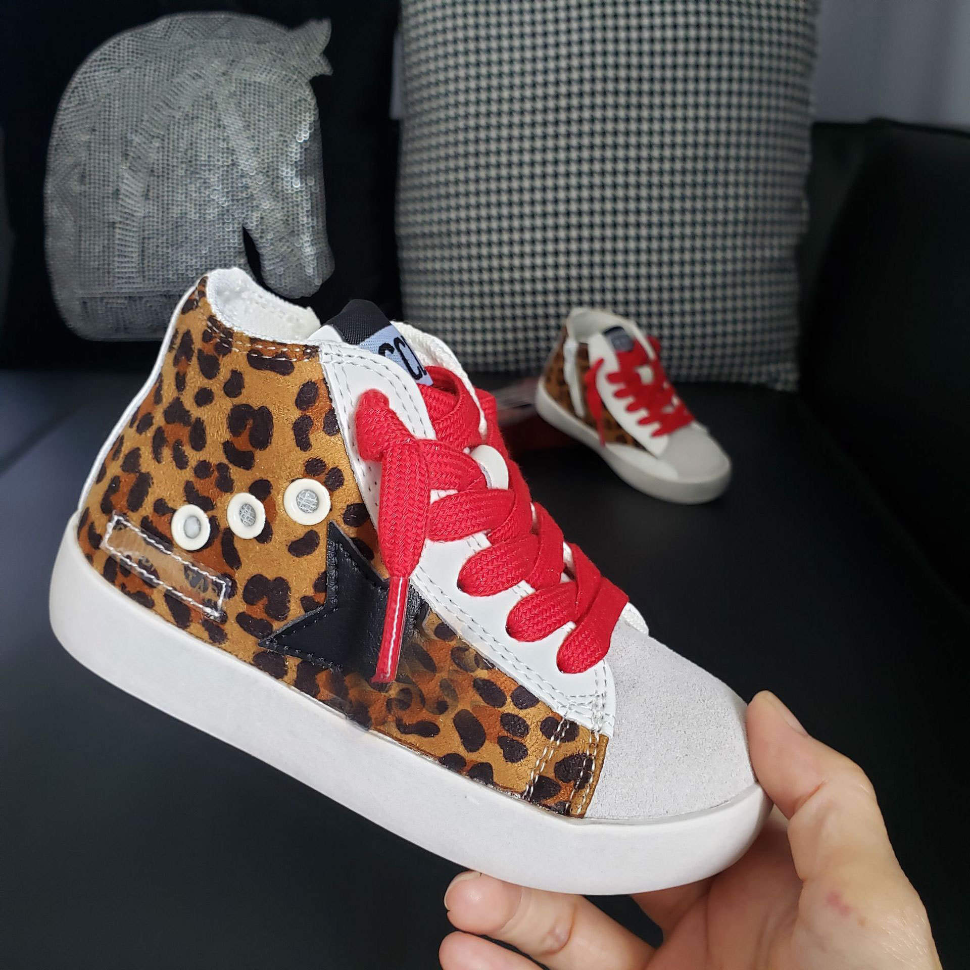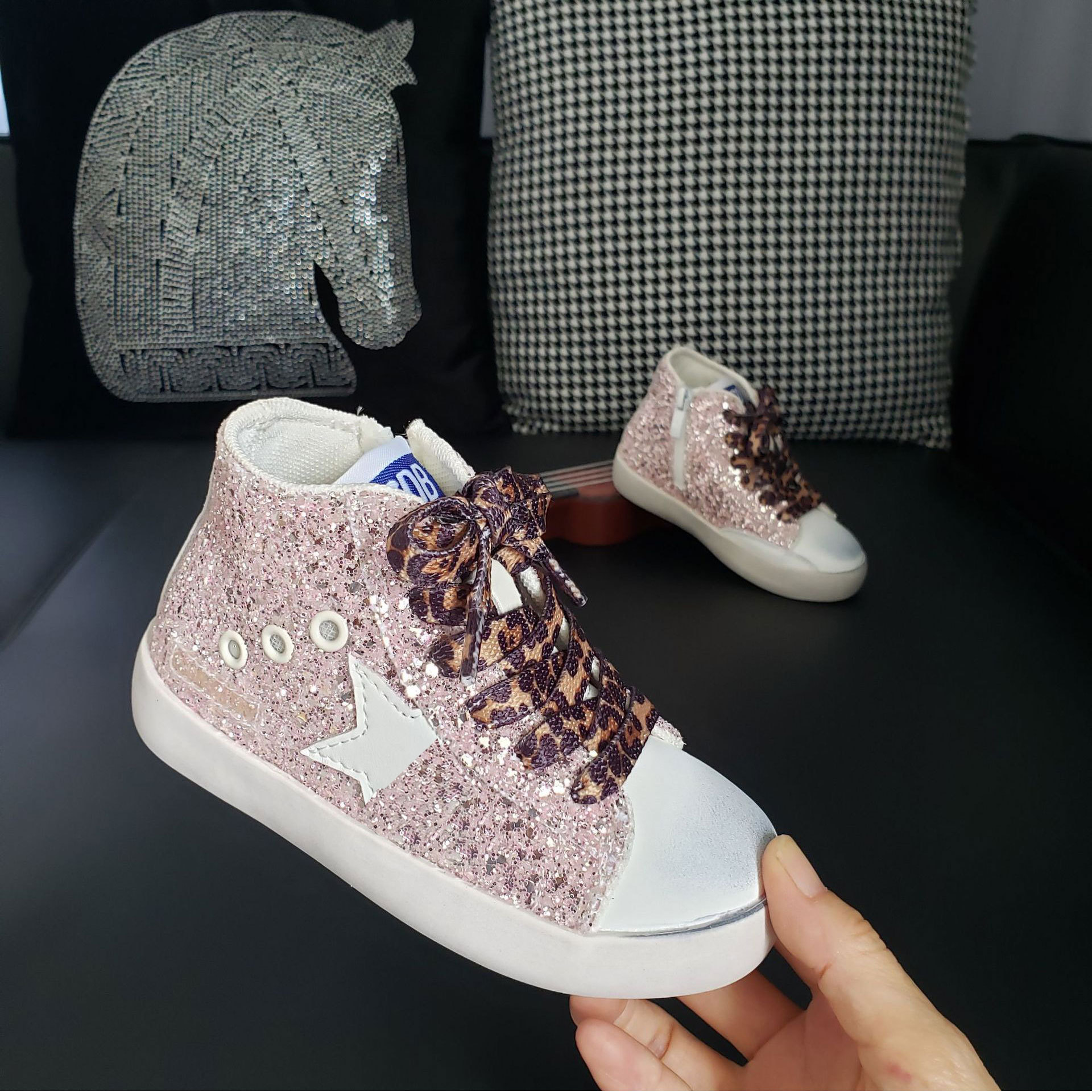 가을 2282 하이탑 어린이 스타 보드 신발 정품 가죽 더러운 신발 스팽글 여아 캐주얼 신발 소프트 솔 남성용 작은 더러운 신발스토어 가기