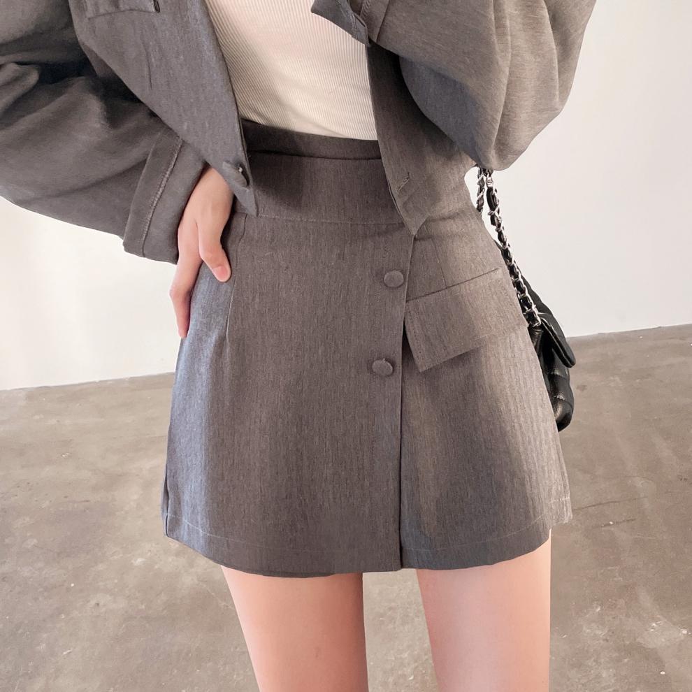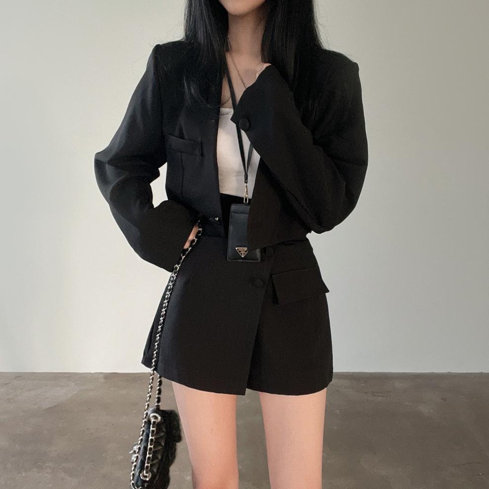 한국 세련된 가을 짧은 우아한 원 버튼 세트 재킷 + 스커트 A 라인 스커트 투피스 세트 여성스토어 가기