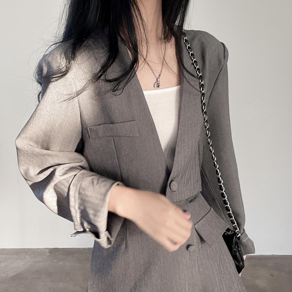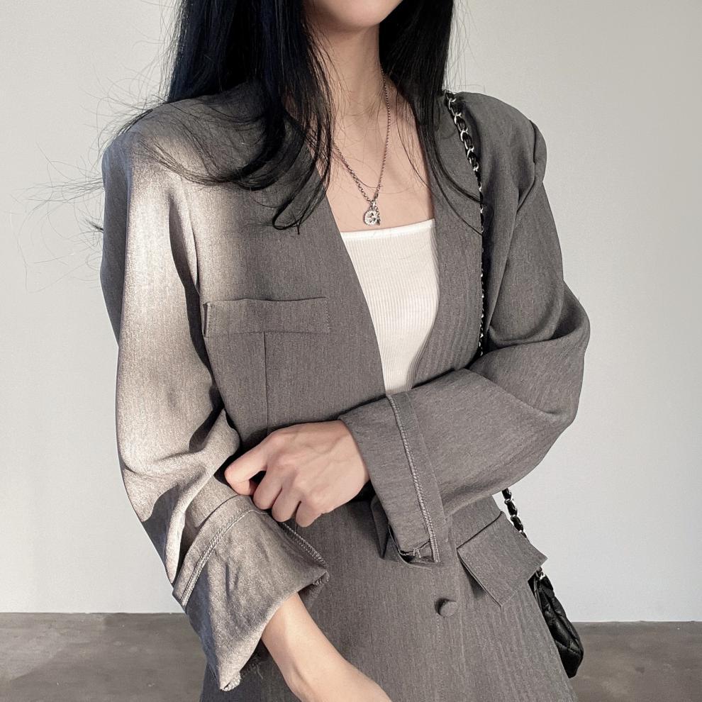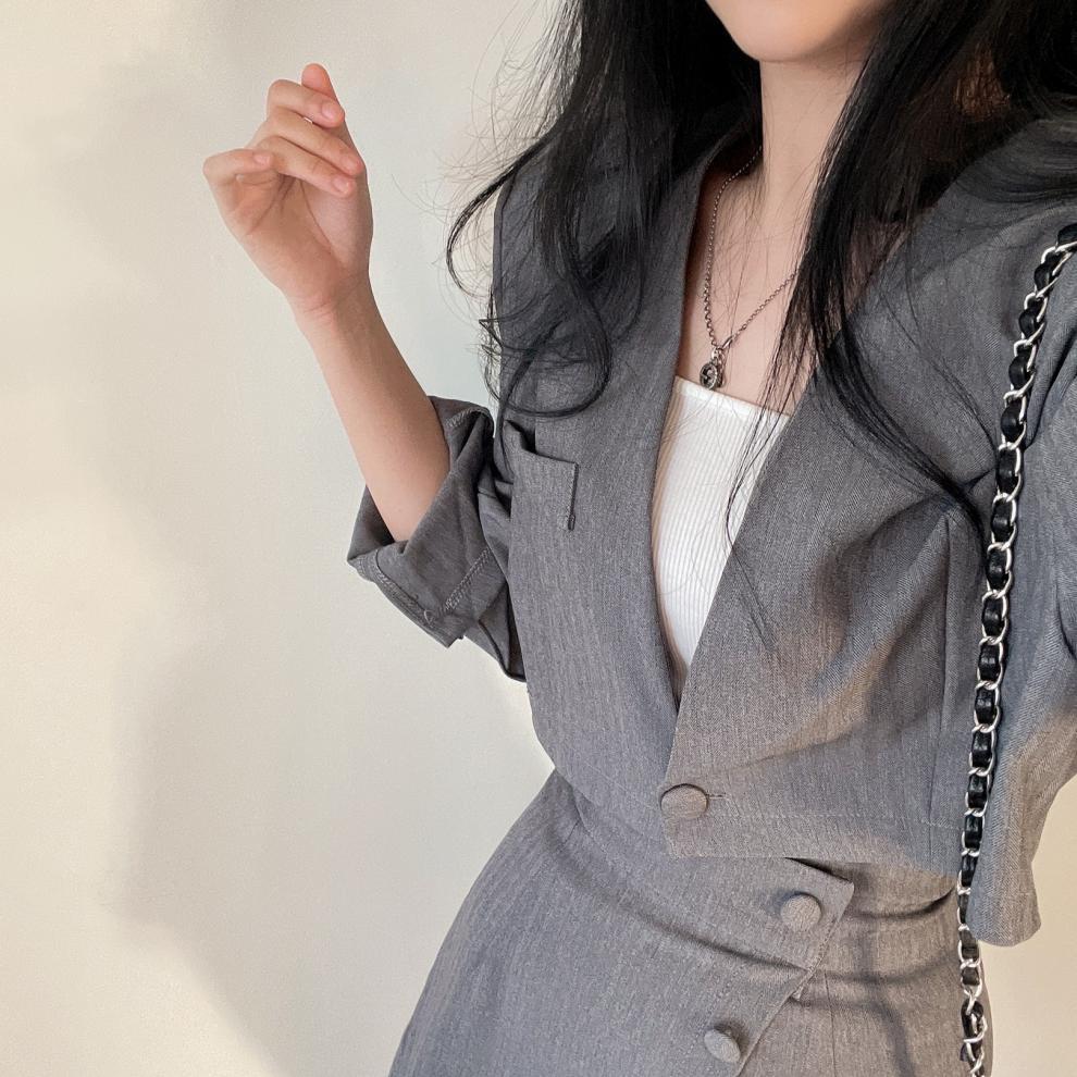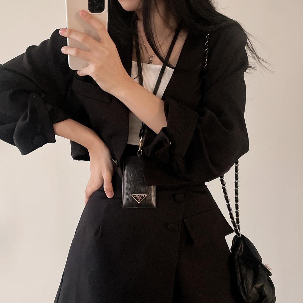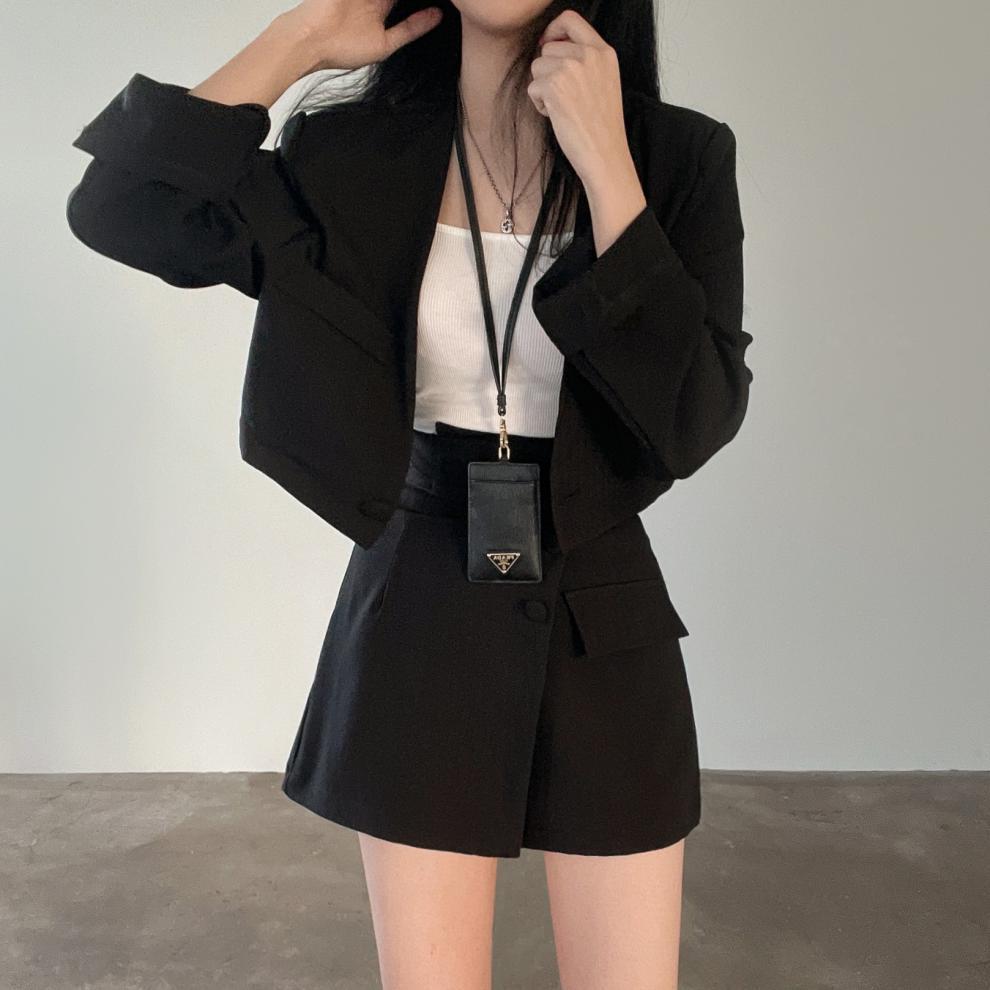 한국 세련된 가을 짧은 우아한 원 버튼 세트 재킷 + 스커트 A 라인 스커트 투피스 세트 여성