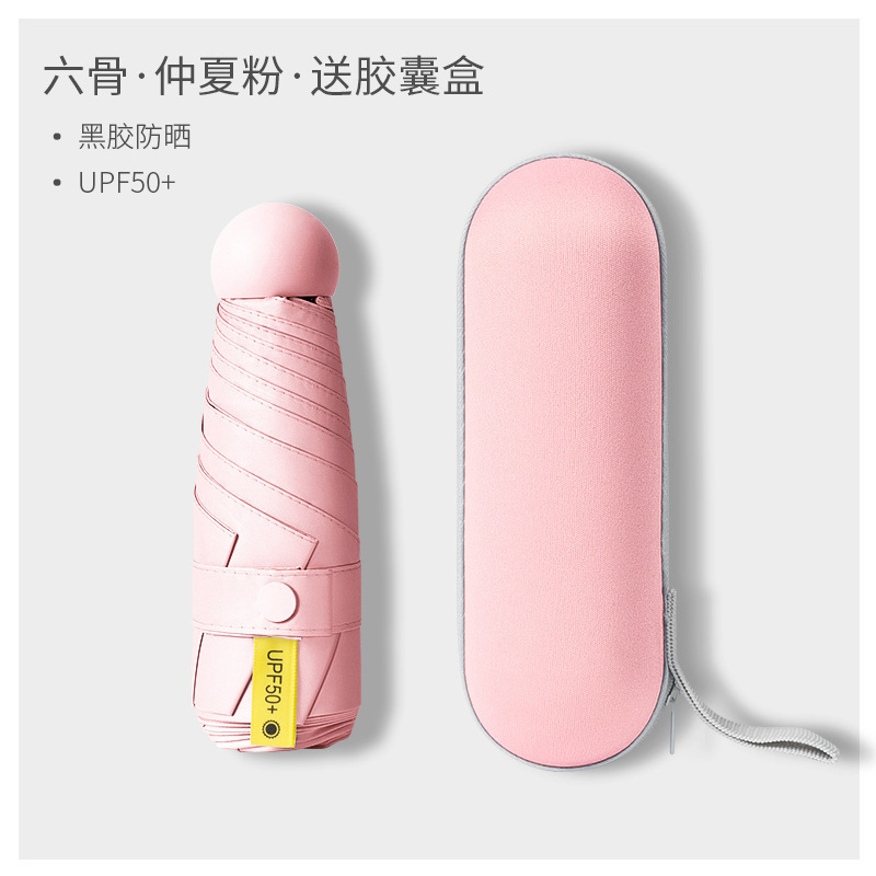 50% off 우산 6단 초경량 미러박스 캡슐 우산 차양 우산 블랙코팅 자외선 차단 광고 우산 태양 우산