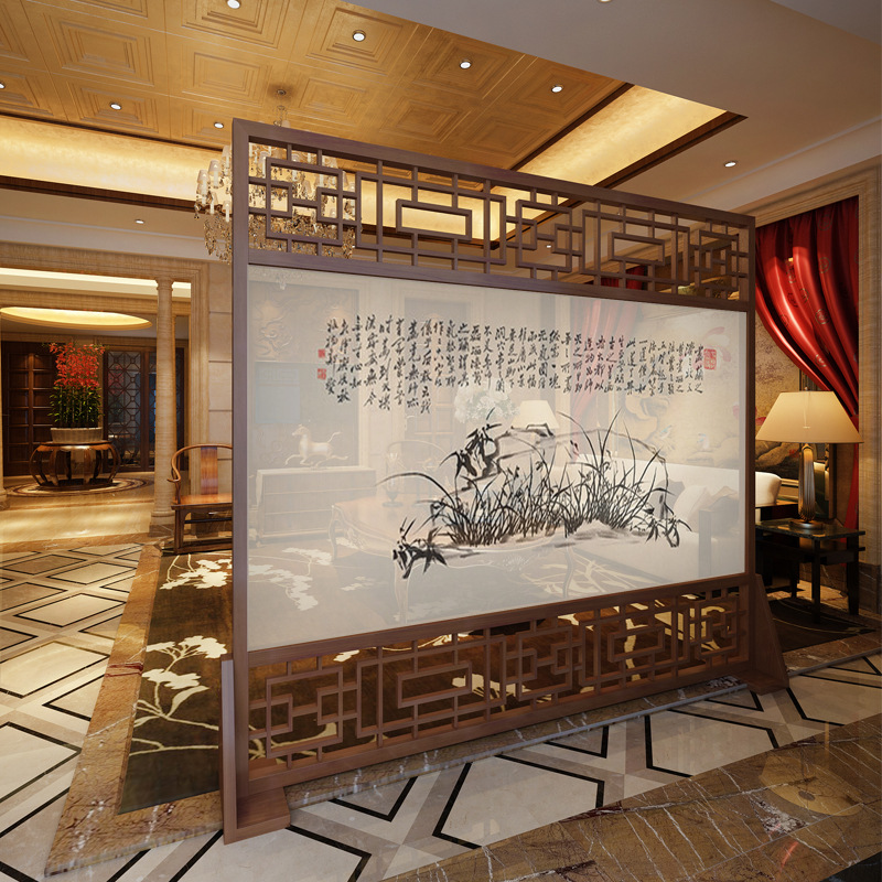 중국식 단단한 나무 모바일 스크린 파티션 벽 거실 침실 사무실 단단한 나무 중공 입구 복도 스크린