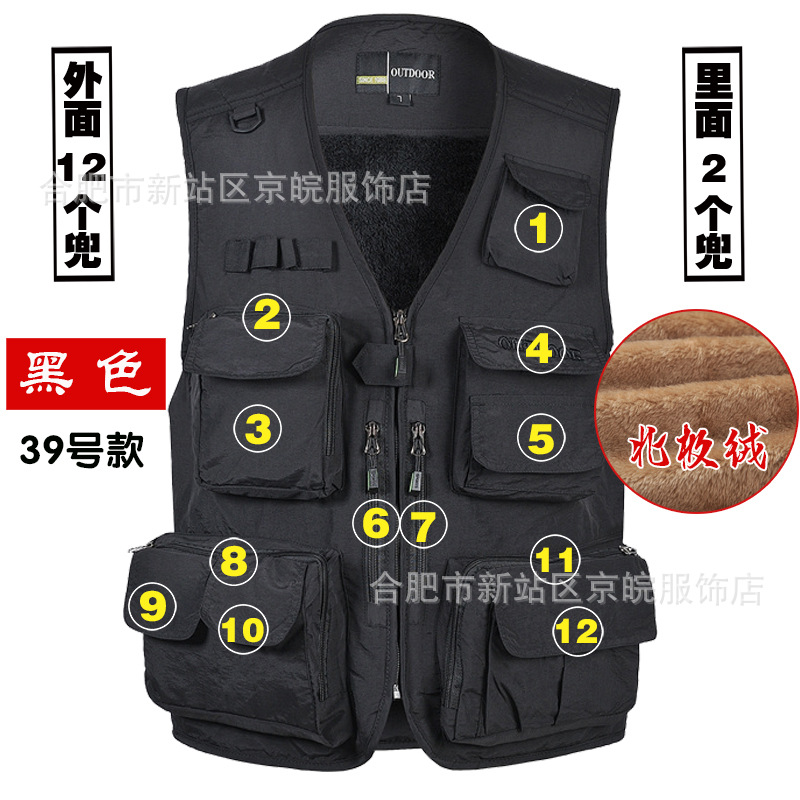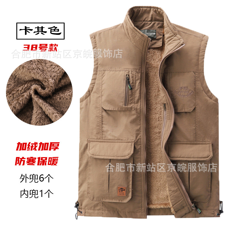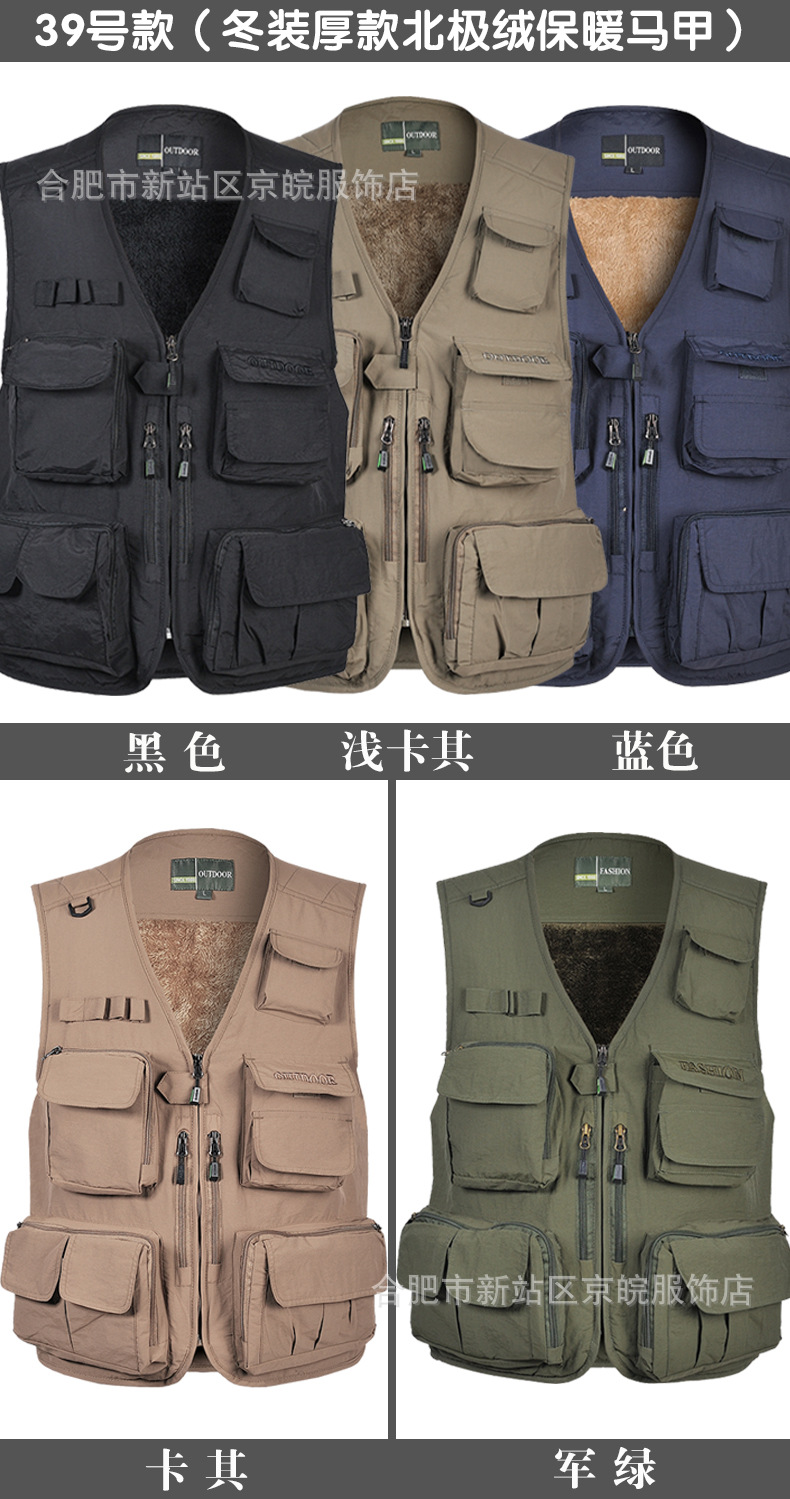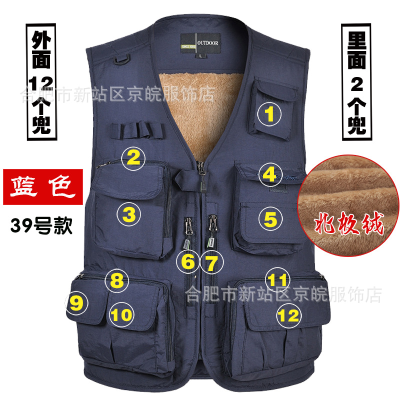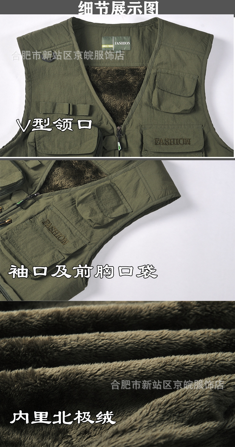 겨울 따뜻한 조끼 남성용 멀티 포켓 기모 두꺼운 레저 조끼 야외 여행 등산 야외 겨울 옷스토어 가기