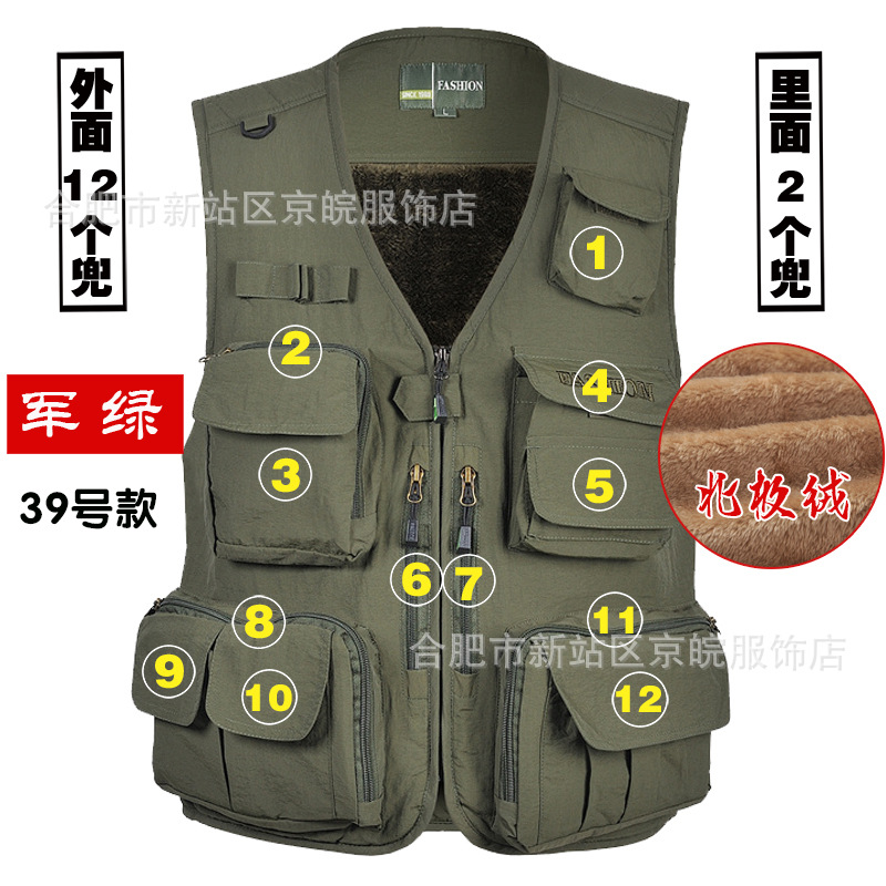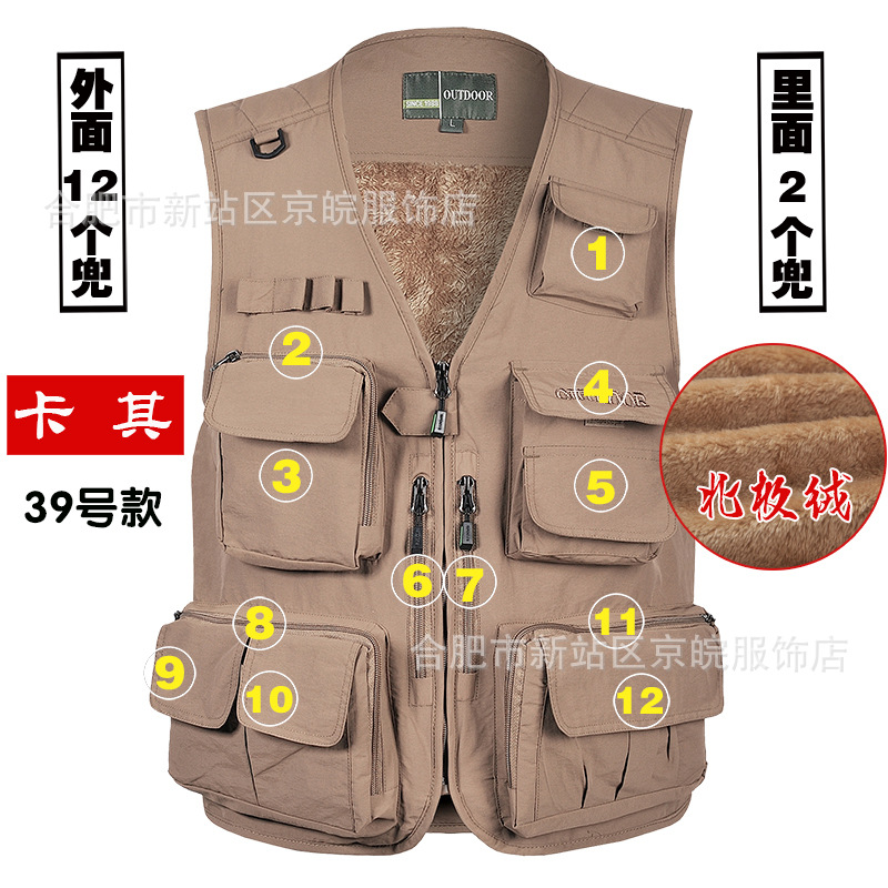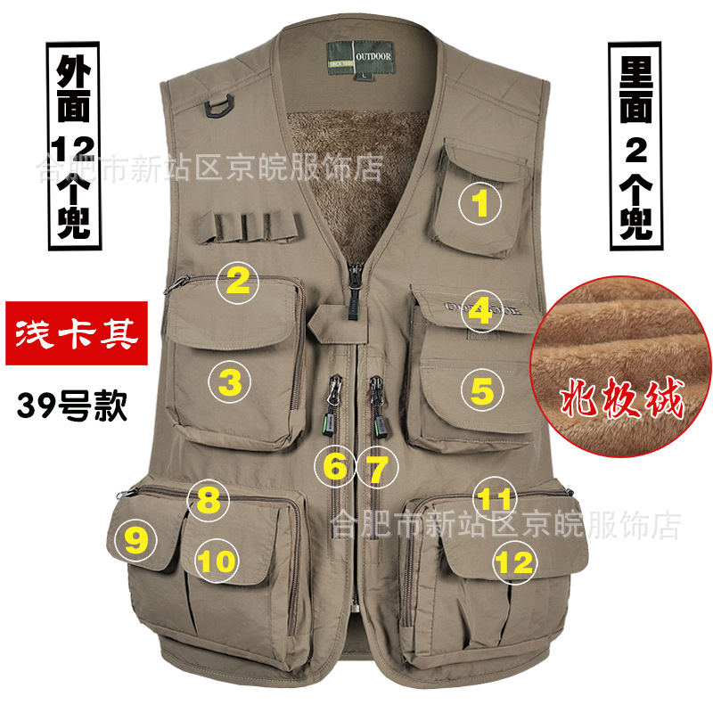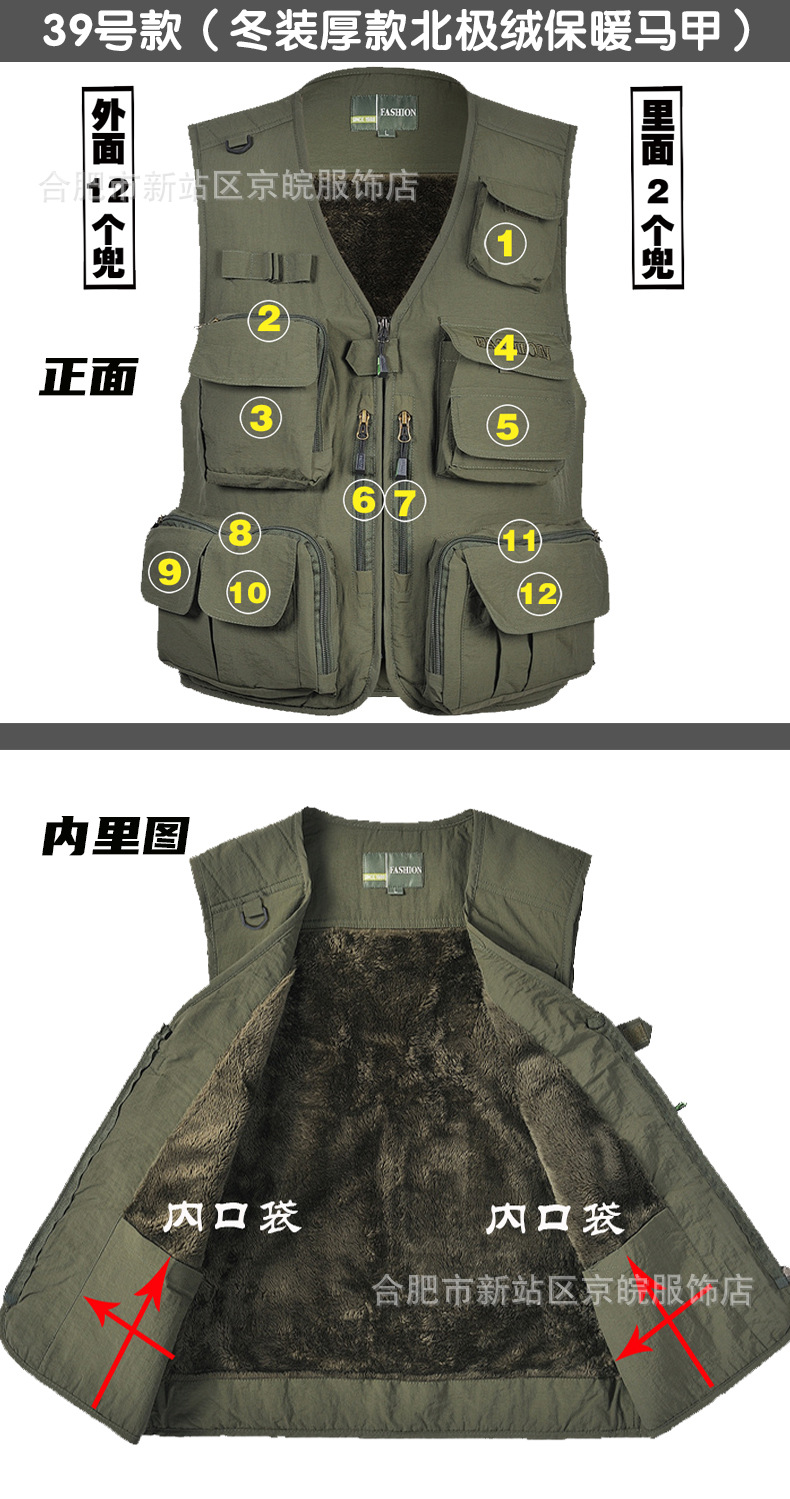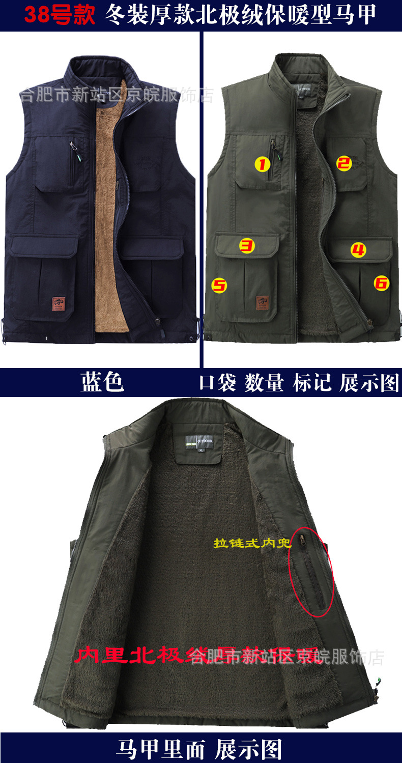 겨울 따뜻한 조끼 남성용 멀티 포켓 기모 두꺼운 레저 조끼 야외 여행 등산 야외 겨울 옷스토어 가기
