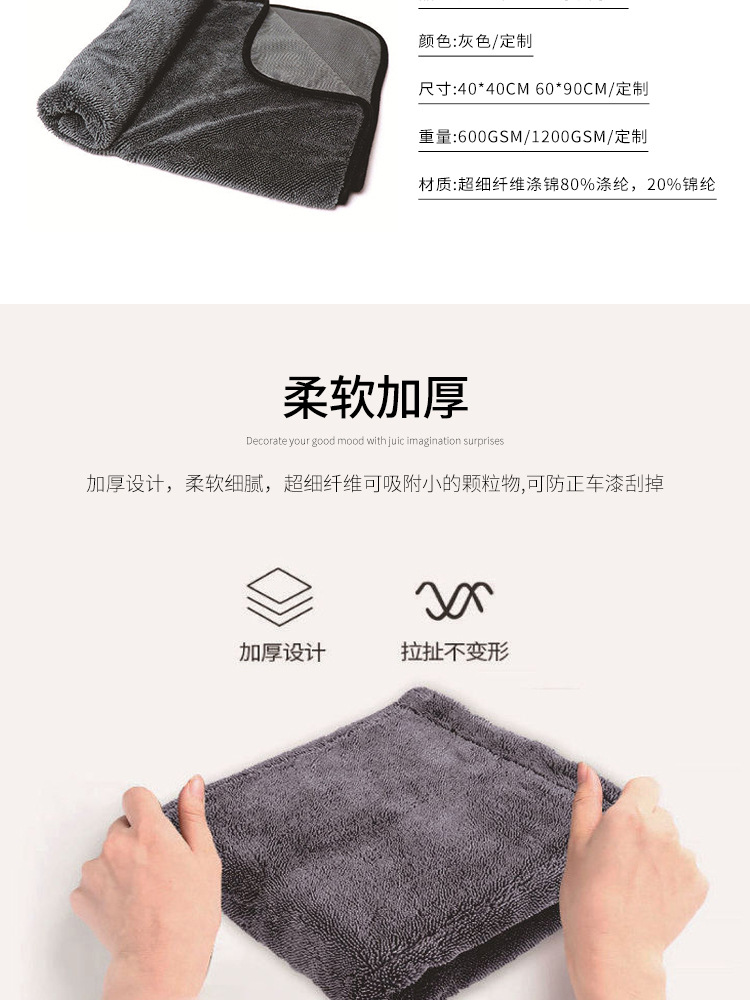 국경 간 도매용 꼬임 직물 600g 초극세사 자동차 타월 세차용 두꺼운 꼬임형 물 흡수 타월스토어 가기