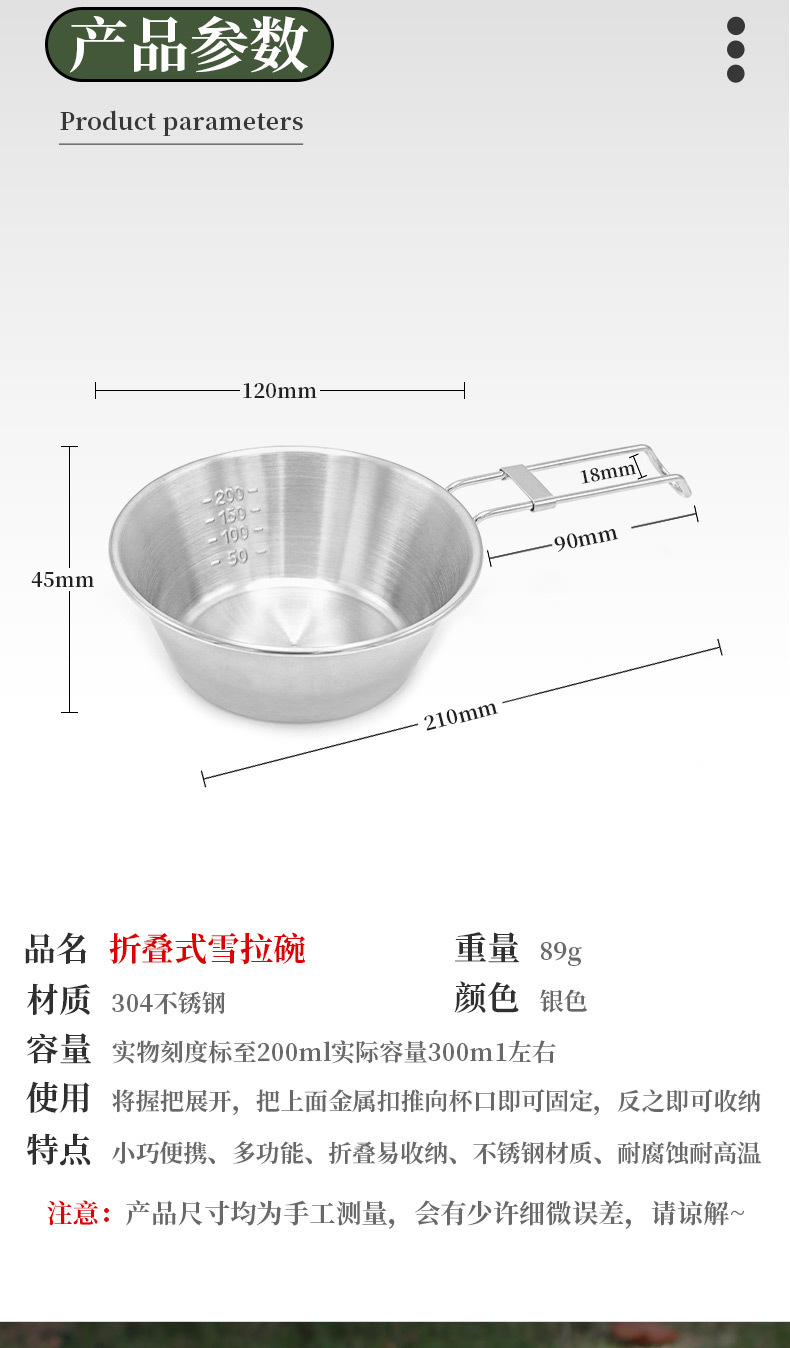 야외 접이식 휴대용 손잡이 그릇 304 스테인레스 스틸 캠핑 피크닉 그릇 야외 캠핑 식기 슐라 그릇스토어 가기