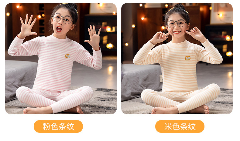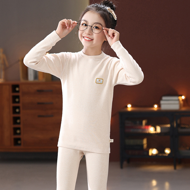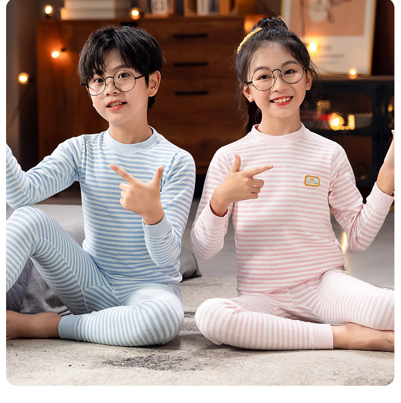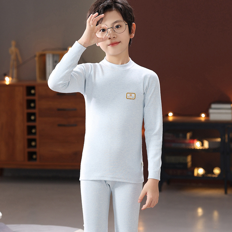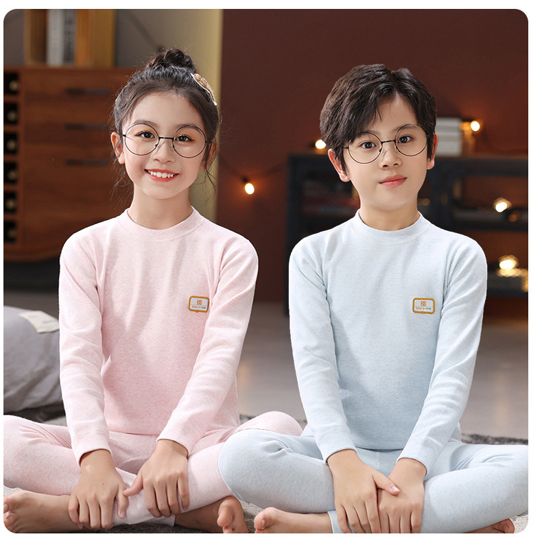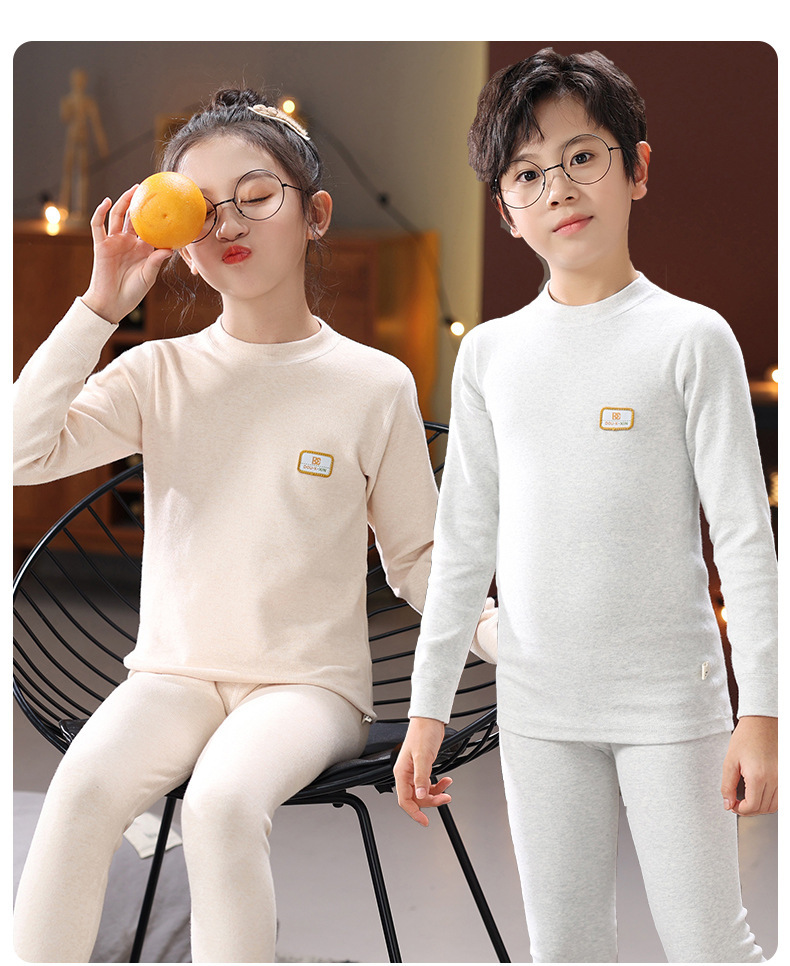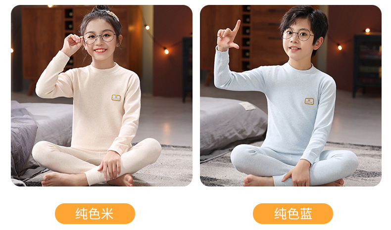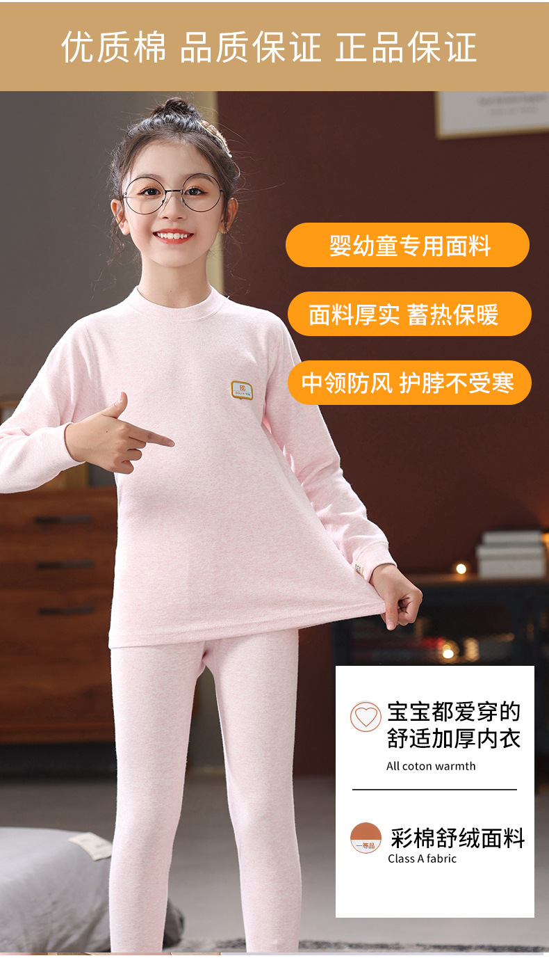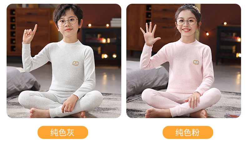 어린이 가을 의류 및 바지 순수 코튼 중간 높은 칼라 남성 및 소녀 셔츠 및 바지 십대 셔츠는 벨벳 컬러 코튼 열 속옷 세트스토어 가기