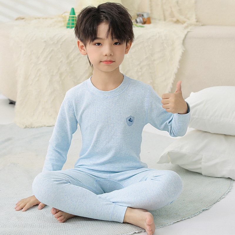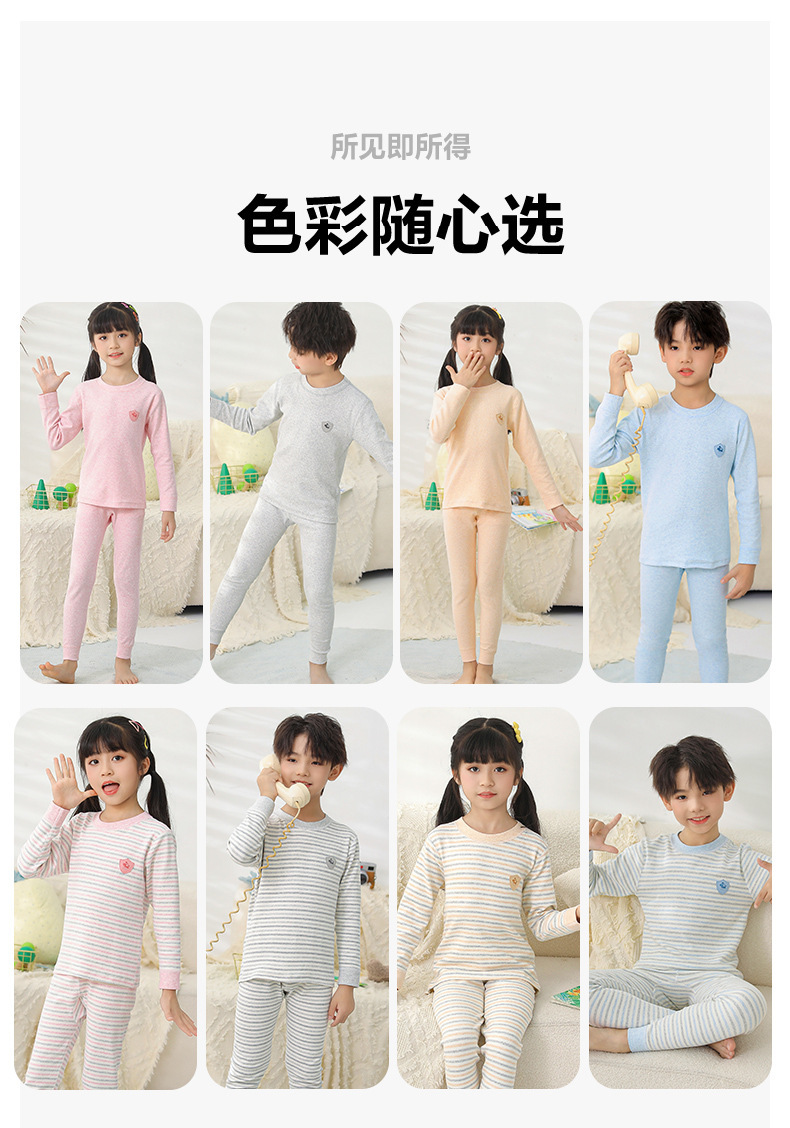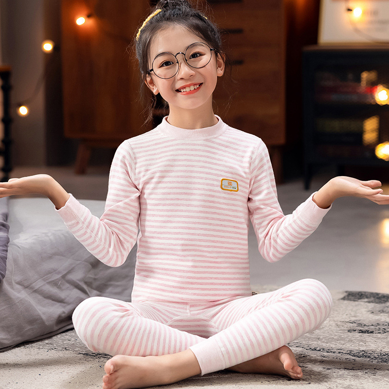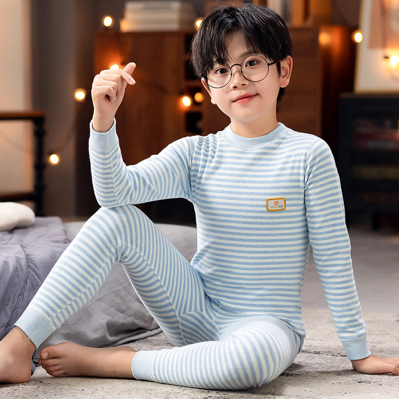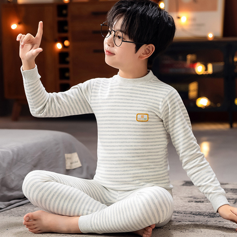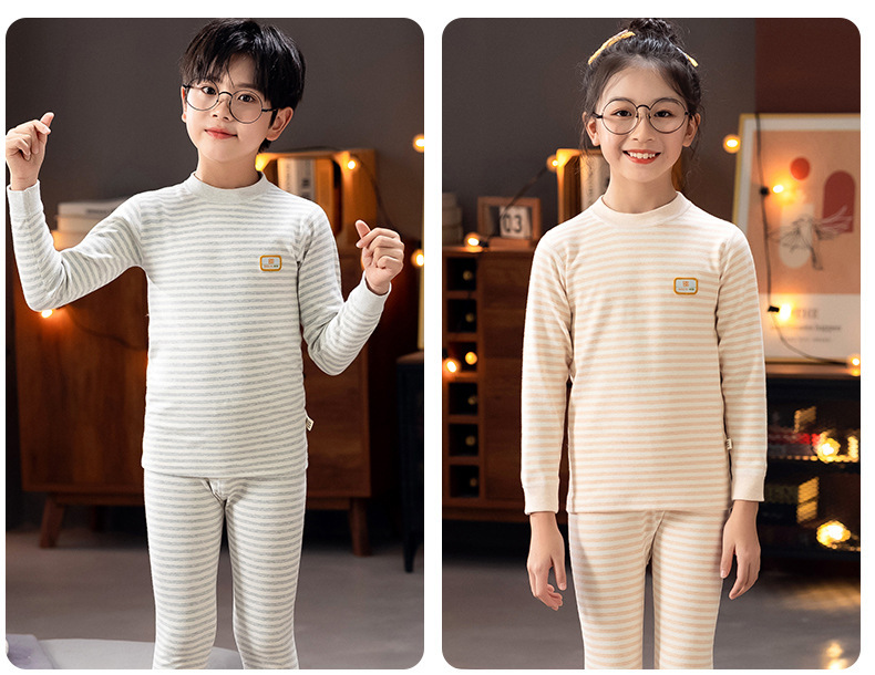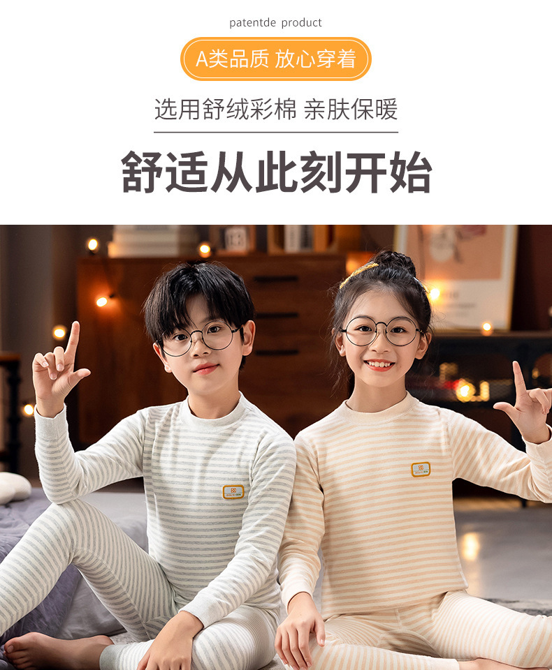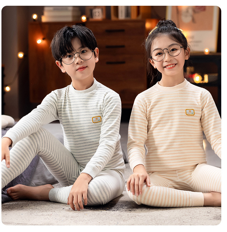 어린이 가을 의류 및 바지 순수 코튼 중간 높은 칼라 남성 및 소녀 셔츠 및 바지 십대 셔츠는 벨벳 컬러 코튼 열 속옷 세트스토어 가기
