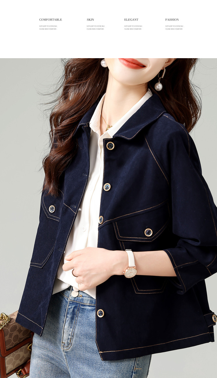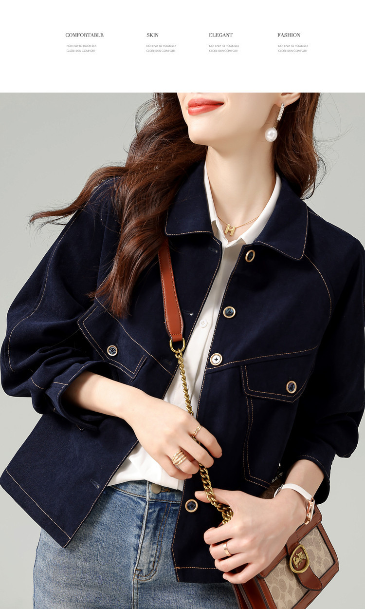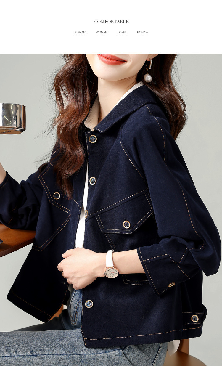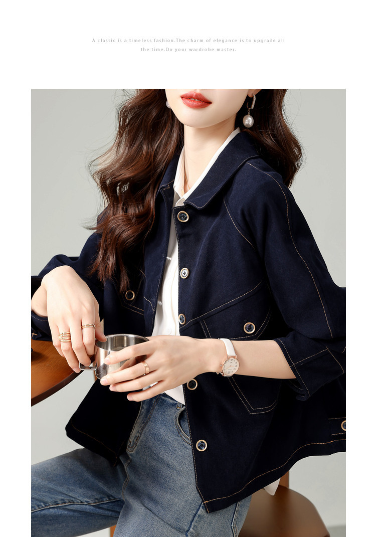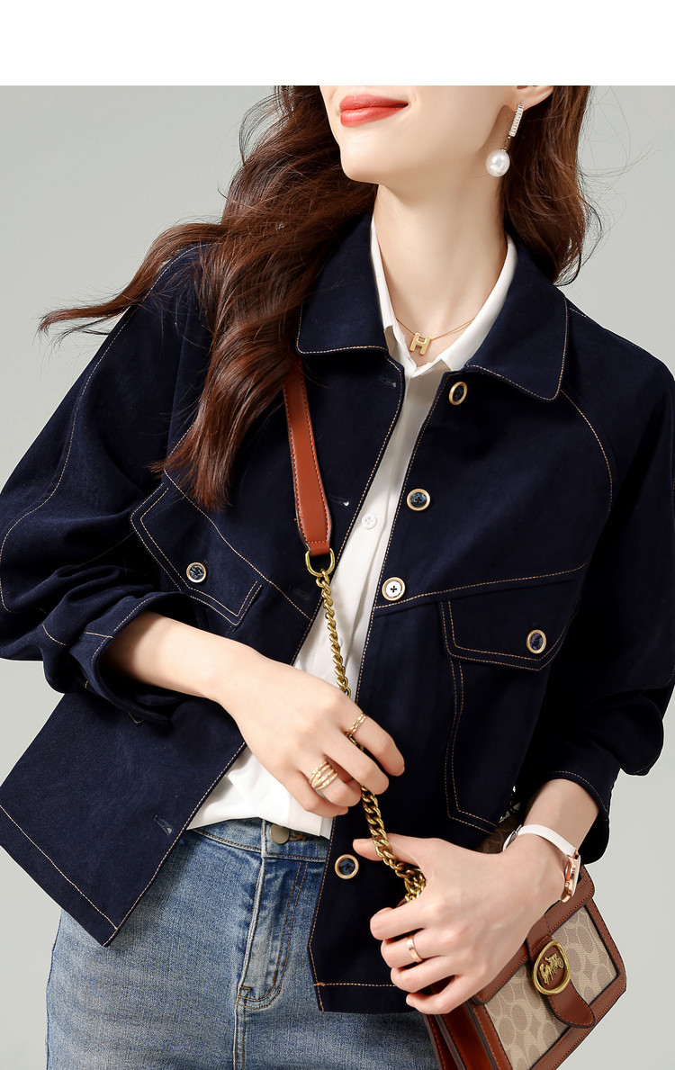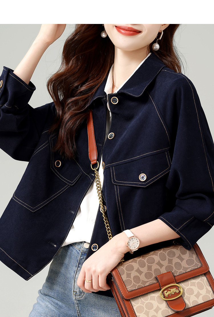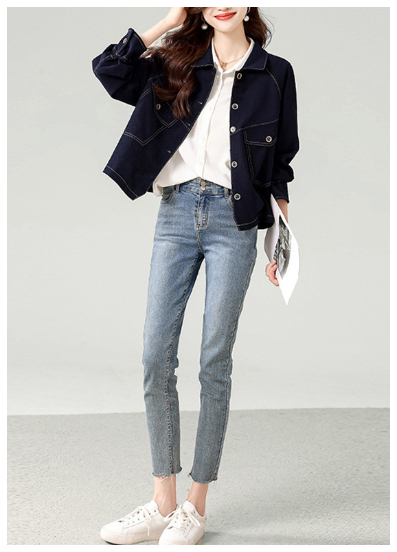 대외 무역 올매치 싱글 가을 새 패션 레트로 모방 데님 여성을위한 한국 올매치 슬림 핏 쇼트 재킷스토어 가기