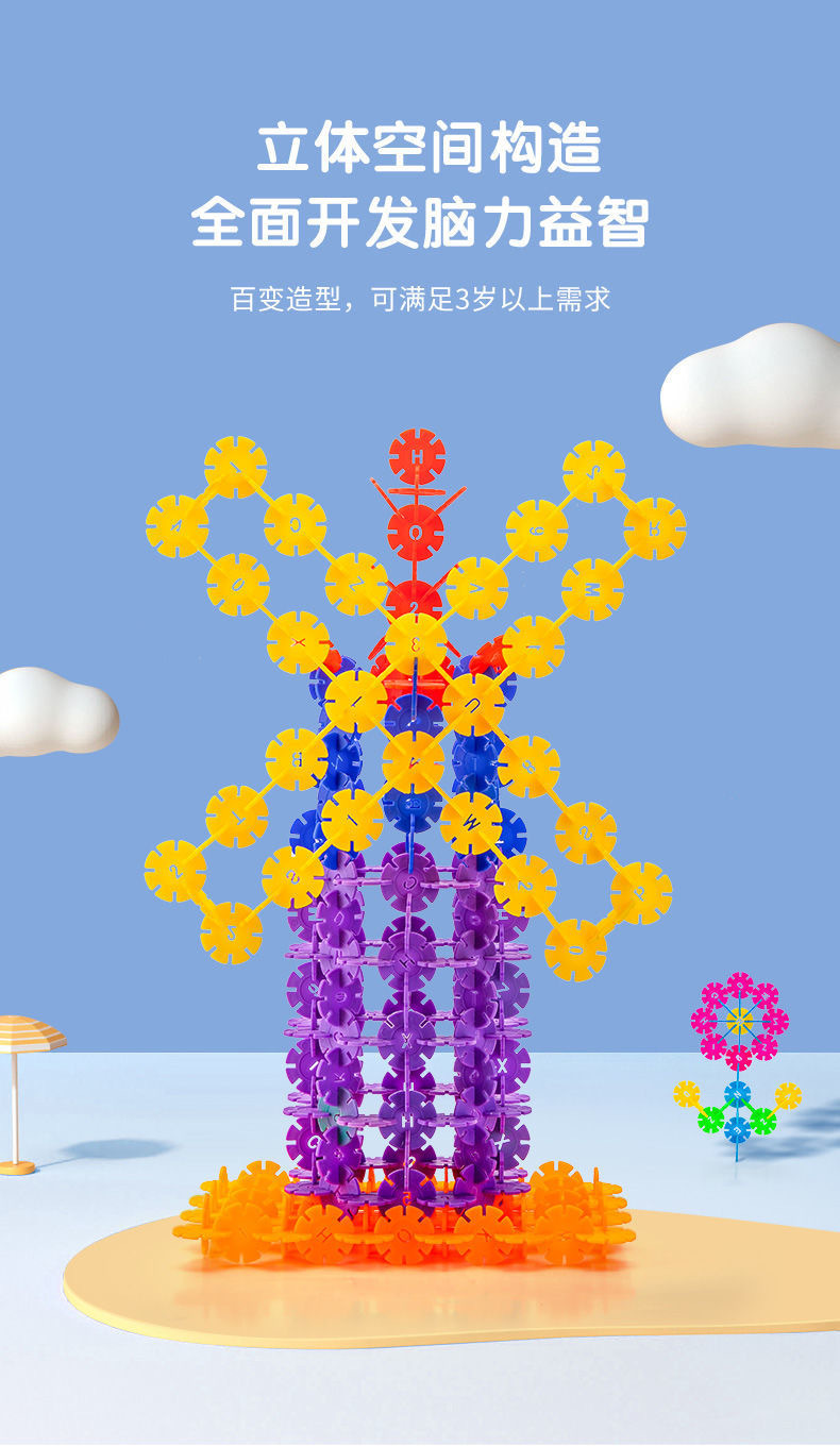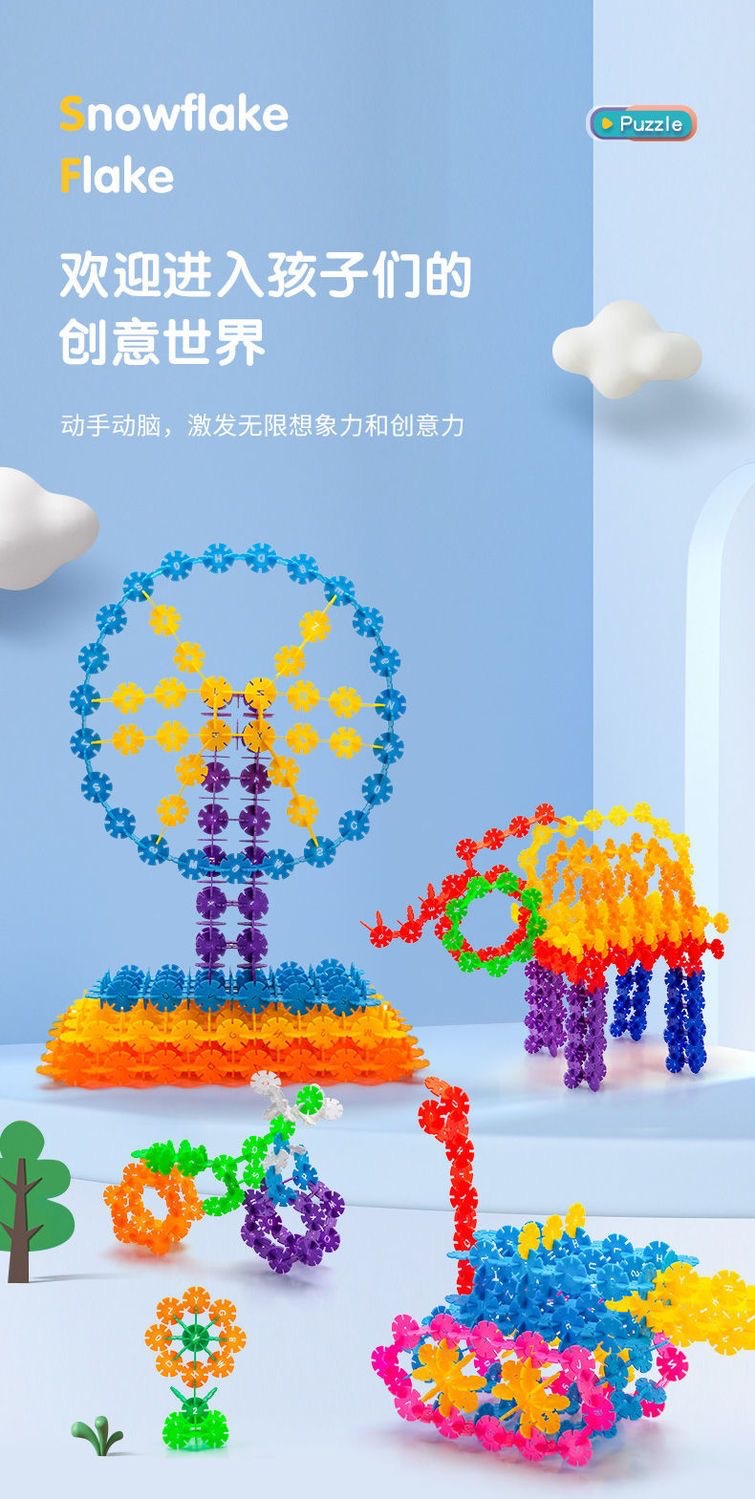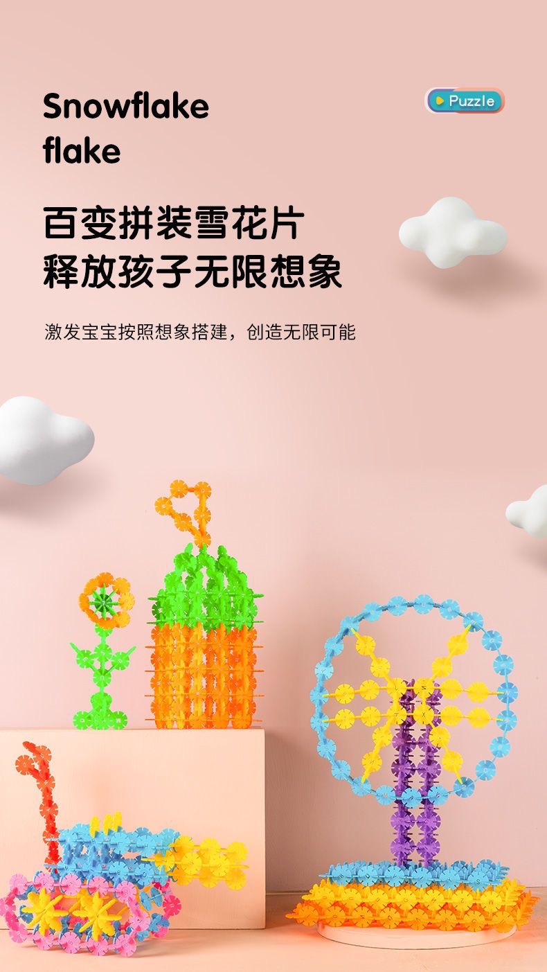 스노우플레이크 블록 장난감 교육용 플라스틱 조립 100피스 스노우플레이크 어린이 조립 블록 도매스토어 가기
