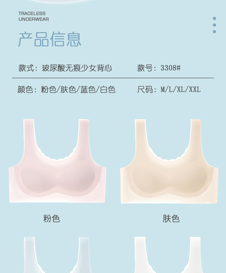 새로운 모달 히알루 론산 유지 추적 소녀 속옷 부드러운 통기성 개발 학생 브래지어 조끼스토어 가기