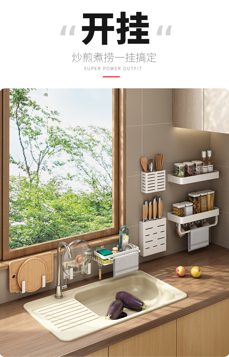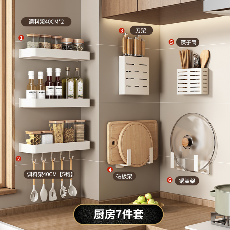 주방 수납 랙 벽걸이 형 비 천공 향신료 랙 다기능 용품 도마 랙 나이프 랙 가정용 수납 랙