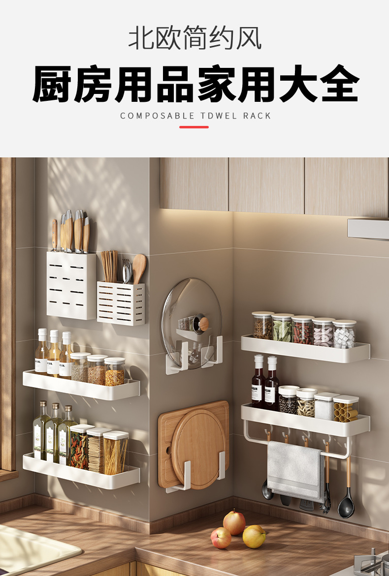 주방 수납 랙 벽걸이 형 비 천공 향신료 랙 다기능 용품 도마 랙 나이프 랙 가정용 수납 랙스토어 가기
