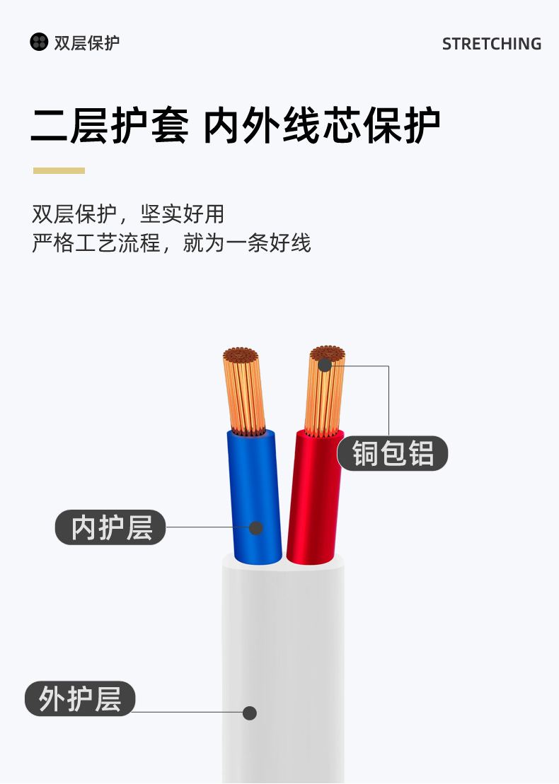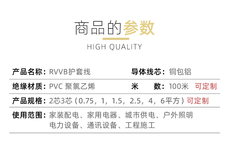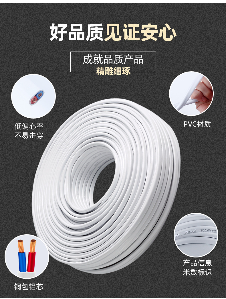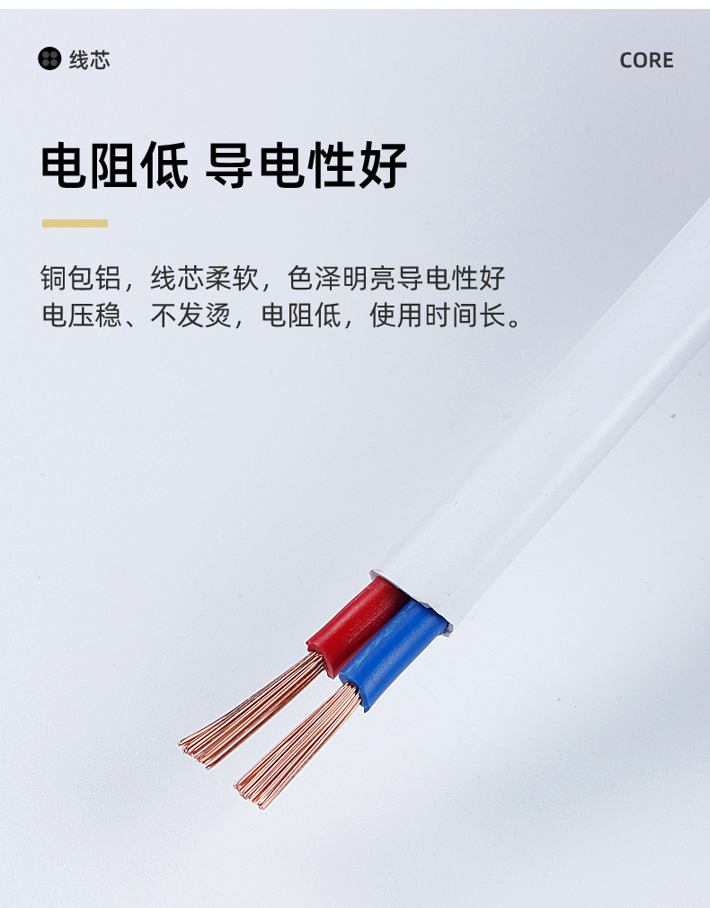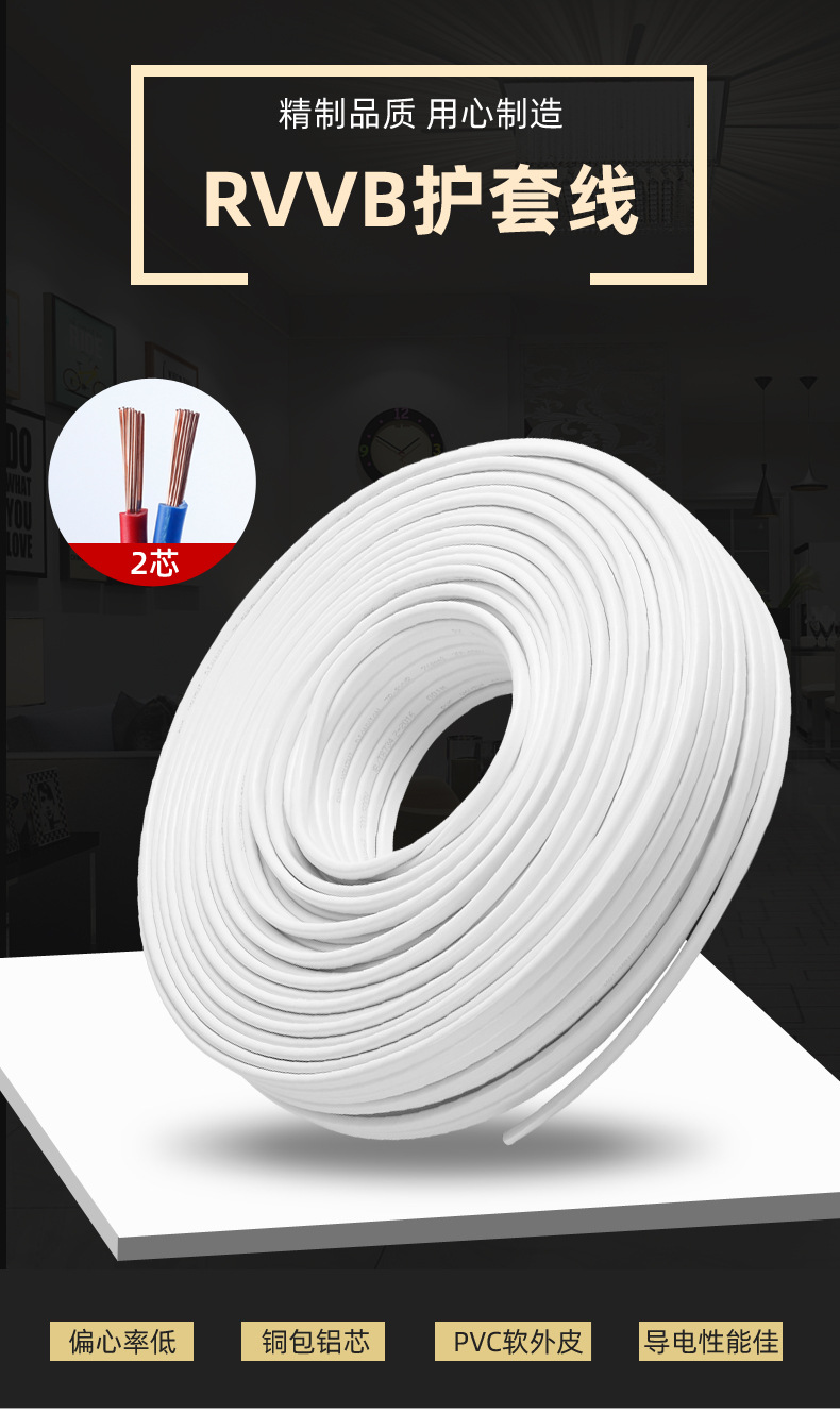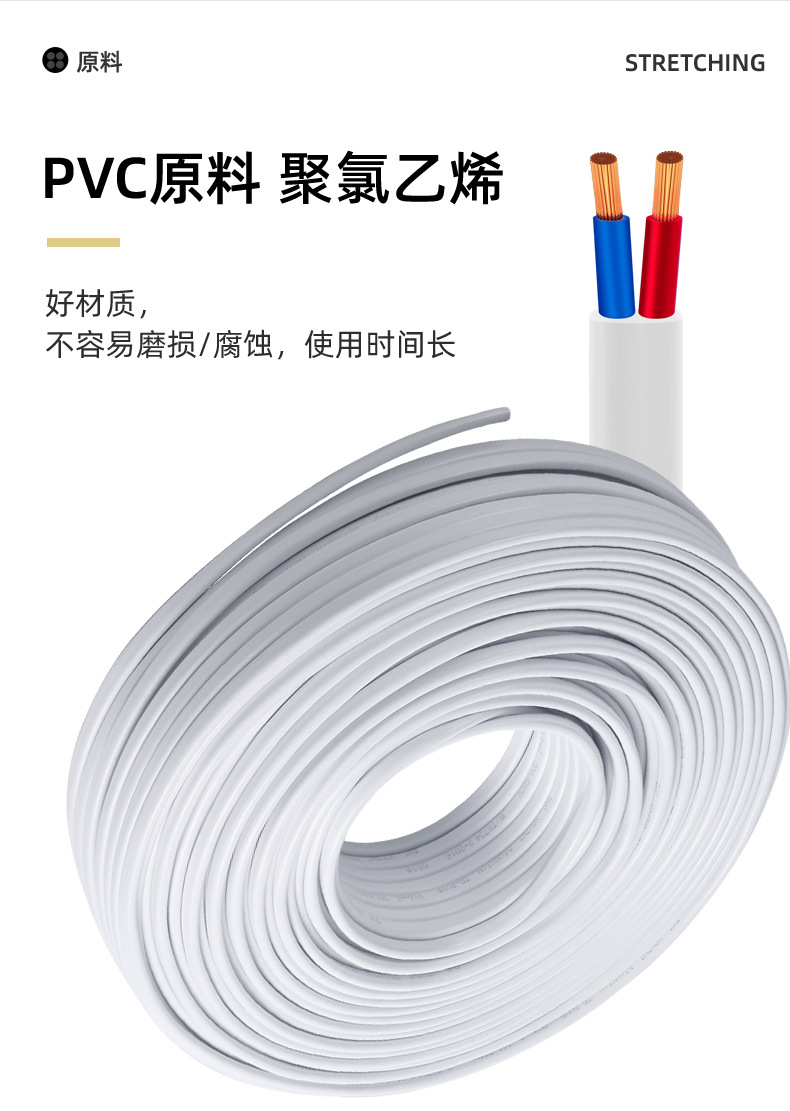 국가 표준 RVVB 플랫 시스 라인 2 코어 1.5/2.5/4/6 사각형 병렬 라인 야외 조명 난연 전원 코드스토어 가기