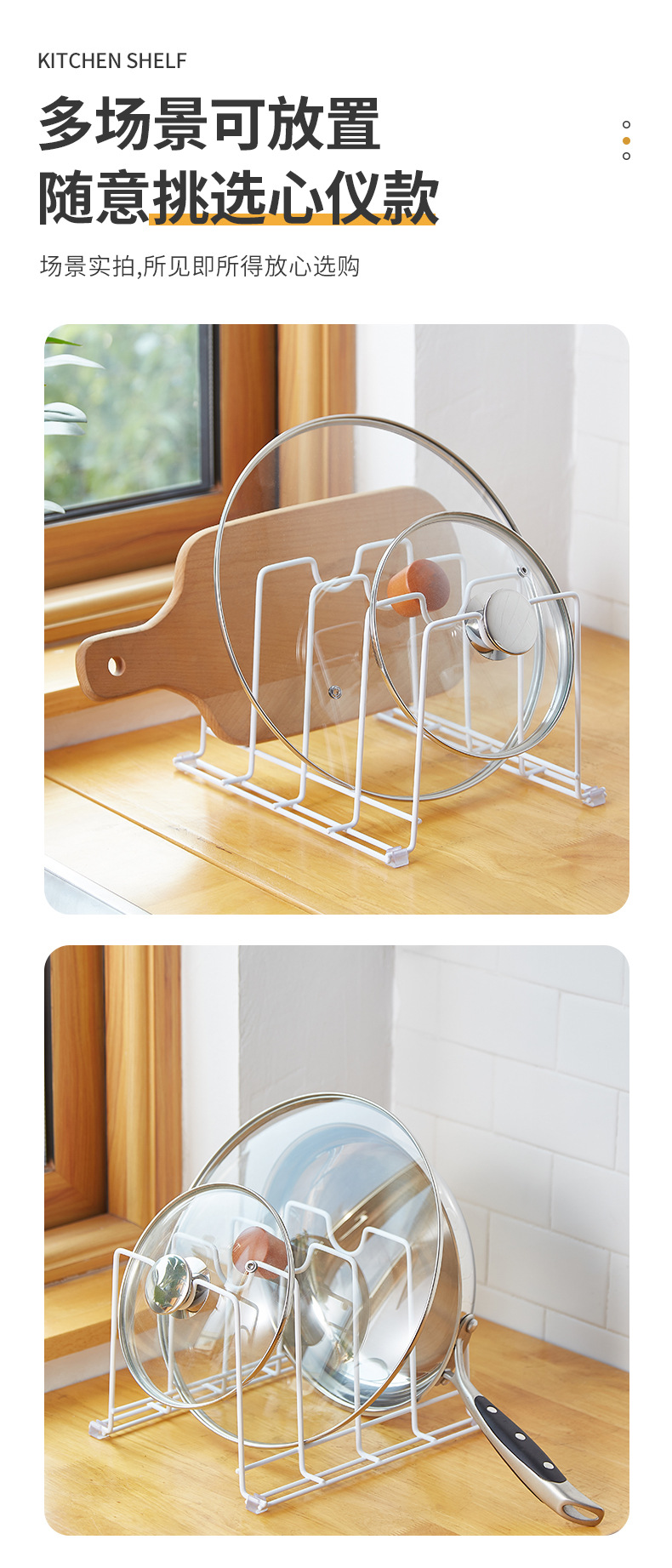 단철 냄비 커버 스토리지 랙 주방 다기능 캐비닛 스토리지 랙 단철 냄비 커버 도마 주방 스토리지 랙스토어 가기