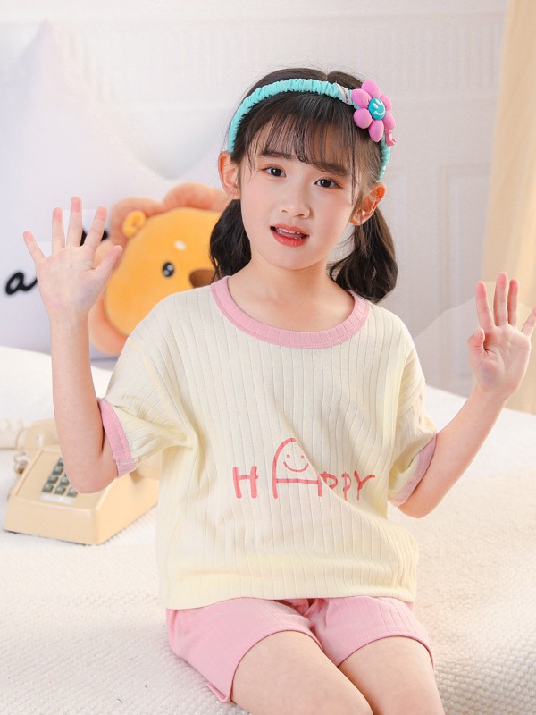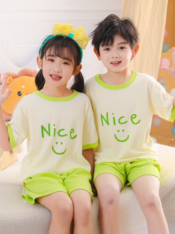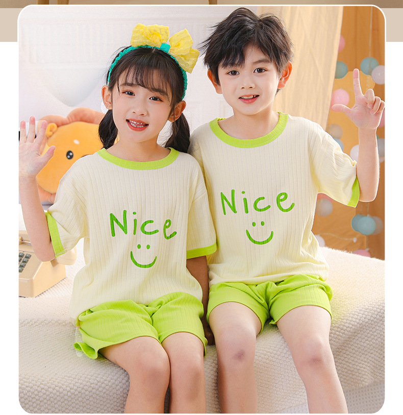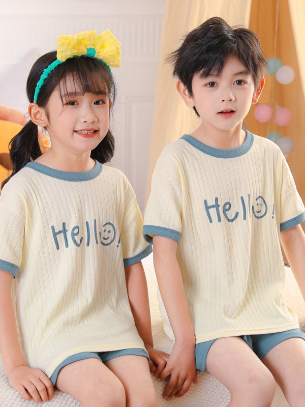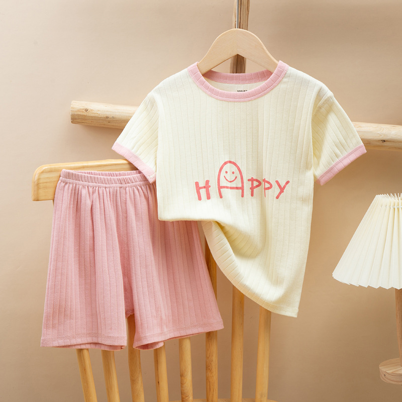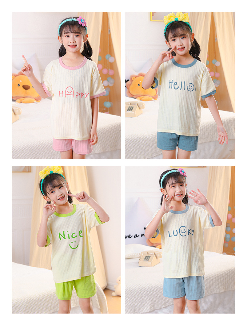 여름 어린이 라이크라 코튼 홈 의류 소년과 소녀 반팔 반바지 뼈없는 에어컨 옷 아기 홈 잠옷