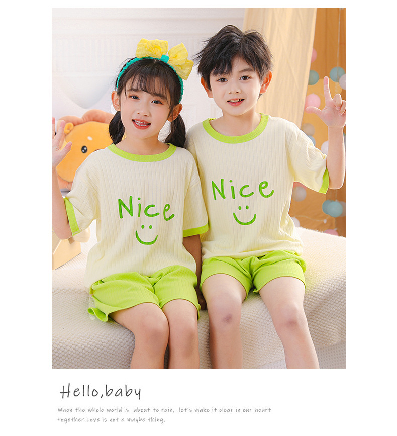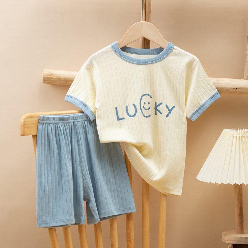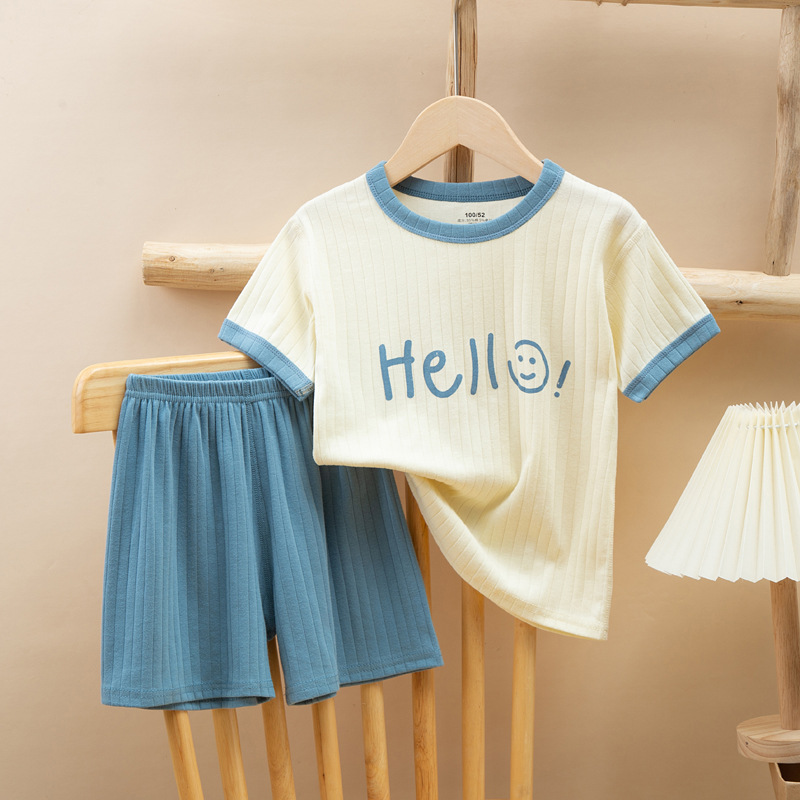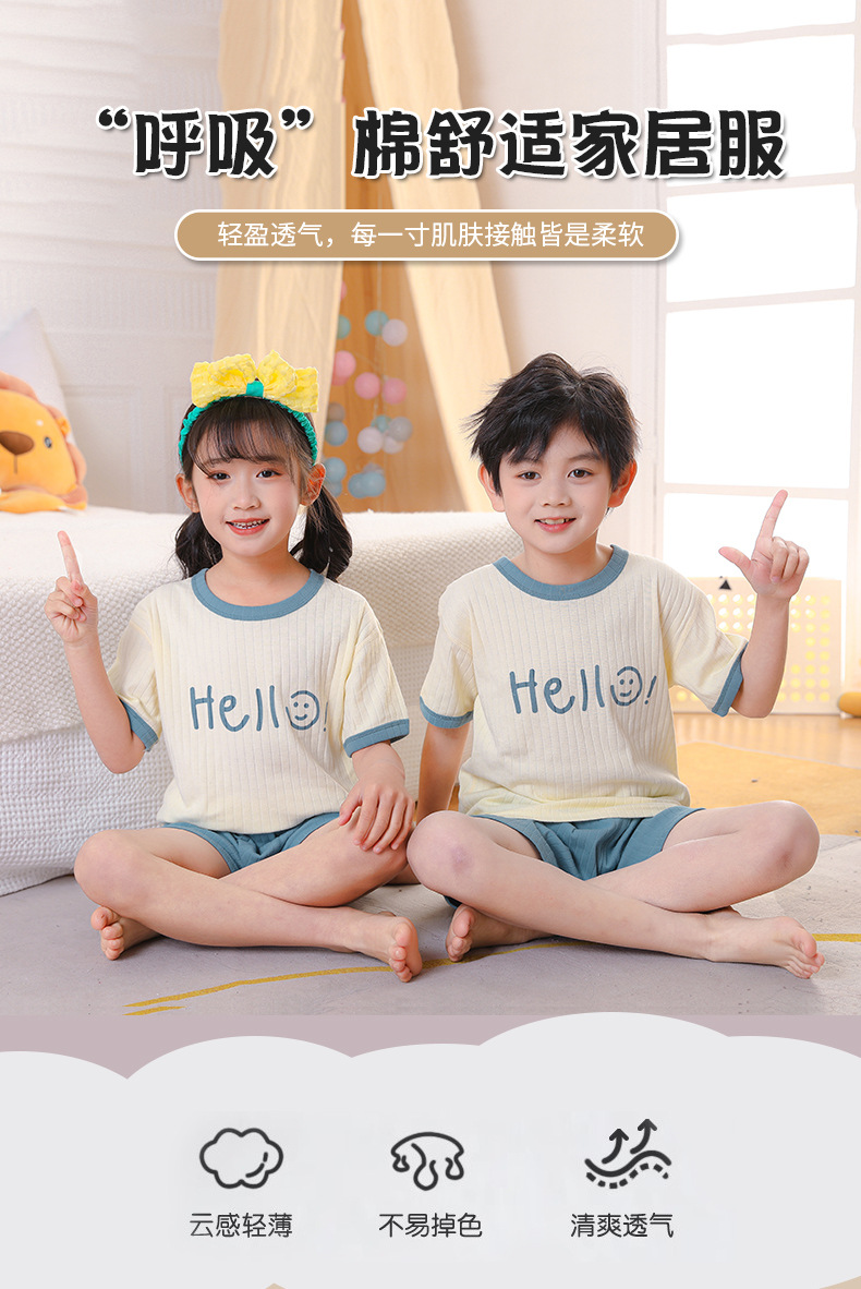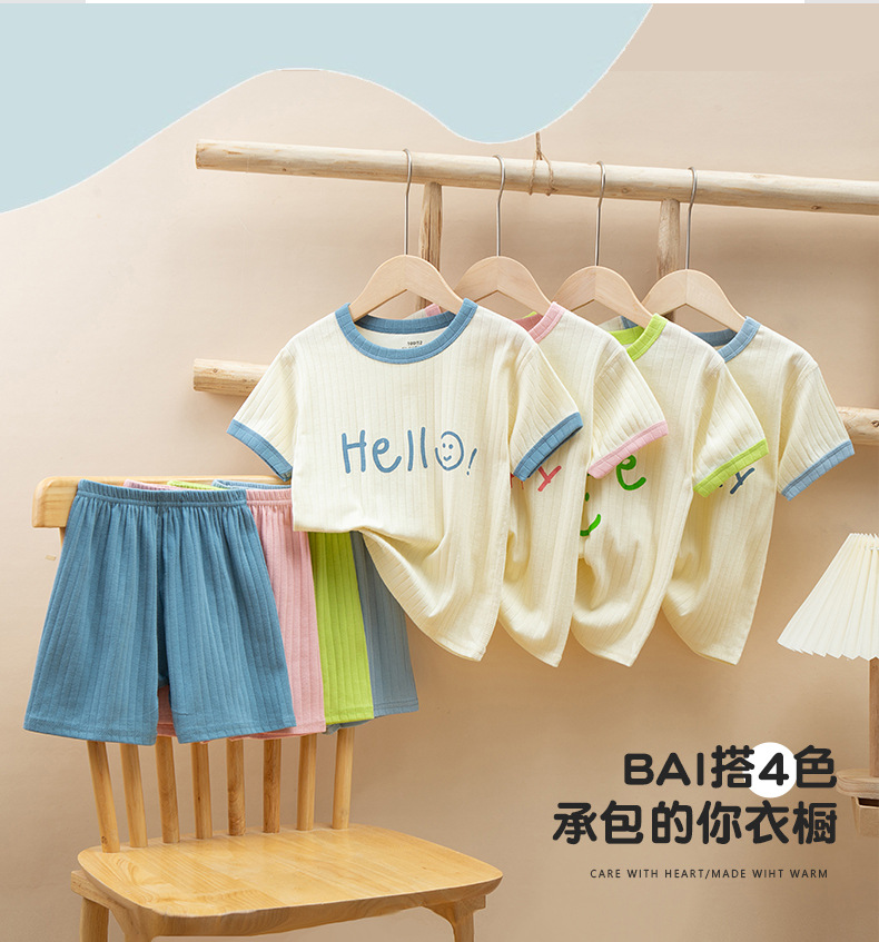 여름 어린이 라이크라 코튼 홈 의류 소년과 소녀 반팔 반바지 뼈없는 에어컨 옷 아기 홈 잠옷스토어 가기