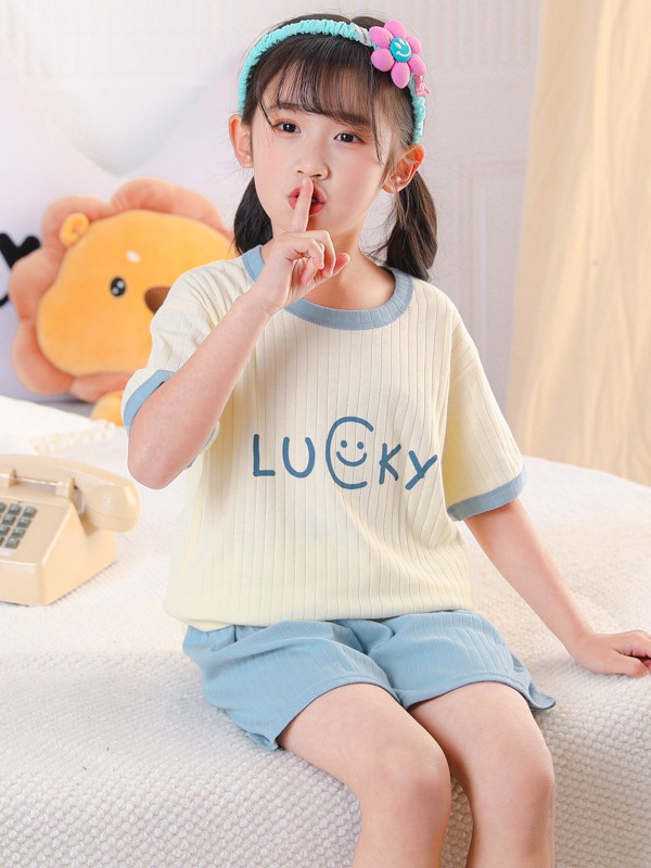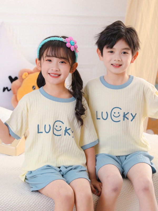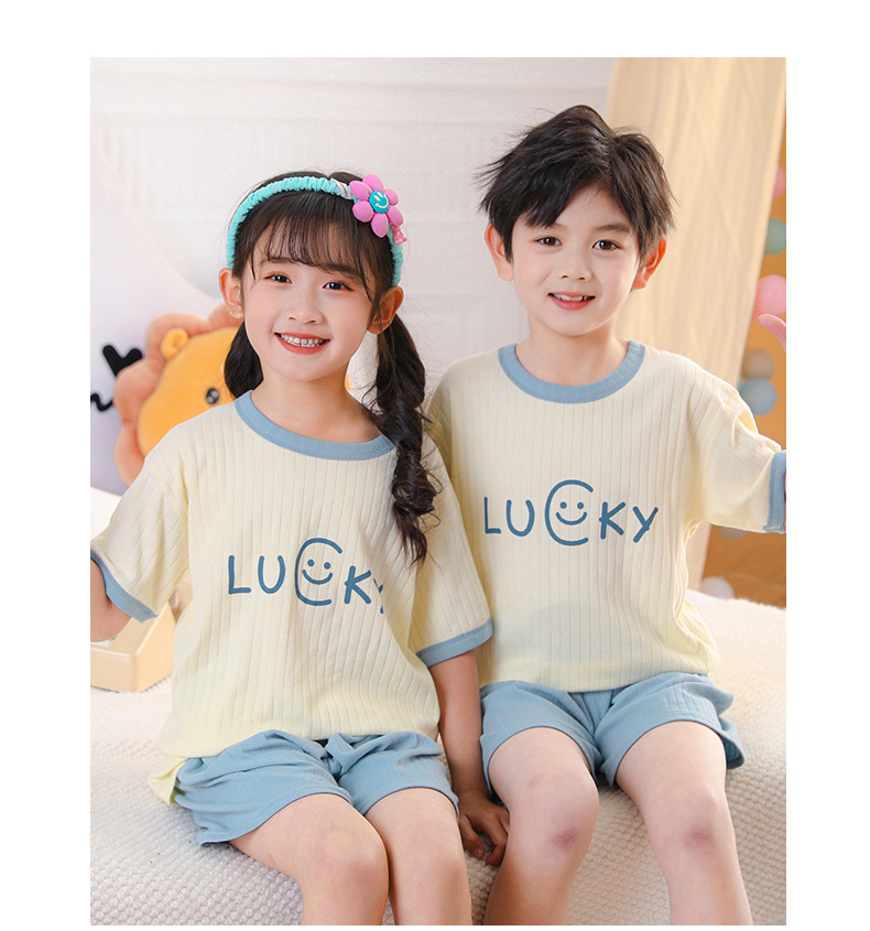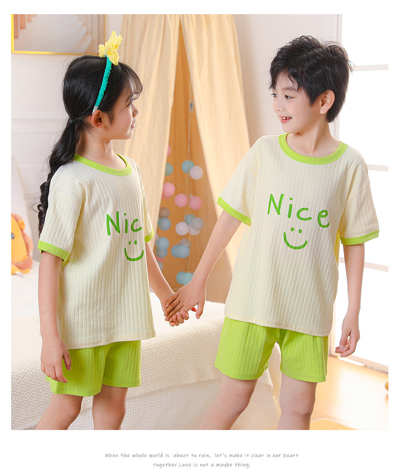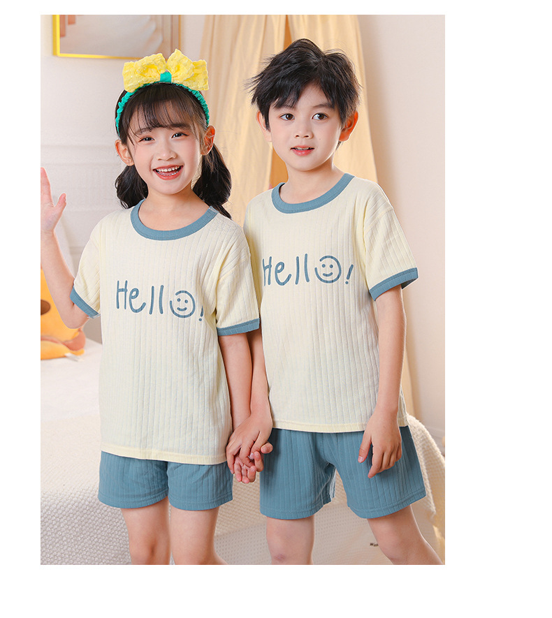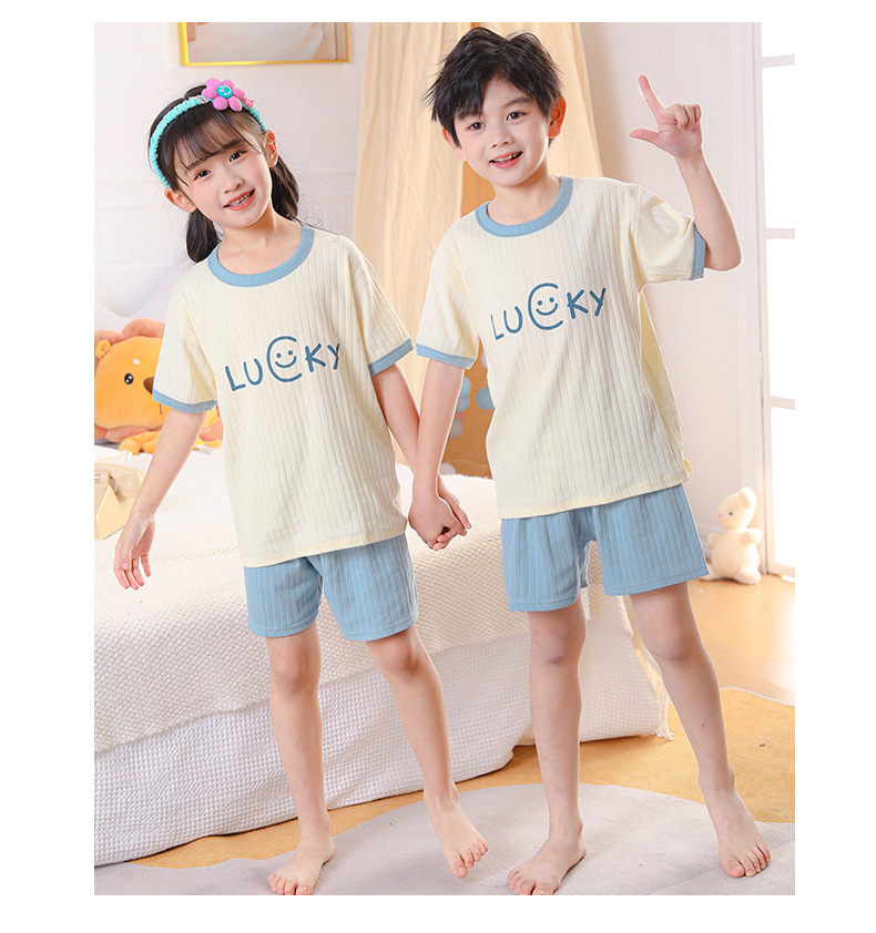 여름 어린이 라이크라 코튼 홈 의류 소년과 소녀 반팔 반바지 뼈없는 에어컨 옷 아기 홈 잠옷스토어 가기