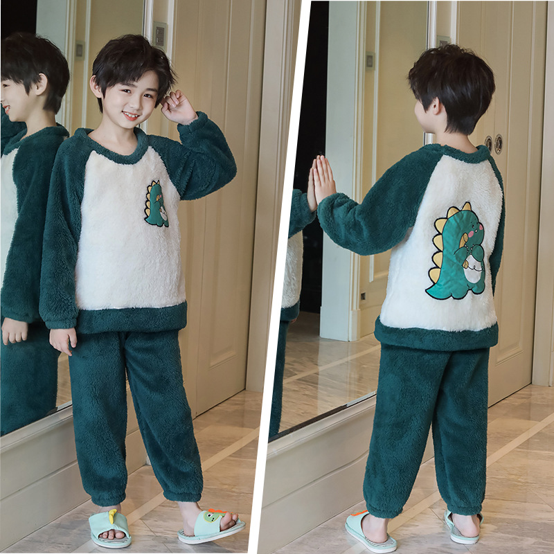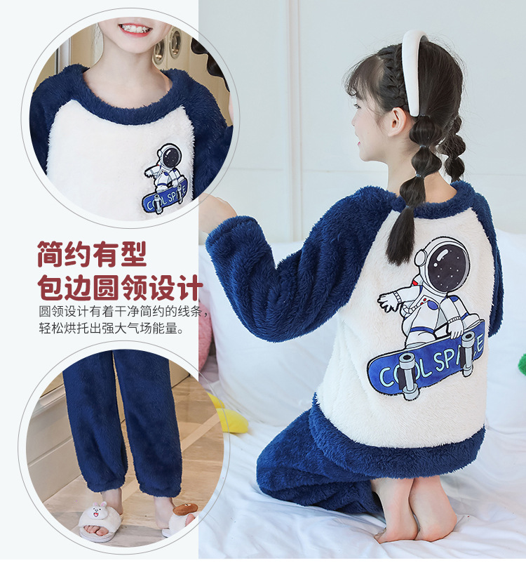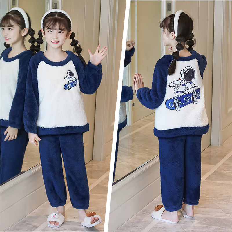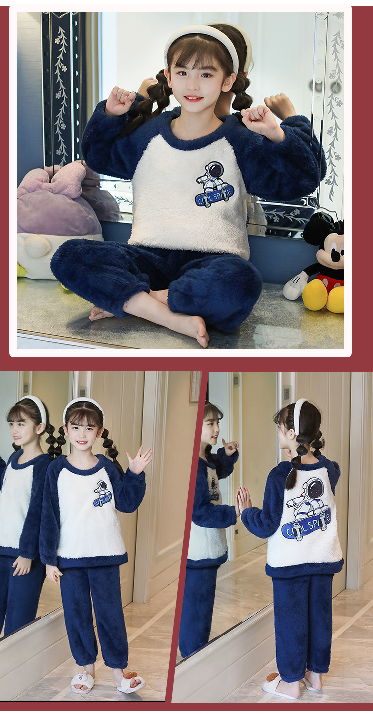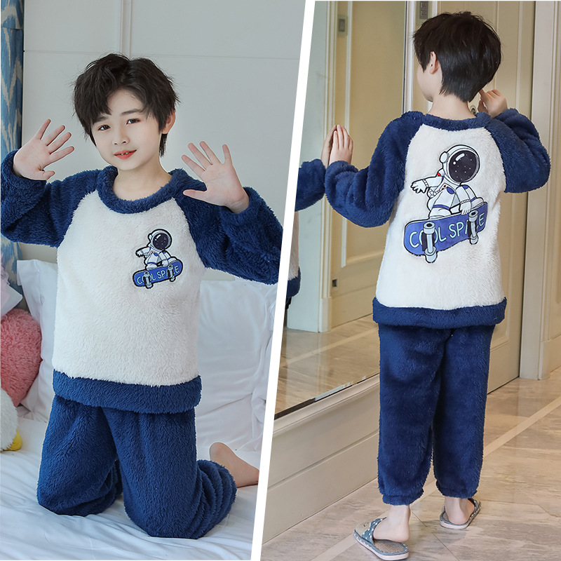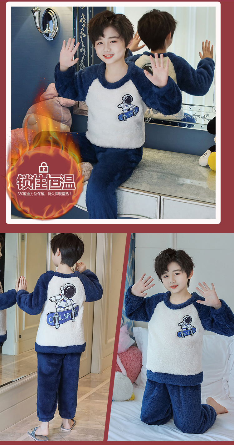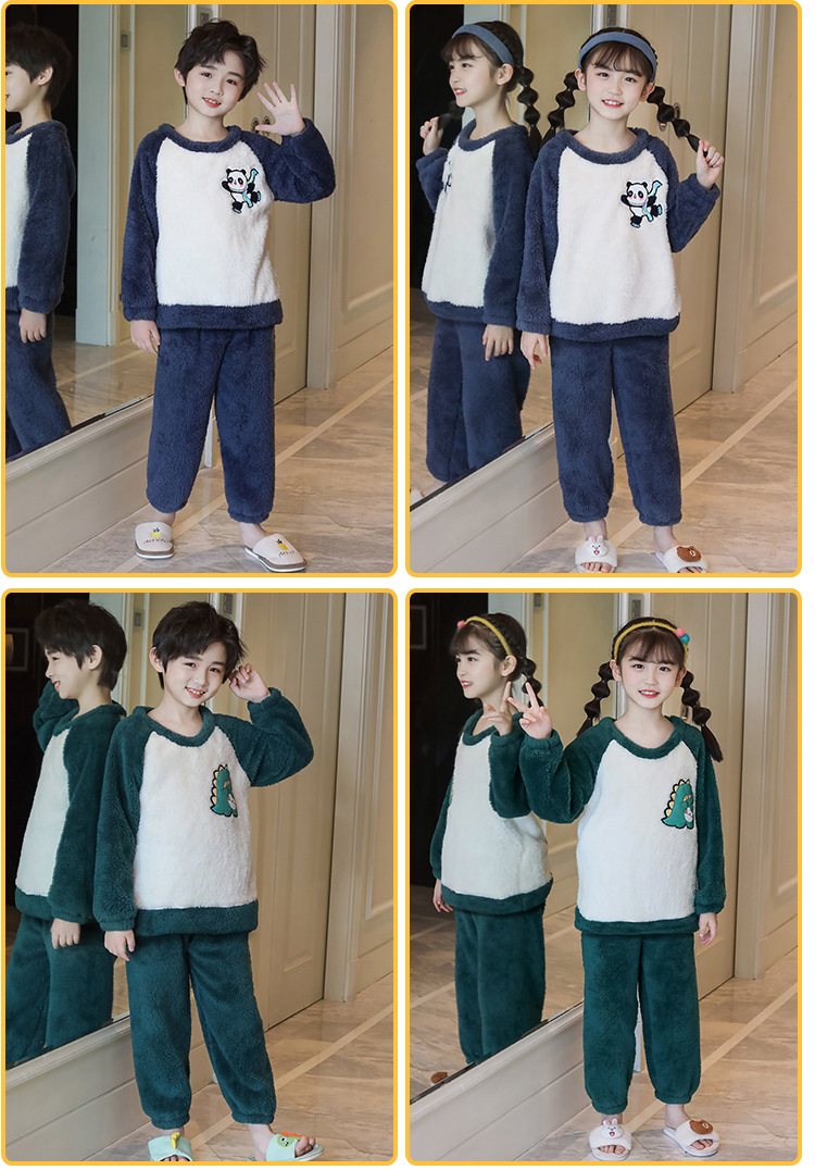 어린이 잠옷 가을과 겨울 플란넬 소녀 소년 산호 양털 세트 중대형 어린이 기모 따뜻한 옷