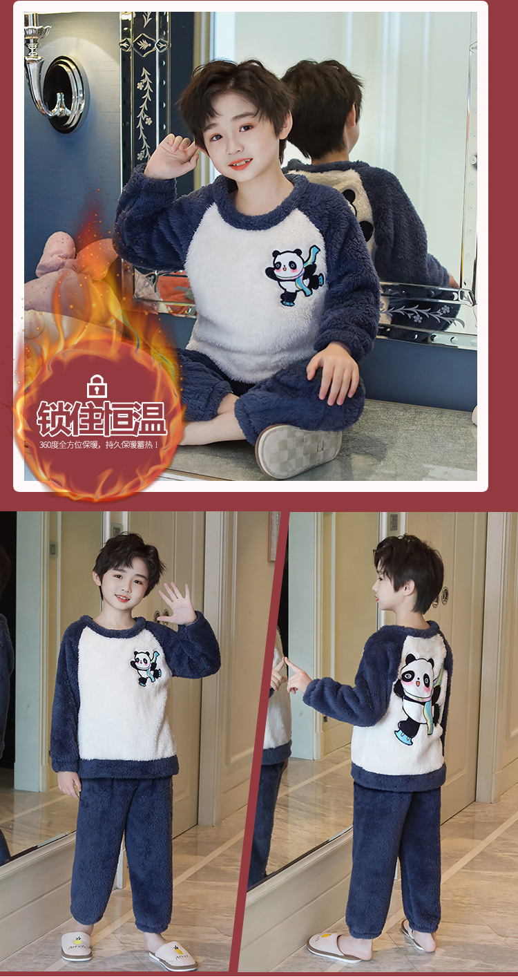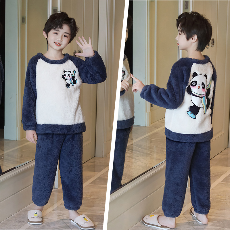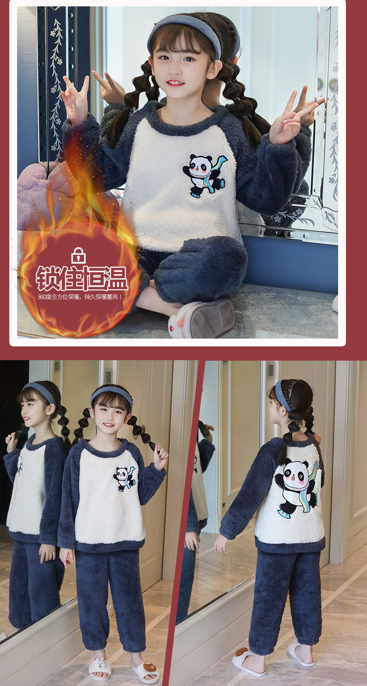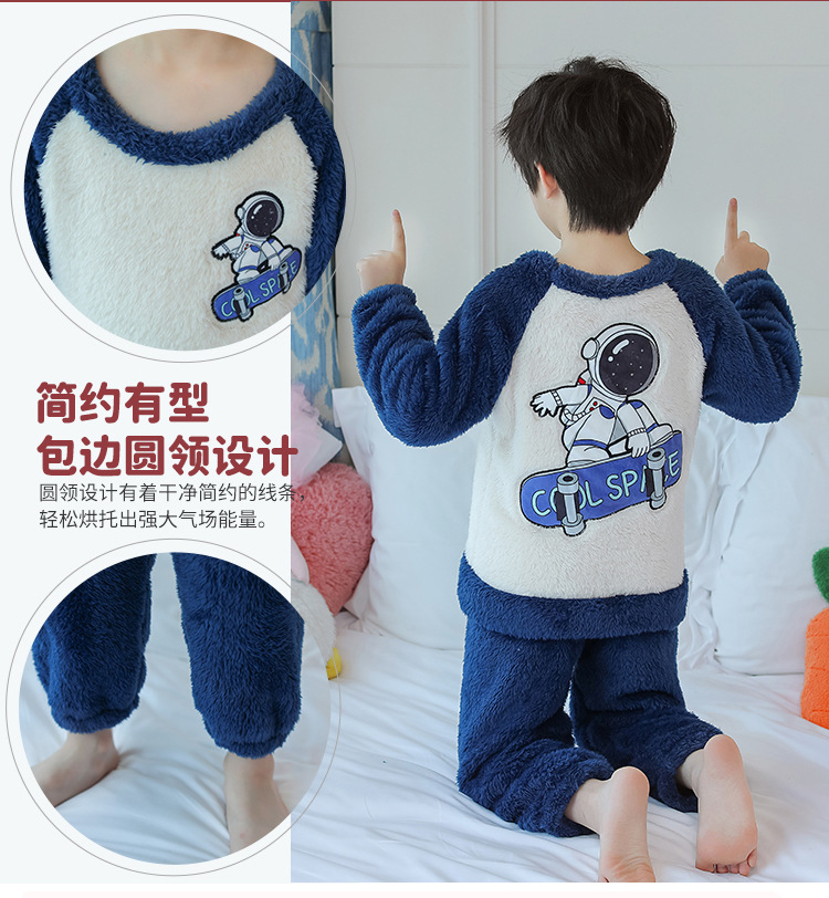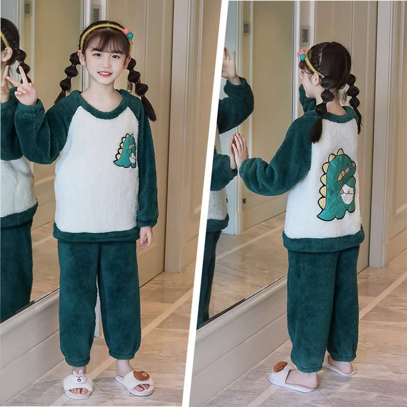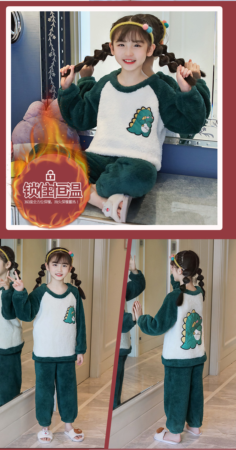 어린이 잠옷 가을과 겨울 플란넬 소녀 소년 산호 양털 세트 중대형 어린이 기모 따뜻한 옷
