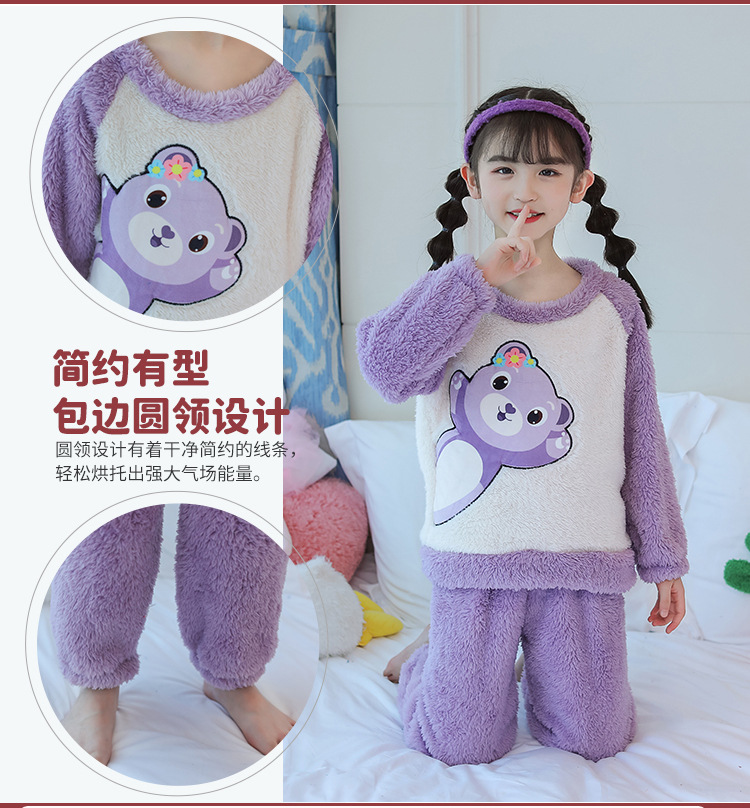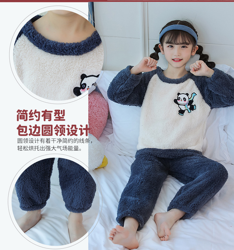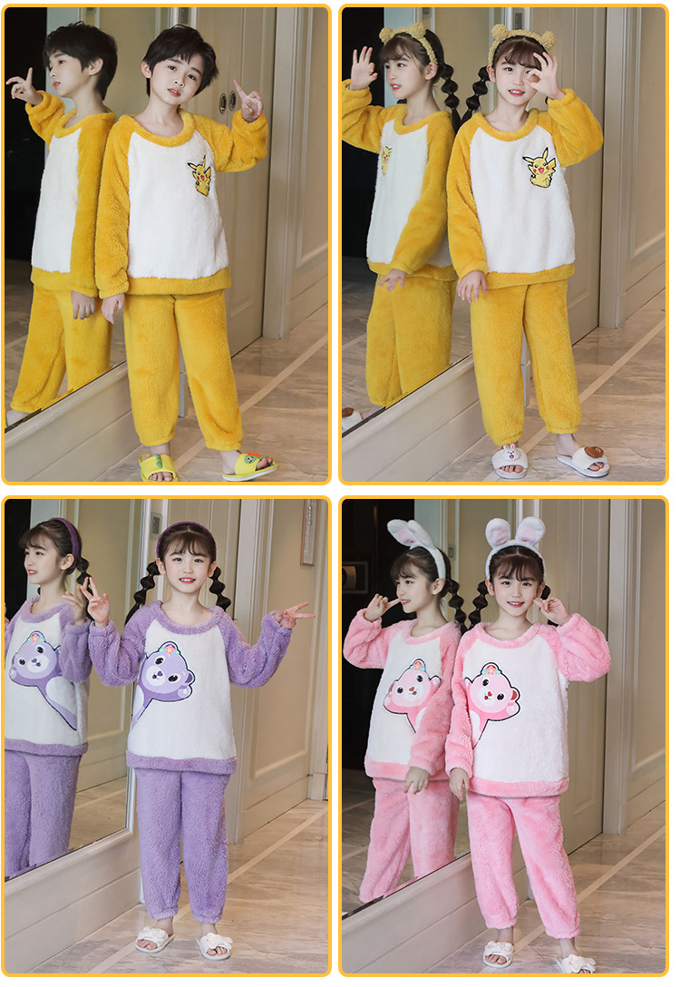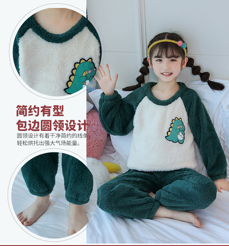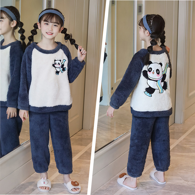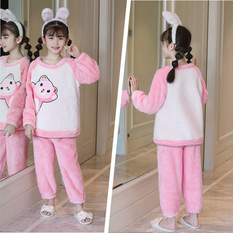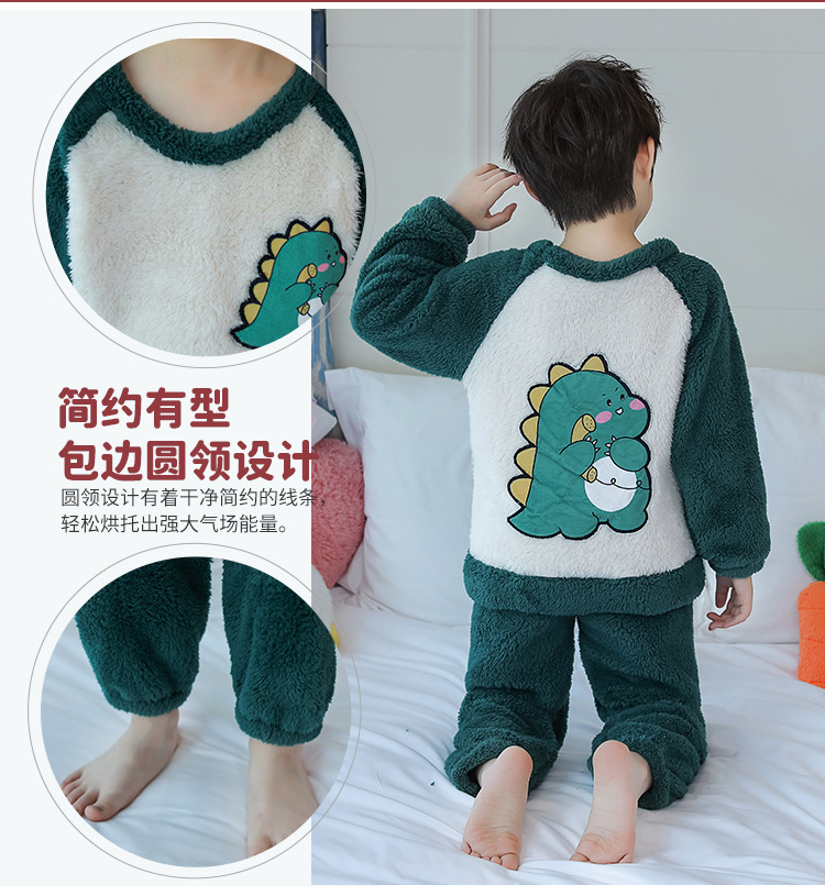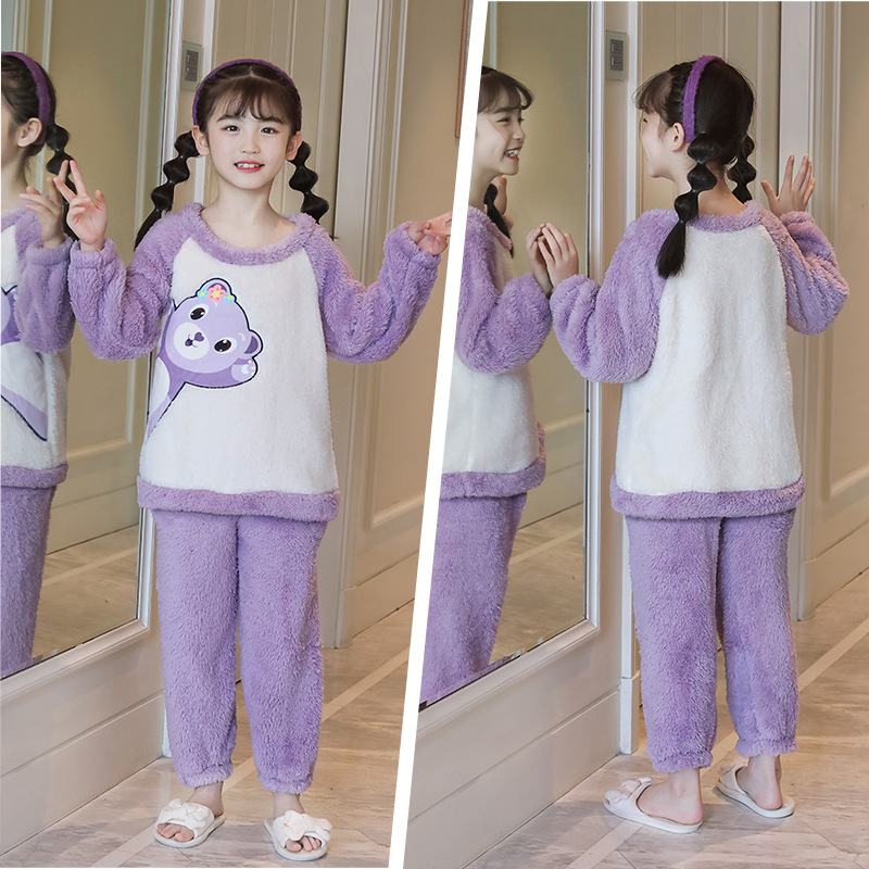 어린이 잠옷 가을과 겨울 플란넬 소녀 소년 산호 양털 세트 중대형 어린이 기모 따뜻한 옷