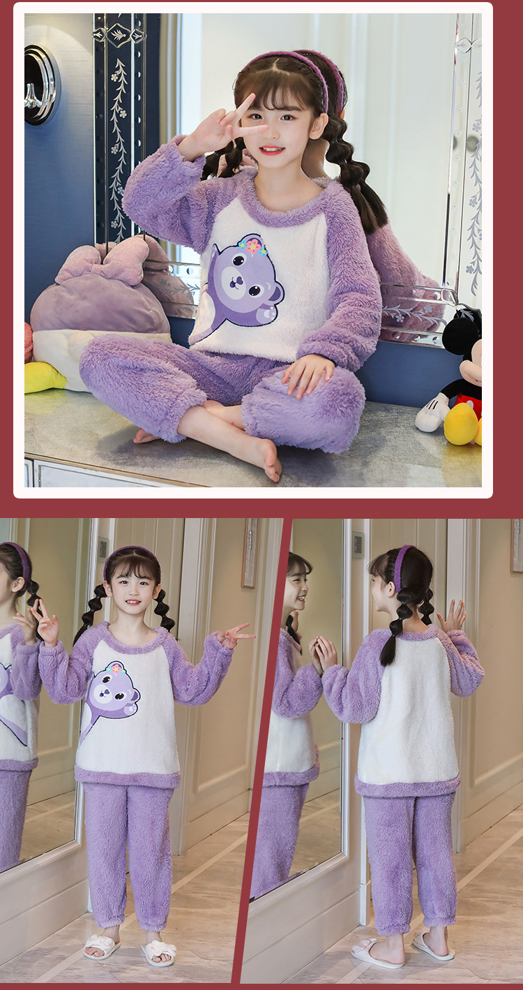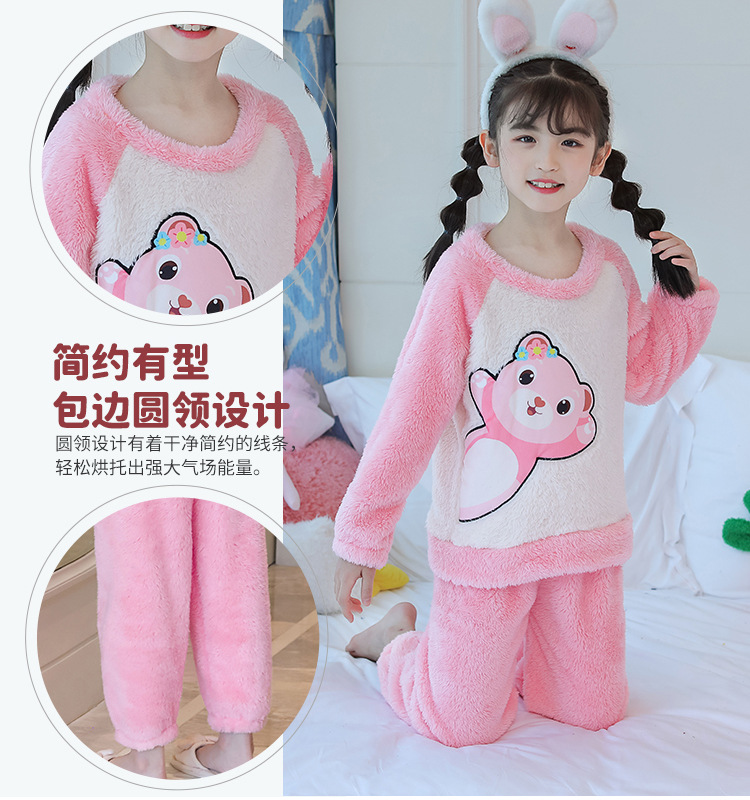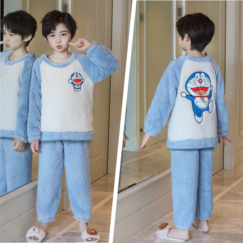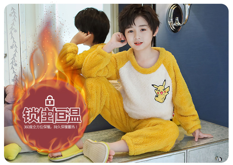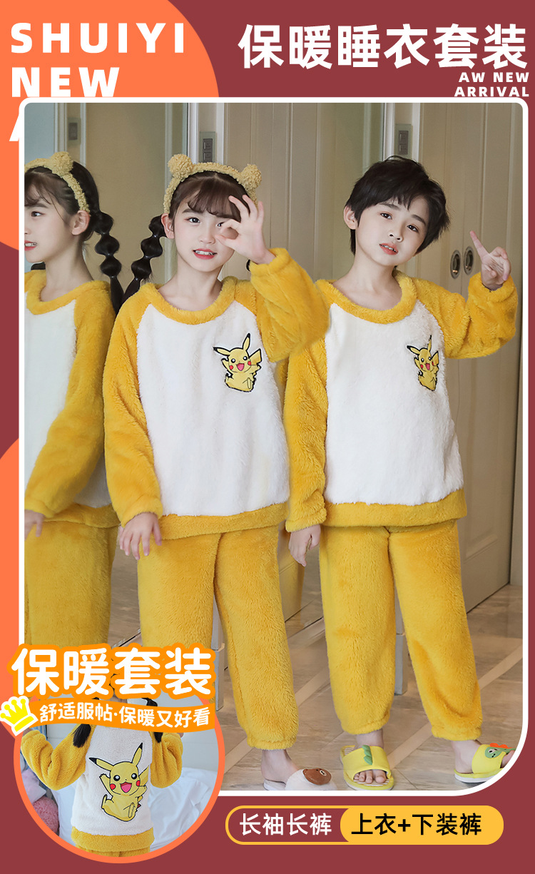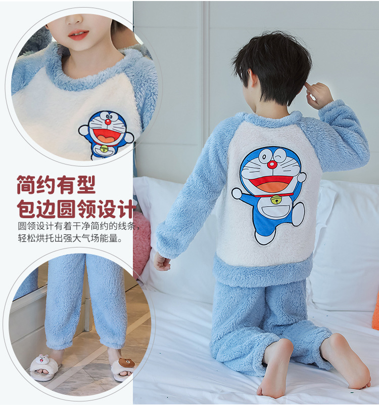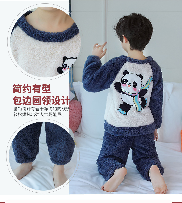 어린이 잠옷 가을과 겨울 플란넬 소녀 소년 산호 양털 세트 중대형 어린이 기모 따뜻한 옷