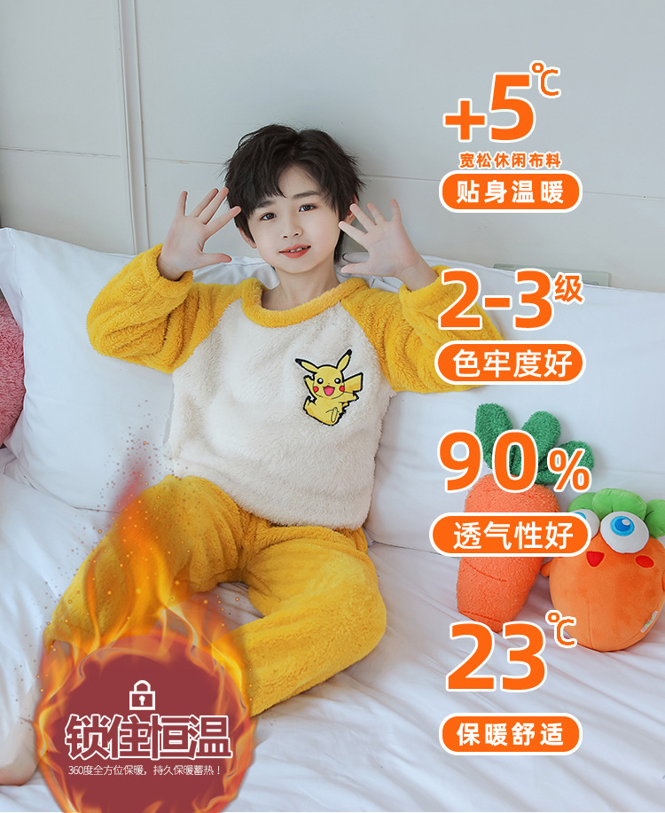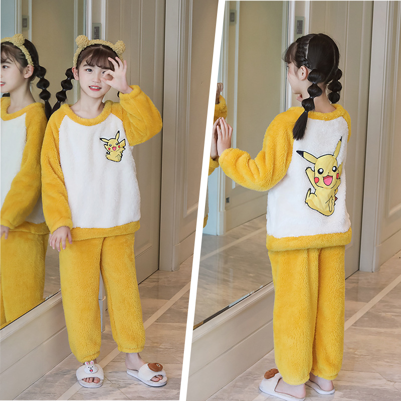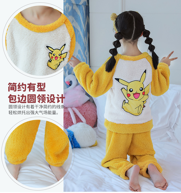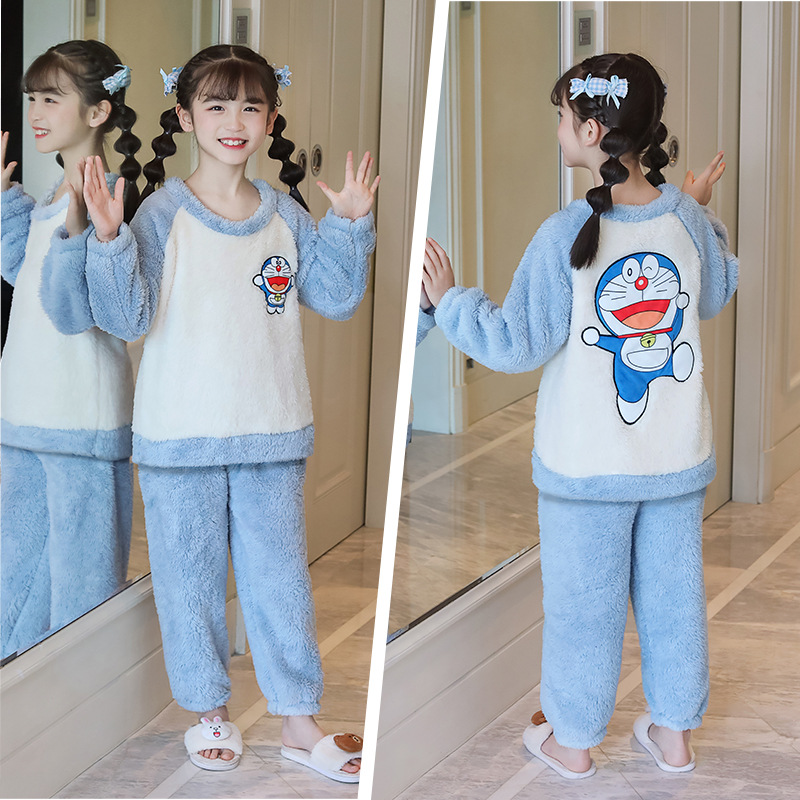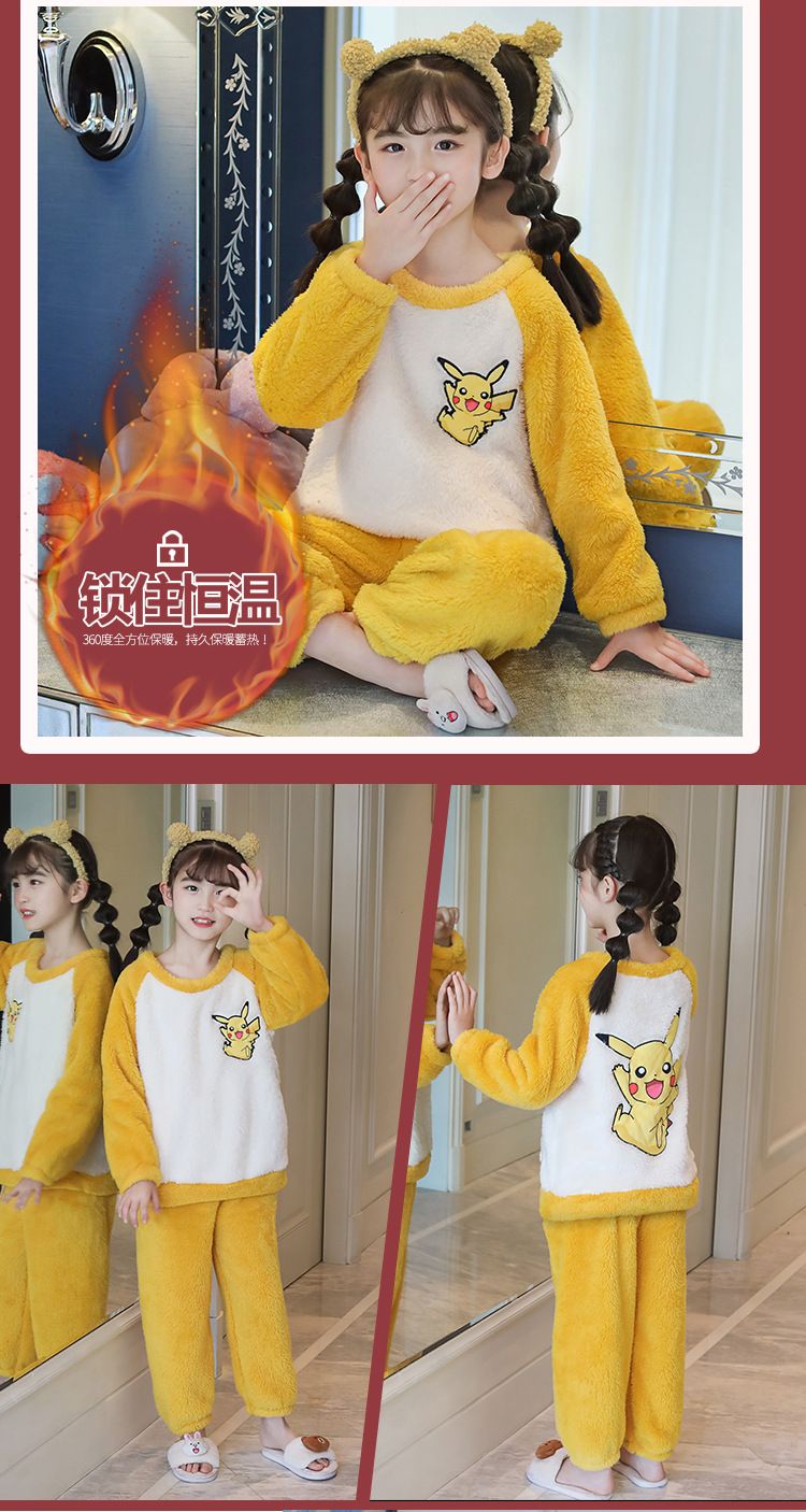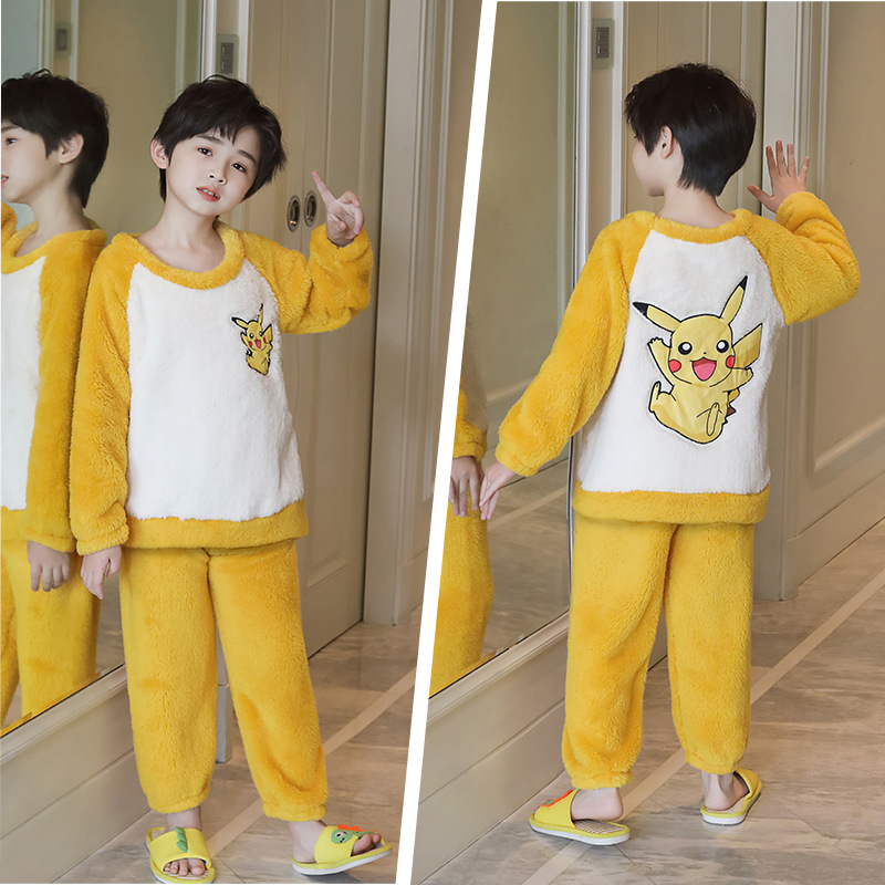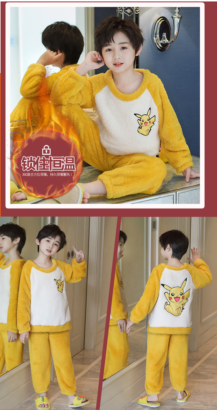 어린이 잠옷 가을과 겨울 플란넬 소녀 소년 산호 양털 세트 중대형 어린이 기모 따뜻한 옷