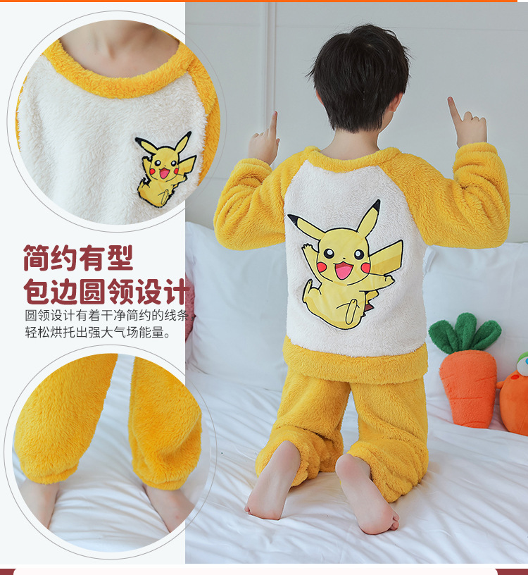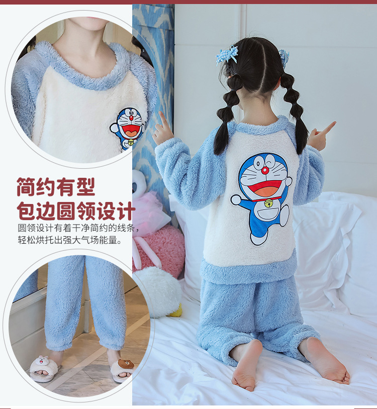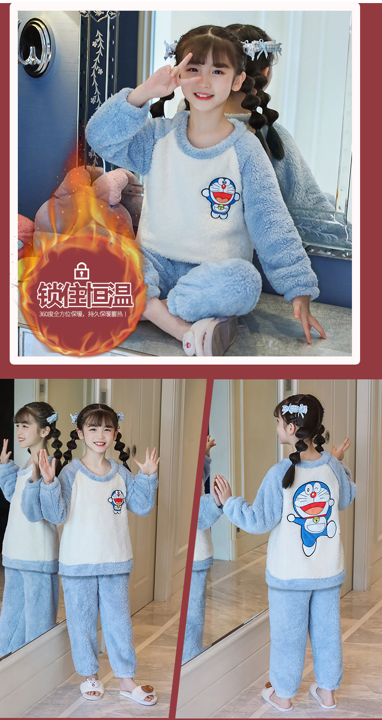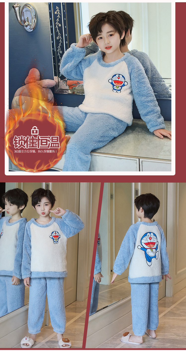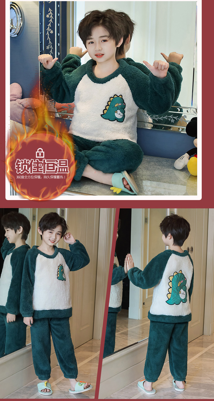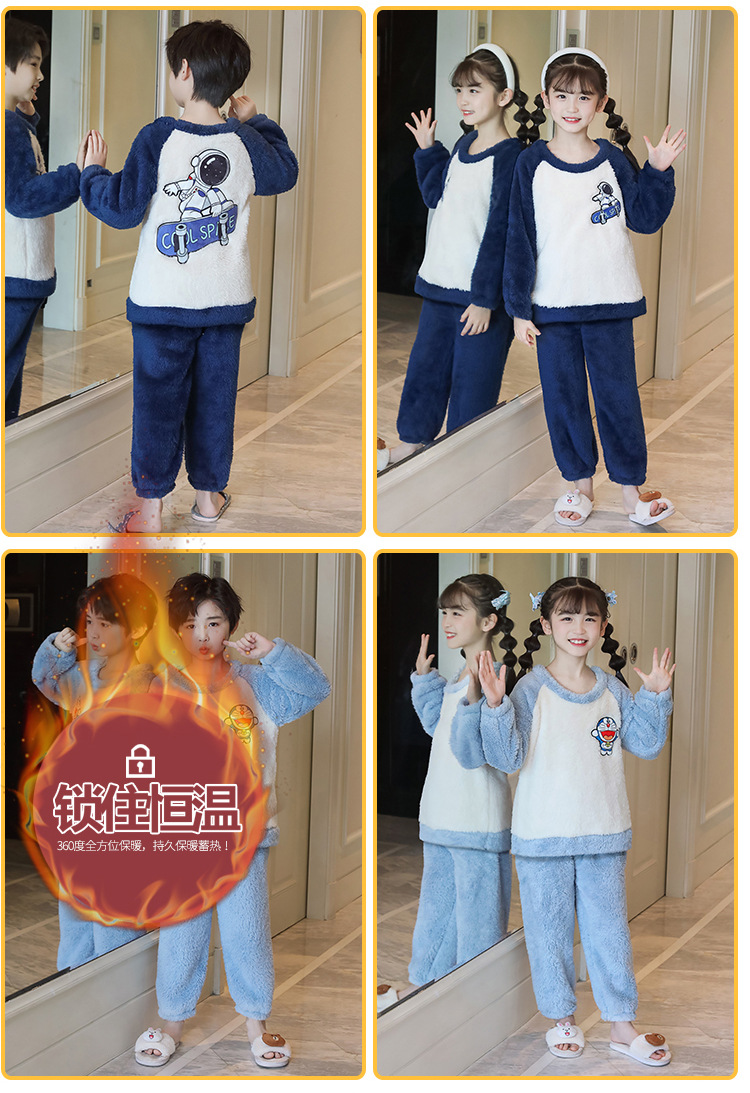 어린이 잠옷 가을과 겨울 플란넬 소녀 소년 산호 양털 세트 중대형 어린이 기모 따뜻한 옷스토어 가기