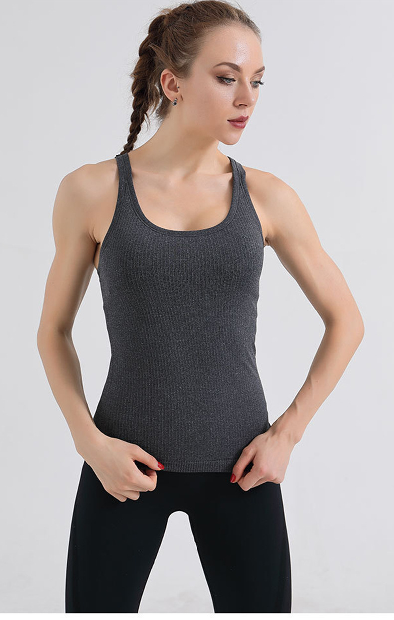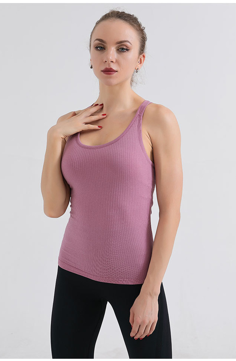 가슴 패드가있는 새로운 스포츠 조끼 여성은 고탄성 I-back 통합 요가 조끼를 착용합니다.스토어 가기