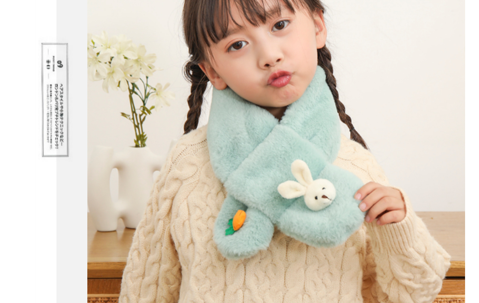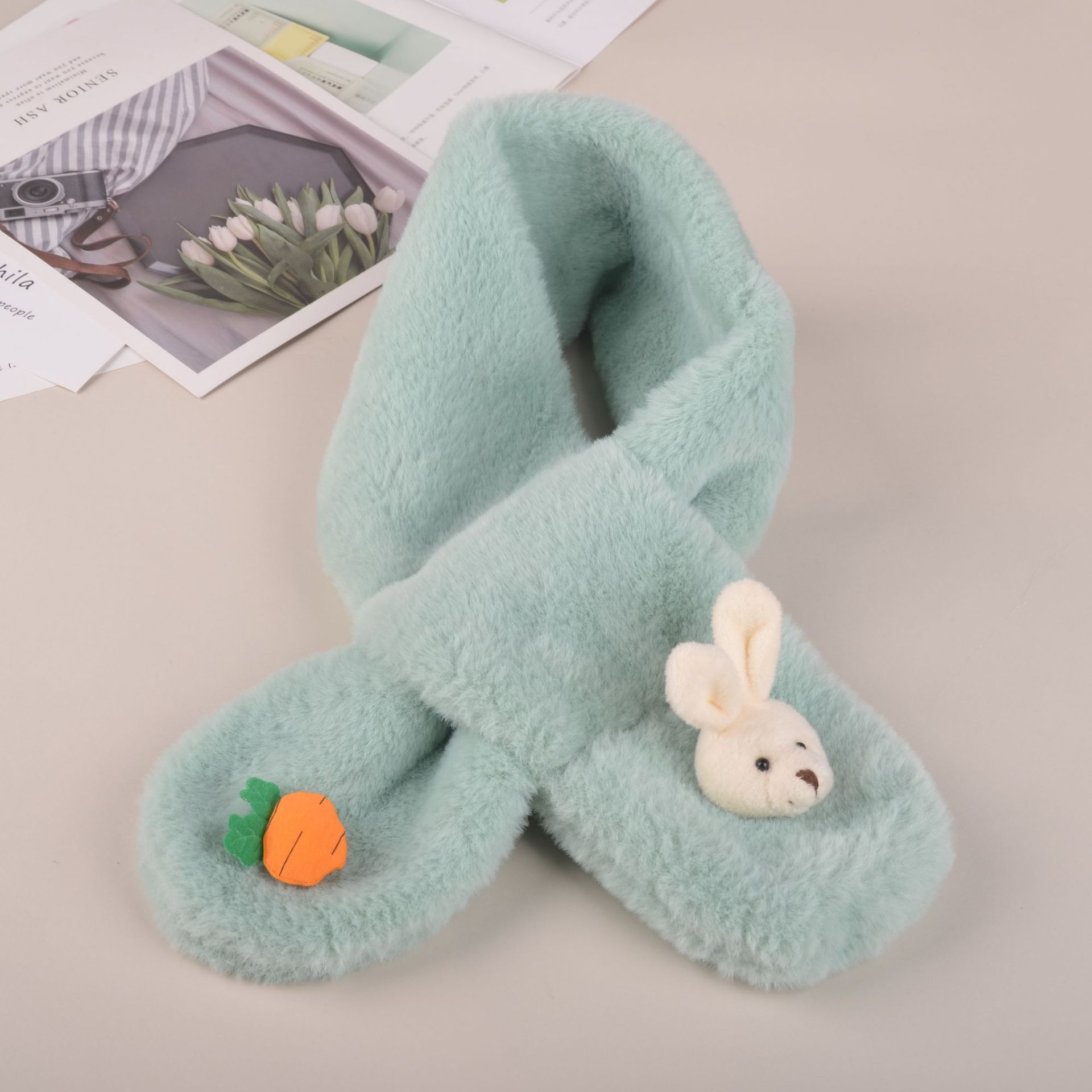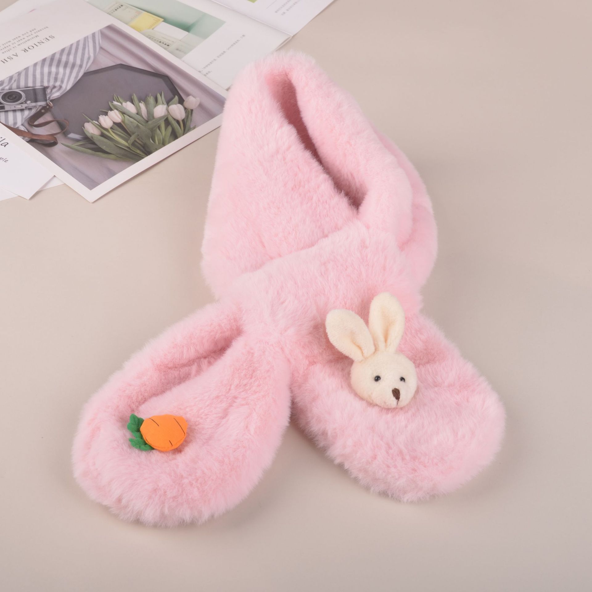 2022 한국식 어린이 스카프 가을과 겨울 귀여운 봉제 부모-자식 귀여운 두꺼운 토끼 모조 토끼 모피 아기 스카프스토어 가기