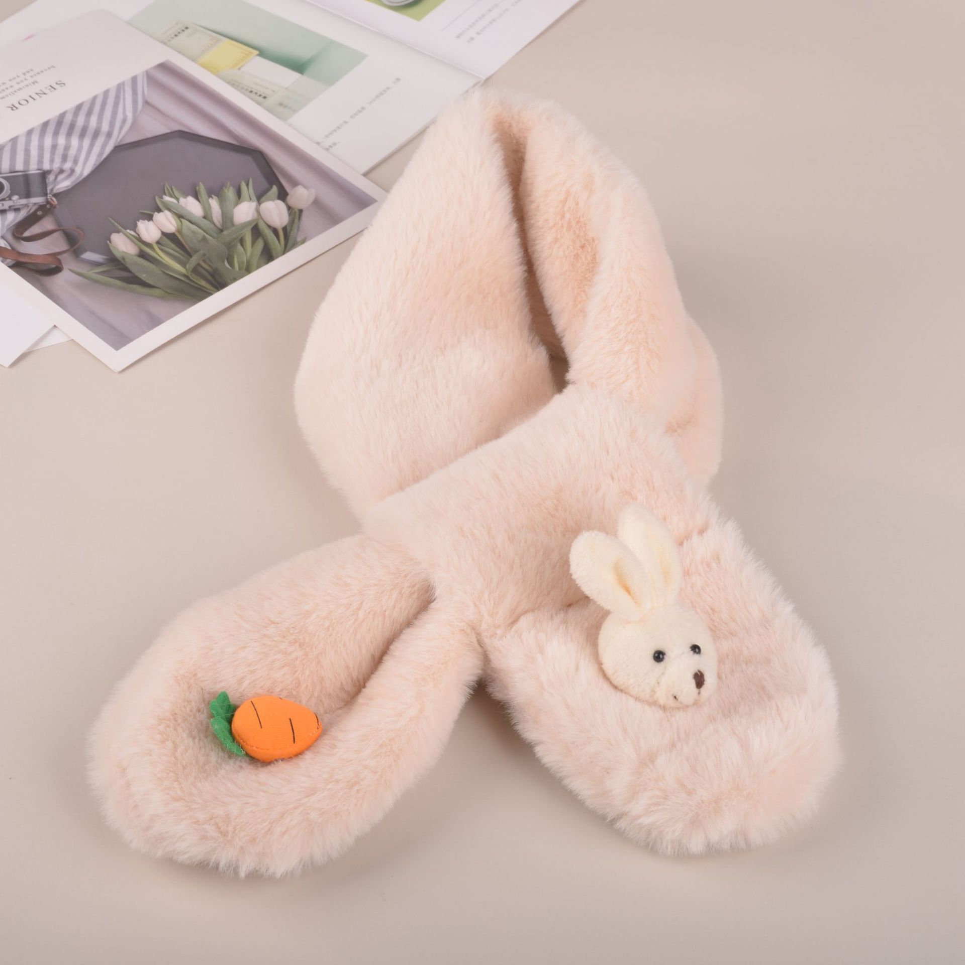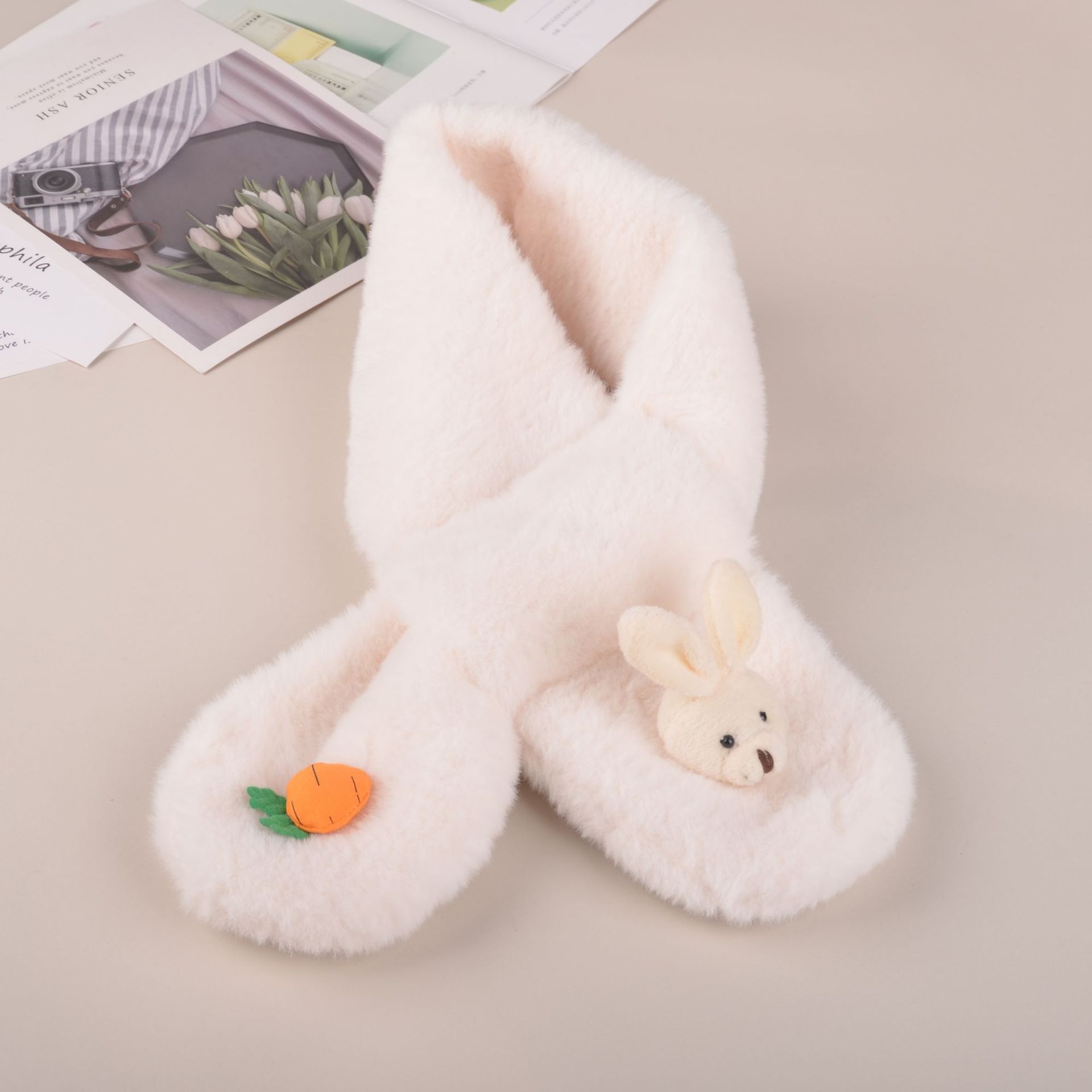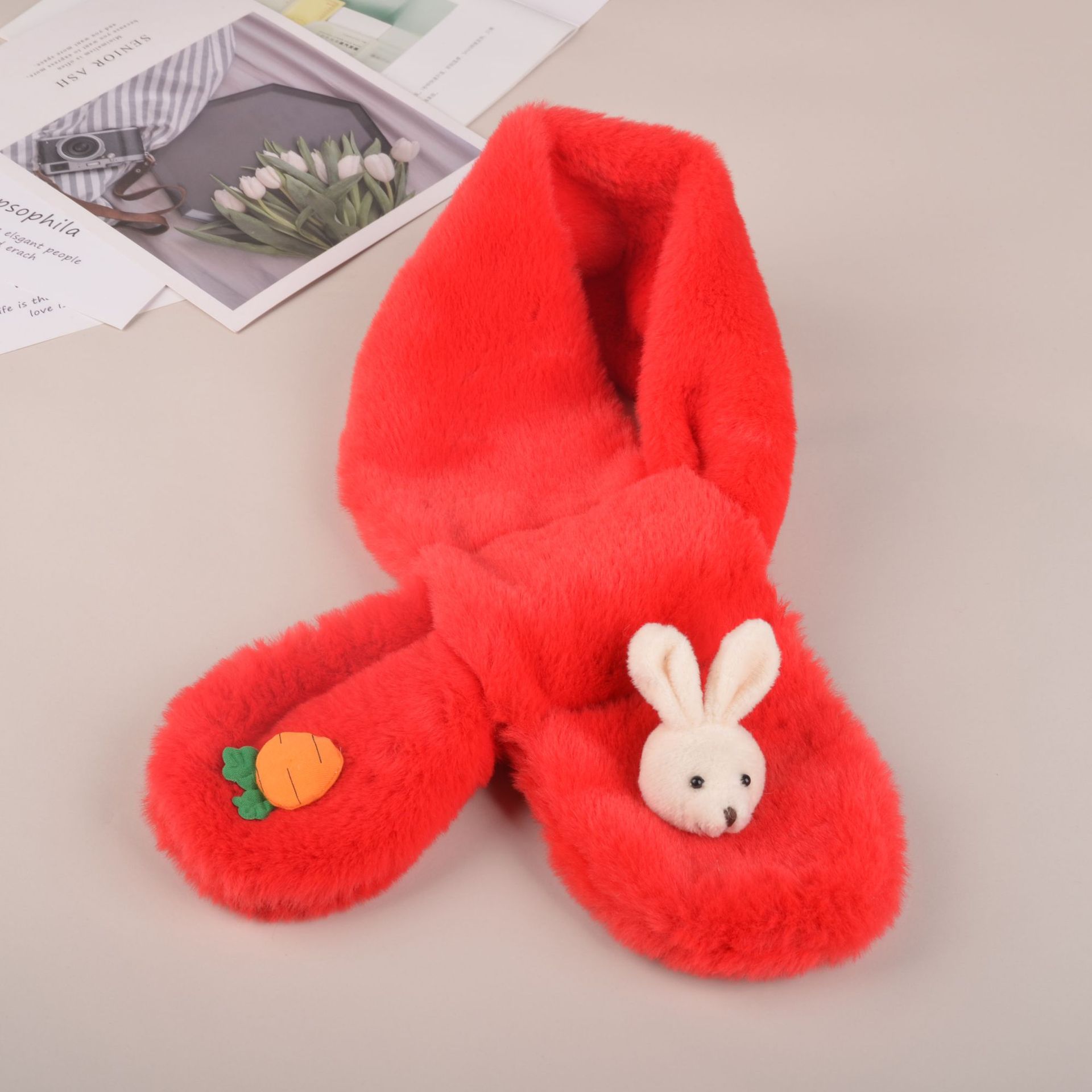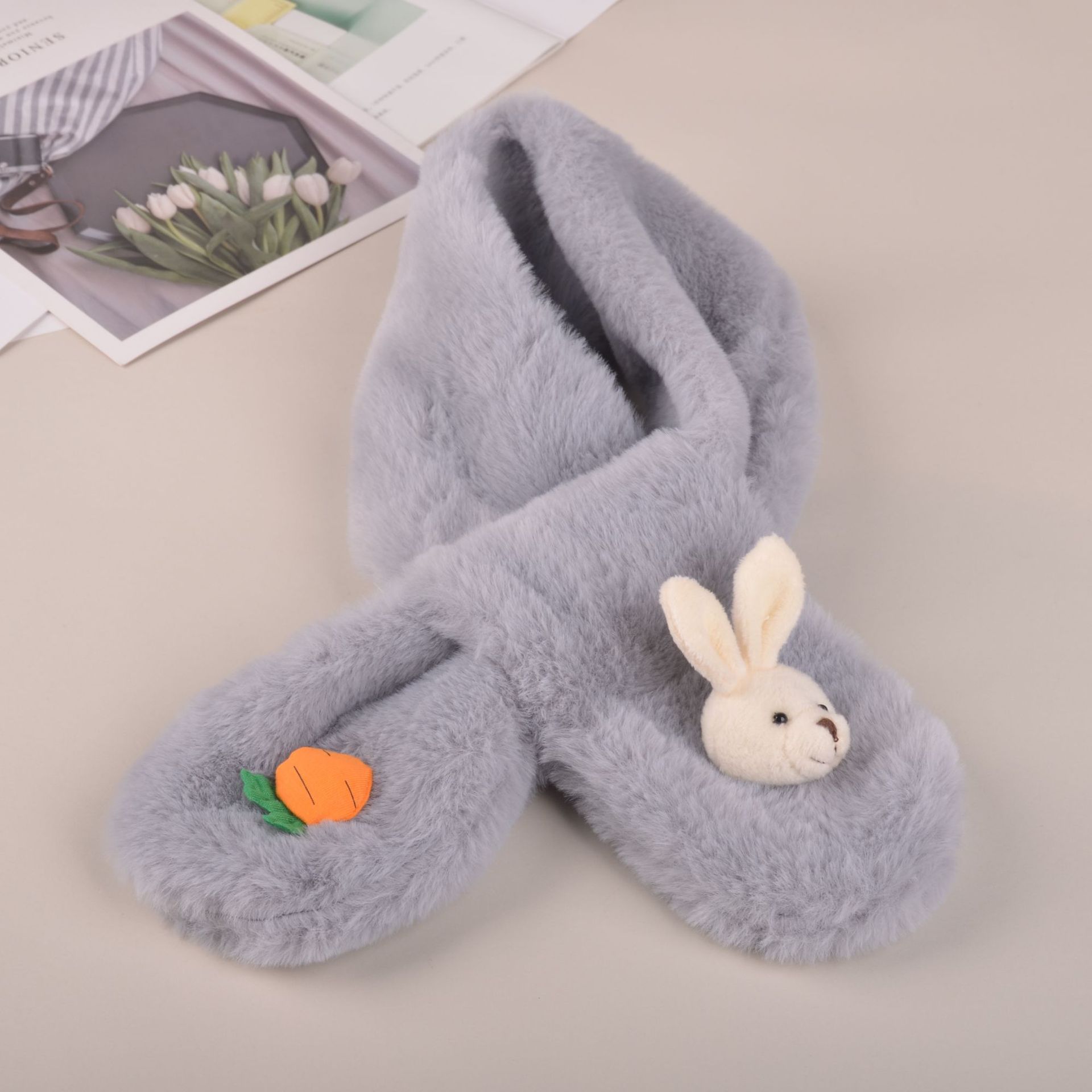 2022 한국식 어린이 스카프 가을과 겨울 귀여운 봉제 부모-자식 귀여운 두꺼운 토끼 모조 토끼 모피 아기 스카프