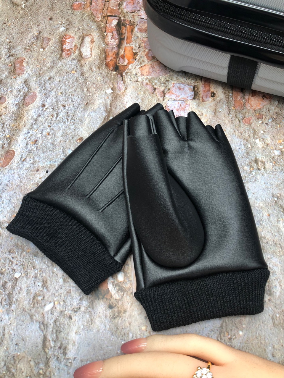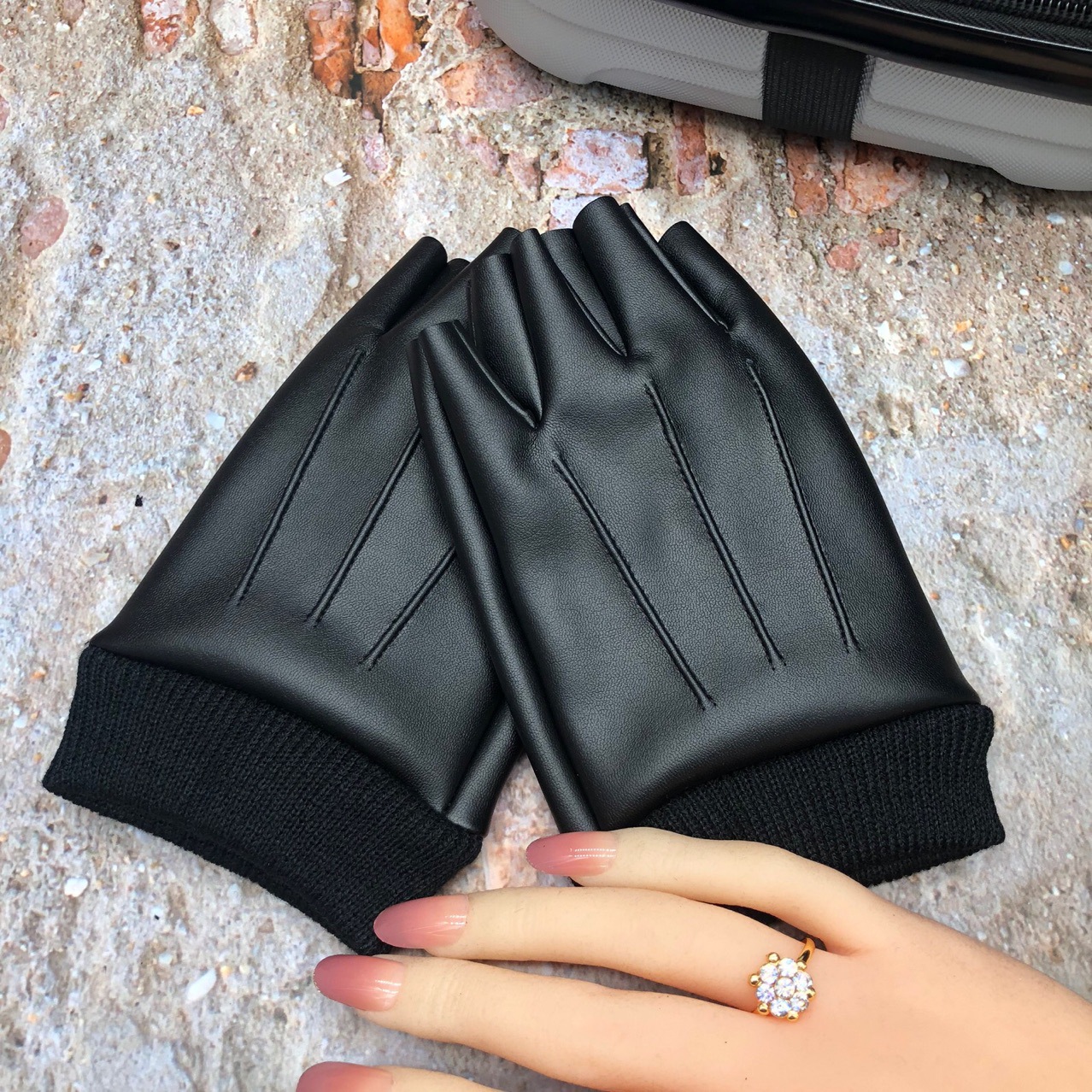 겨울 기모 검은 반 손가락 열려있는 손가락 장갑 야외 사이클링 계산원 재생 휴대 전화 따뜻한 미끄럼 방지 방수
