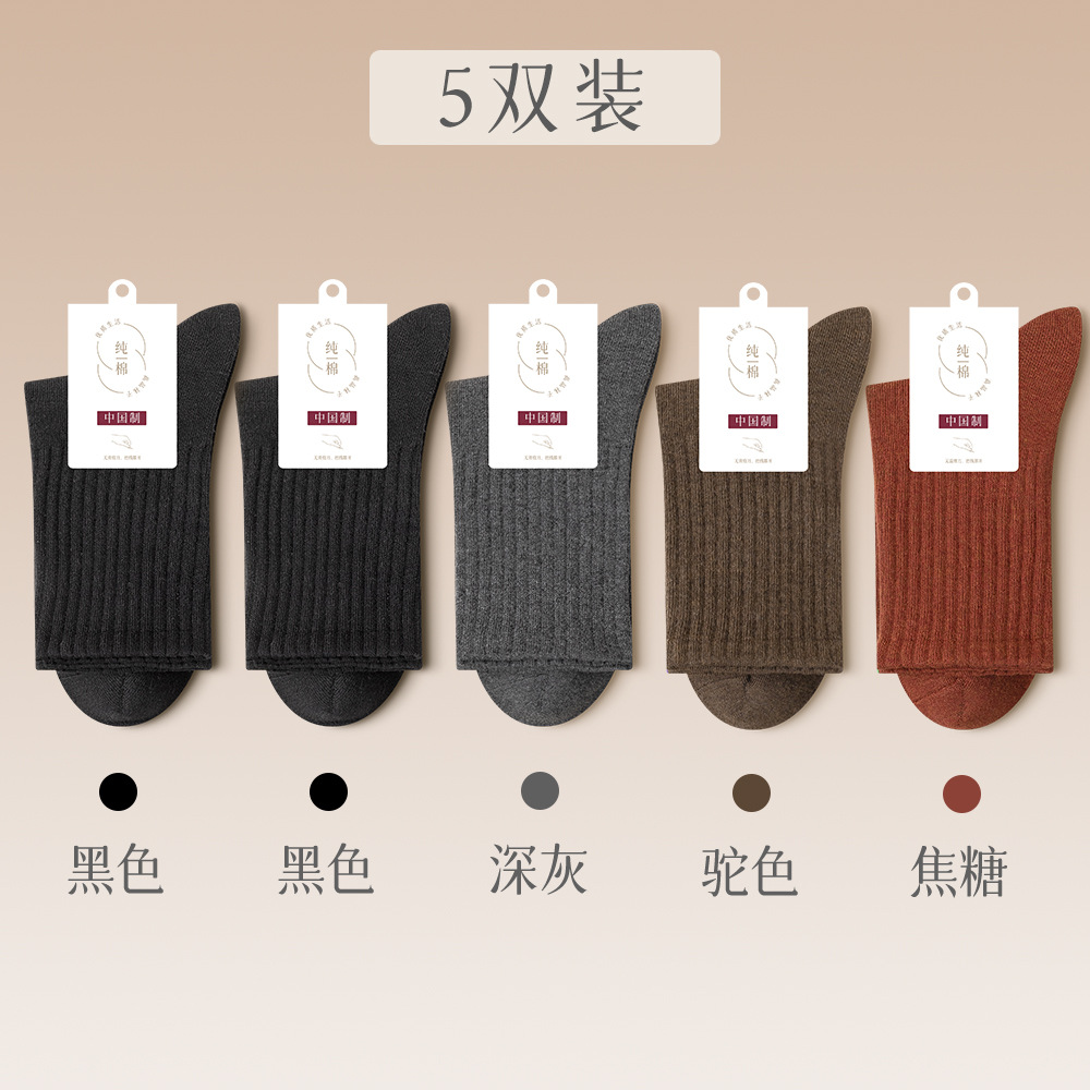 여성용 순면 양말, 가을 겨울용 땀 흡수 통기성 항균 롱 양말, 순면 미드 양말, 겨울용 블랙 사계절 양말, 트렌디하고 다용도스토어 가기