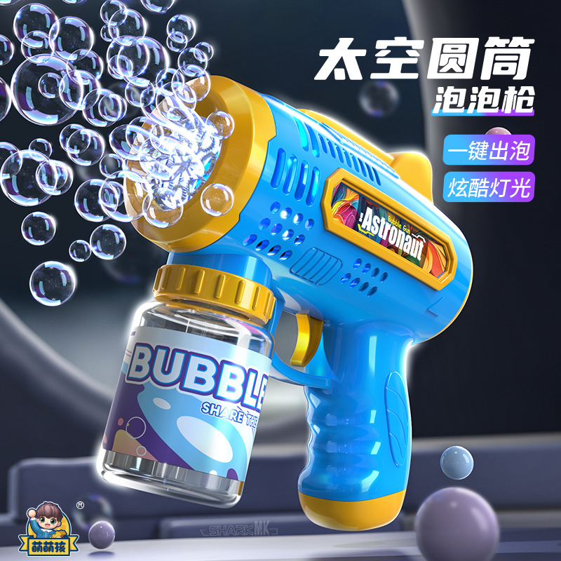 新款8孔太空泡泡枪儿童玩具全自动灯光加特林电动泡泡机手持不漏