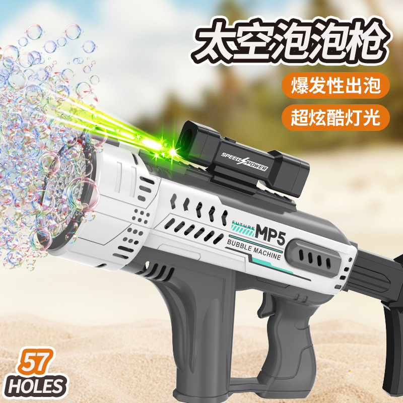 跨境57孔太空泡泡枪全自动MP5加特林手持电动泡泡玩具灯光泡泡机