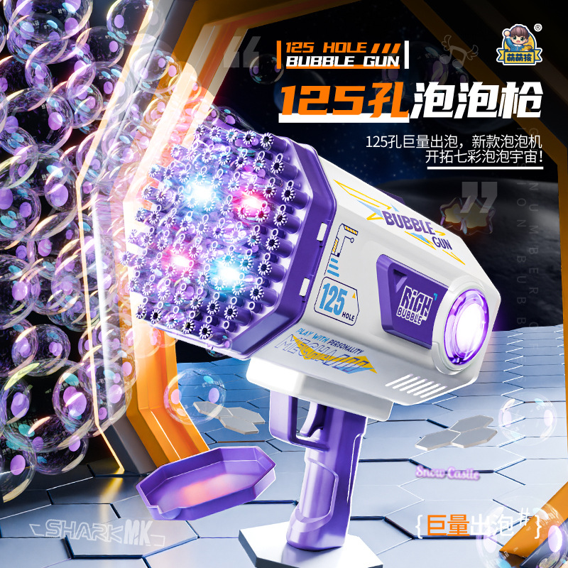 跨境火箭筒泡泡机手持125孔60孔加特林灯光泡泡玩具电动泡泡枪