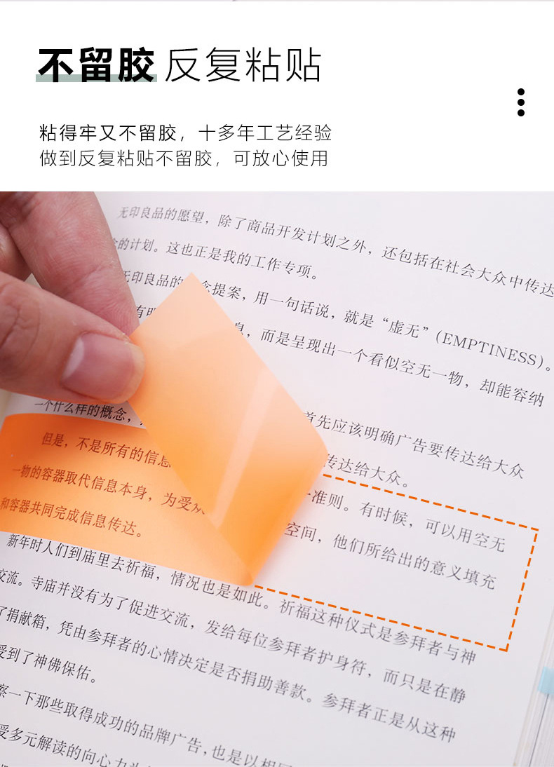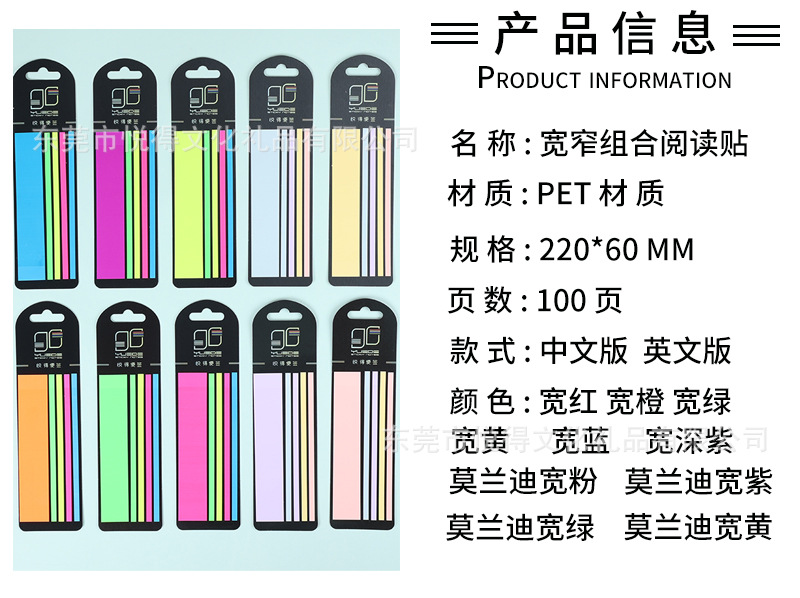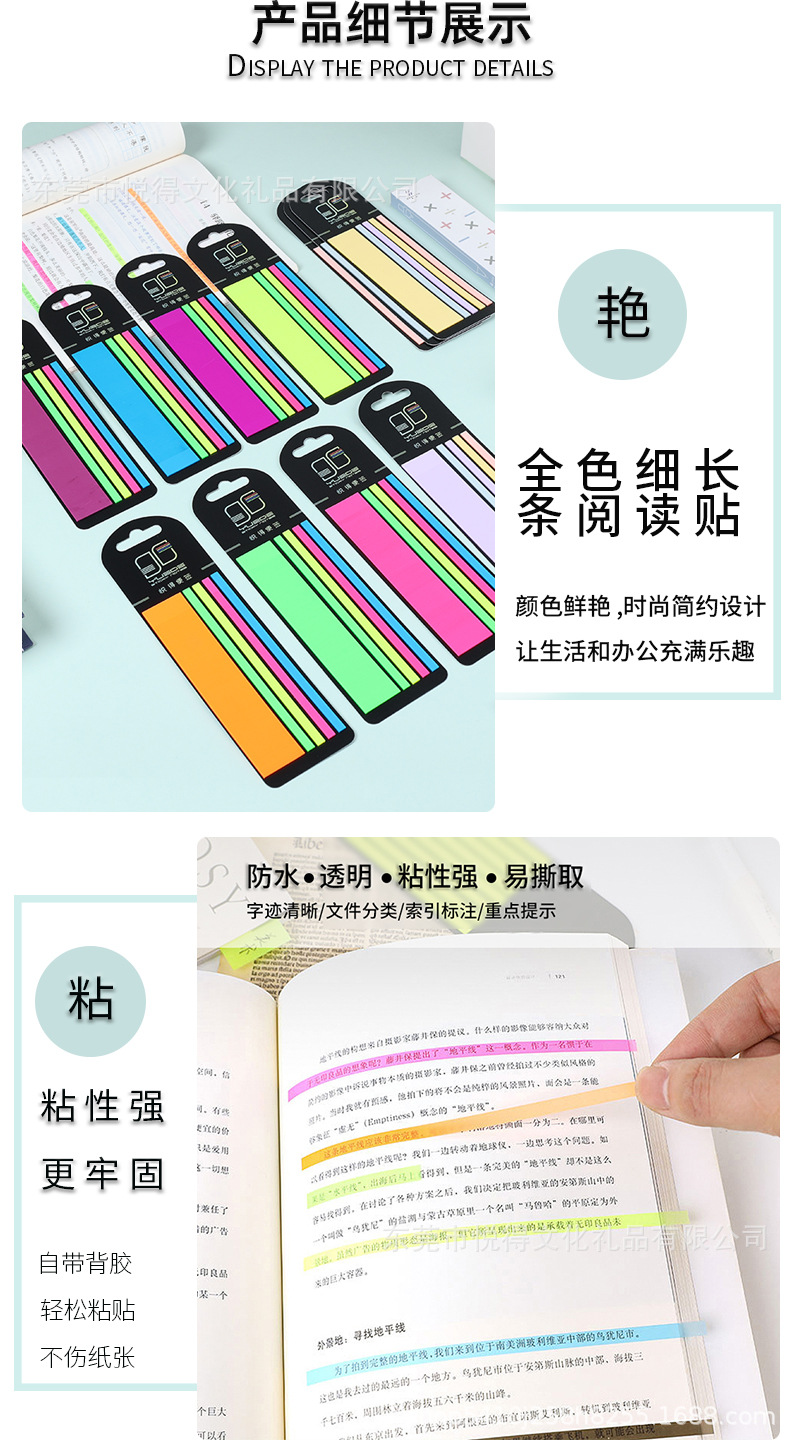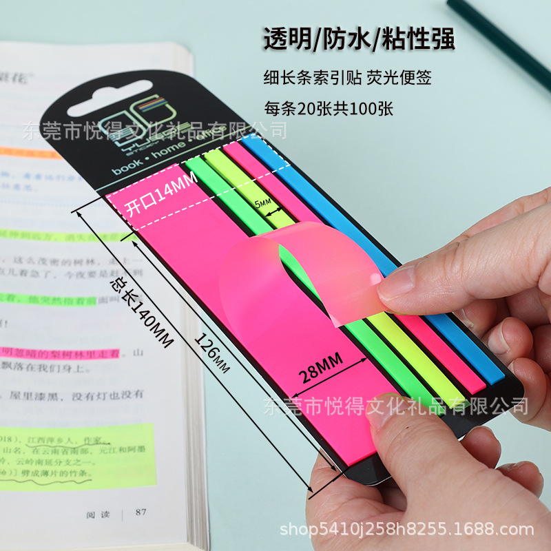 투명한 포스트잇, 강력한 접착력, 긴 스트립 메모지, 플라스틱 반투명 마커, 얇고 긴 PET 스트립, 멋진 디자인