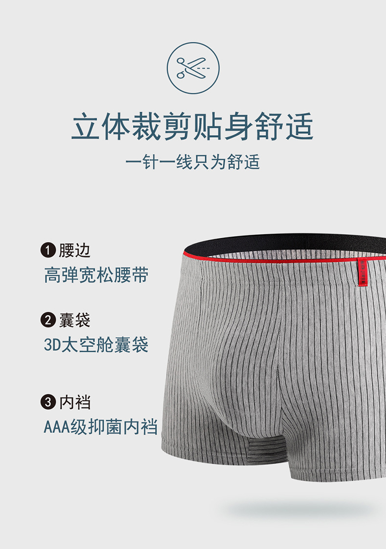 순면 통기성 남성 속옷 항균 니트 스트라이프 사각팬티 플러스 사이즈 큰 남성용 순면 사각팬티스토어 가기