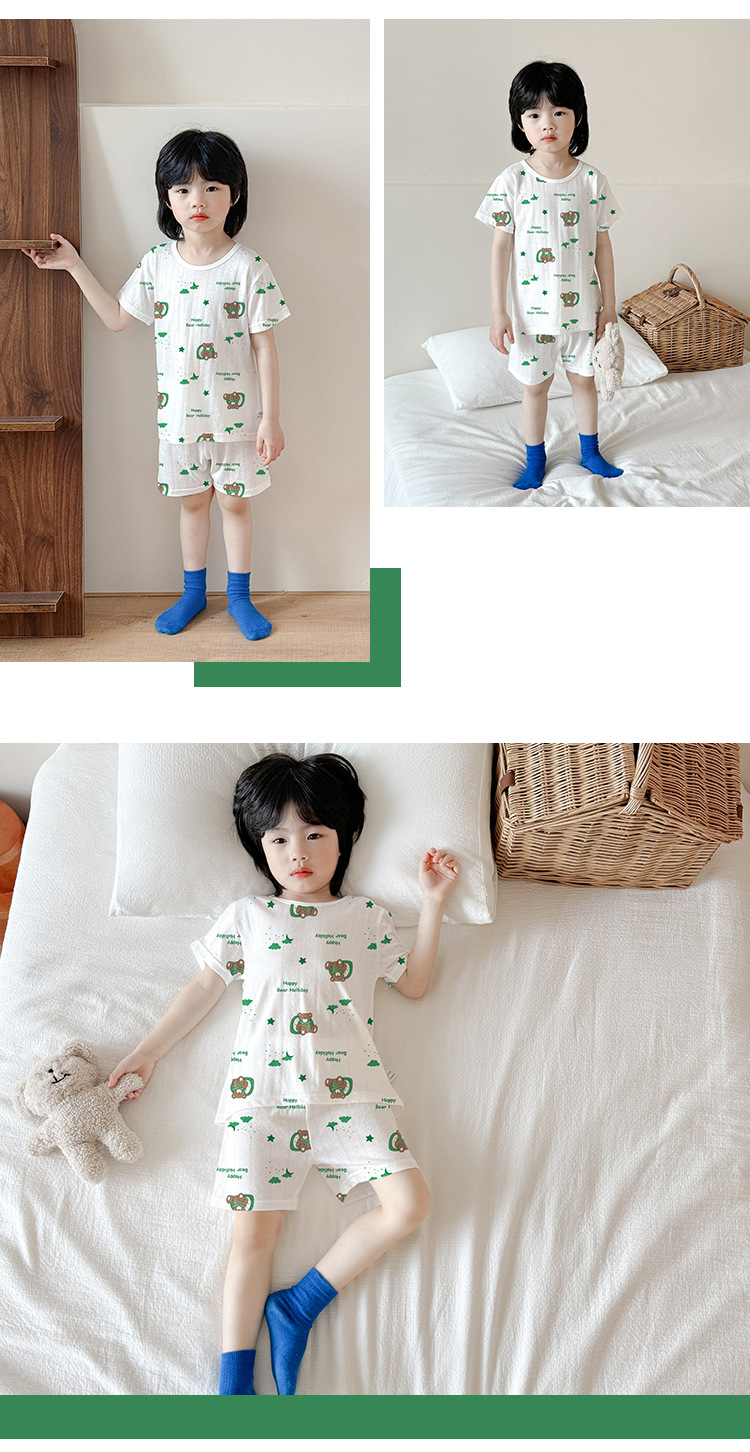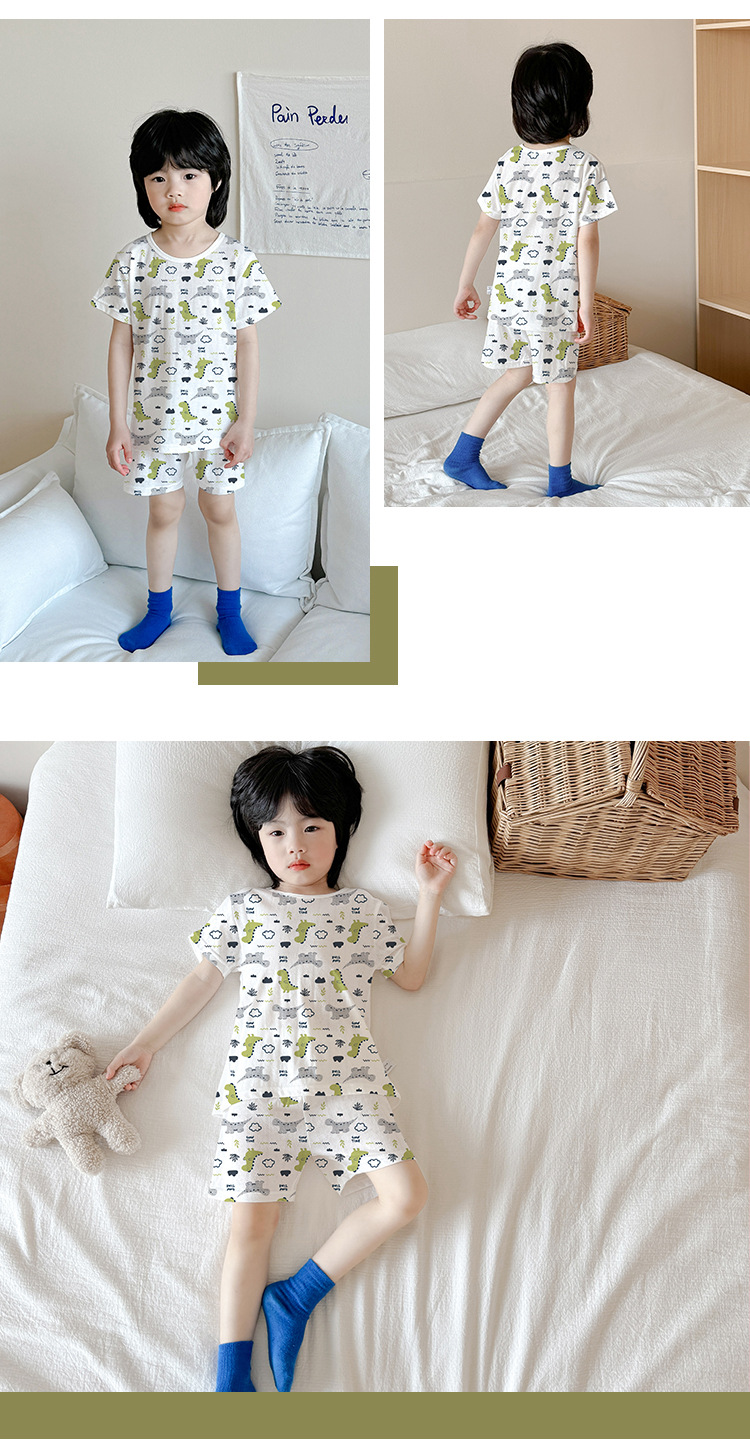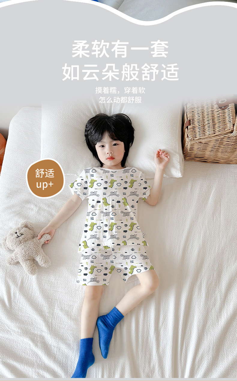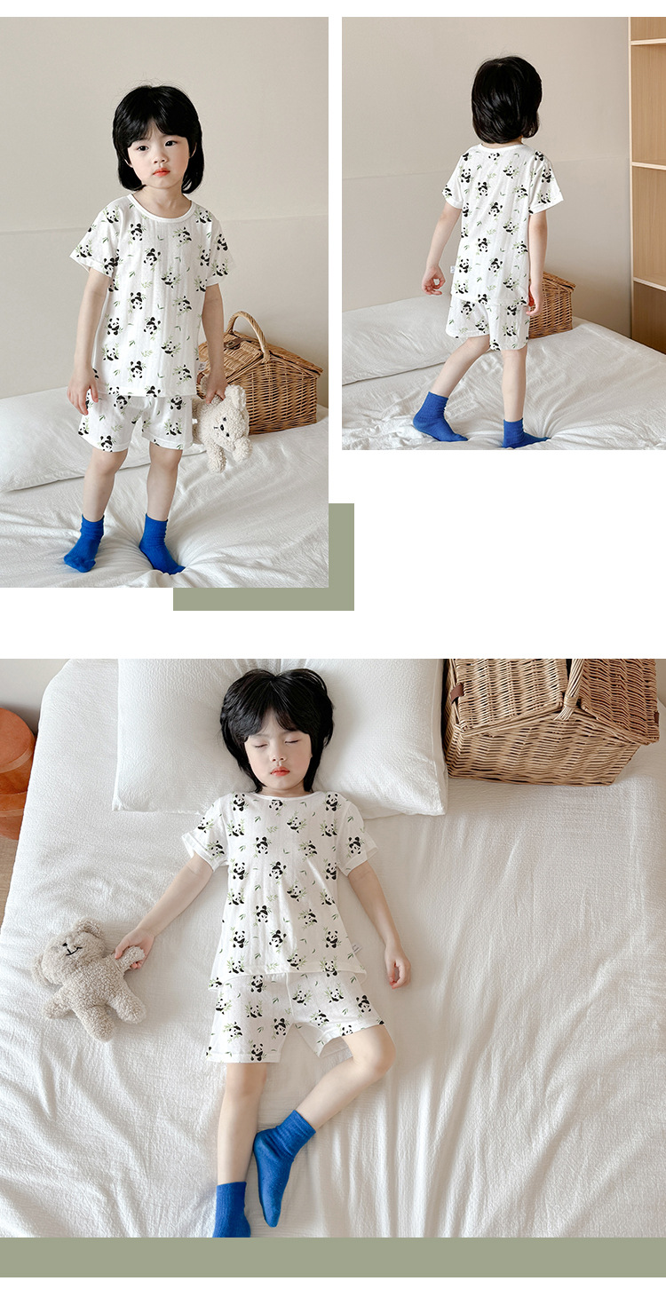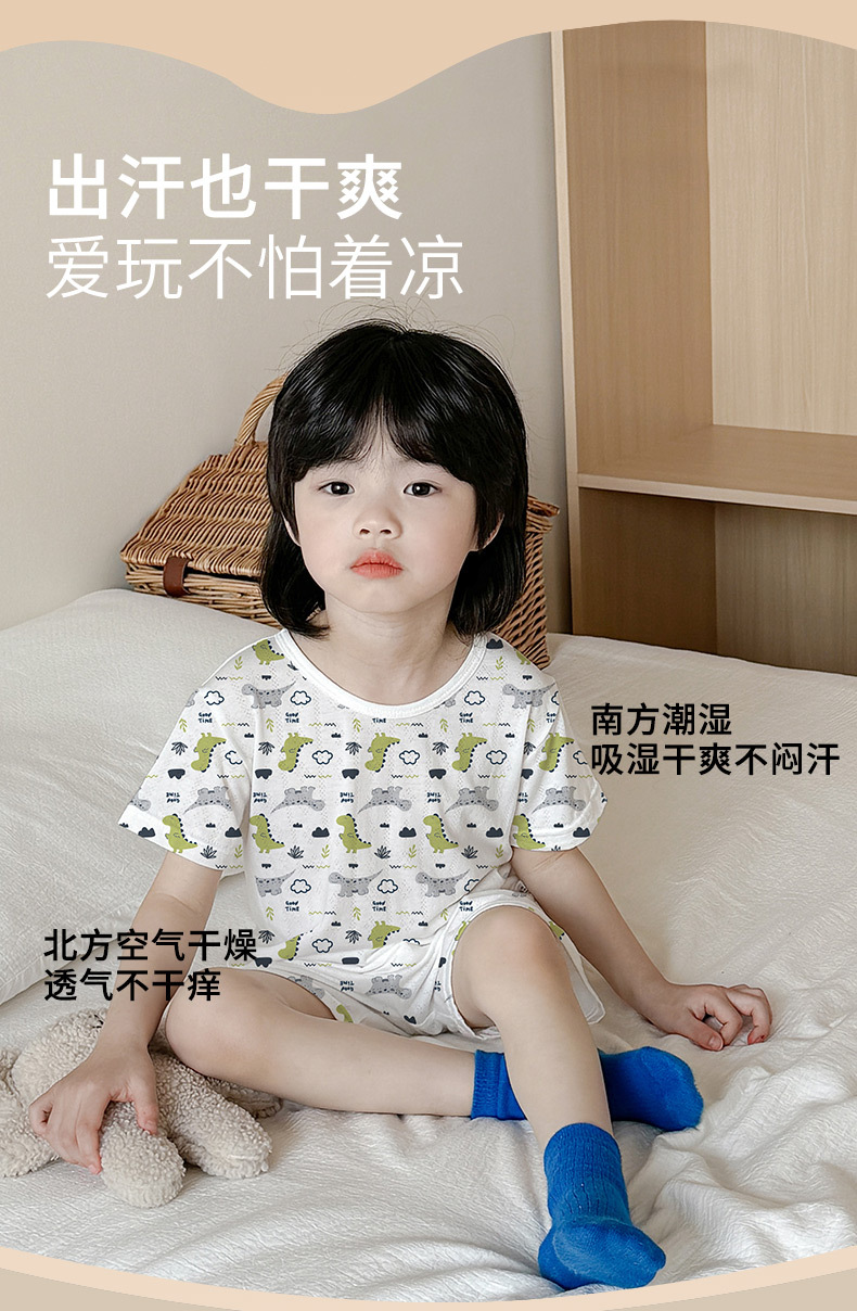 66-150cm 소녀 여름 가볍고 통기성 반팔 반바지 가정 의류 어린이 편안한 대나무 섬유 잠옷스토어 가기