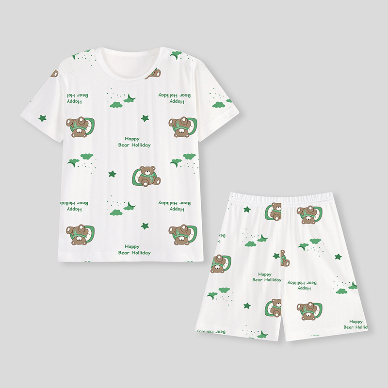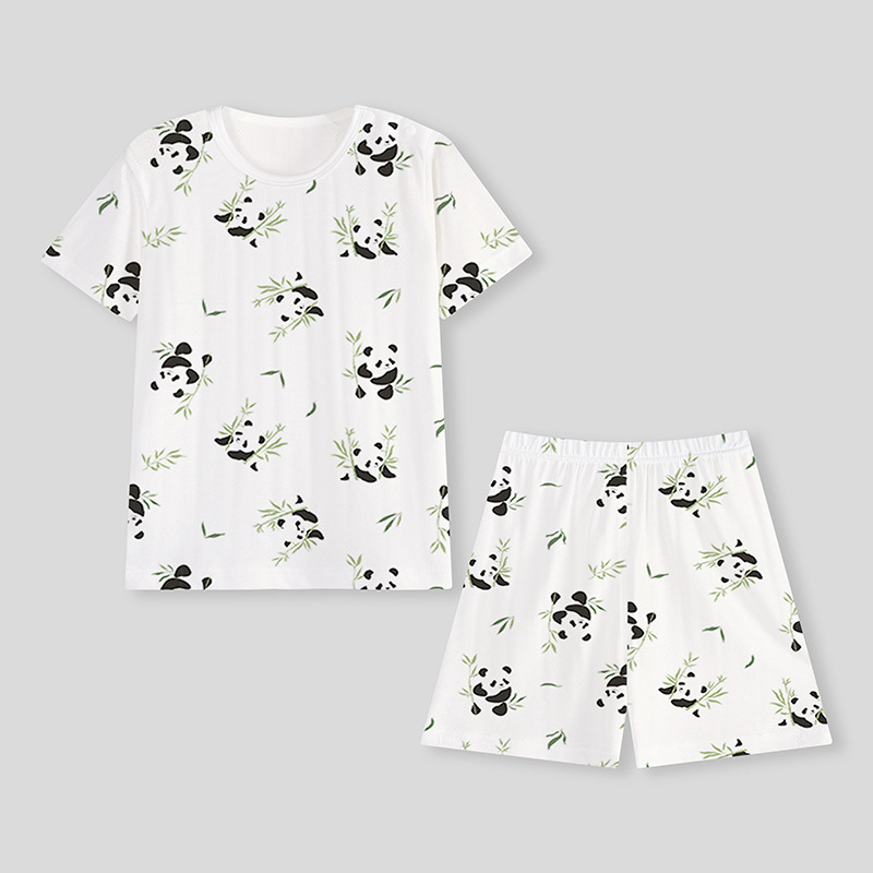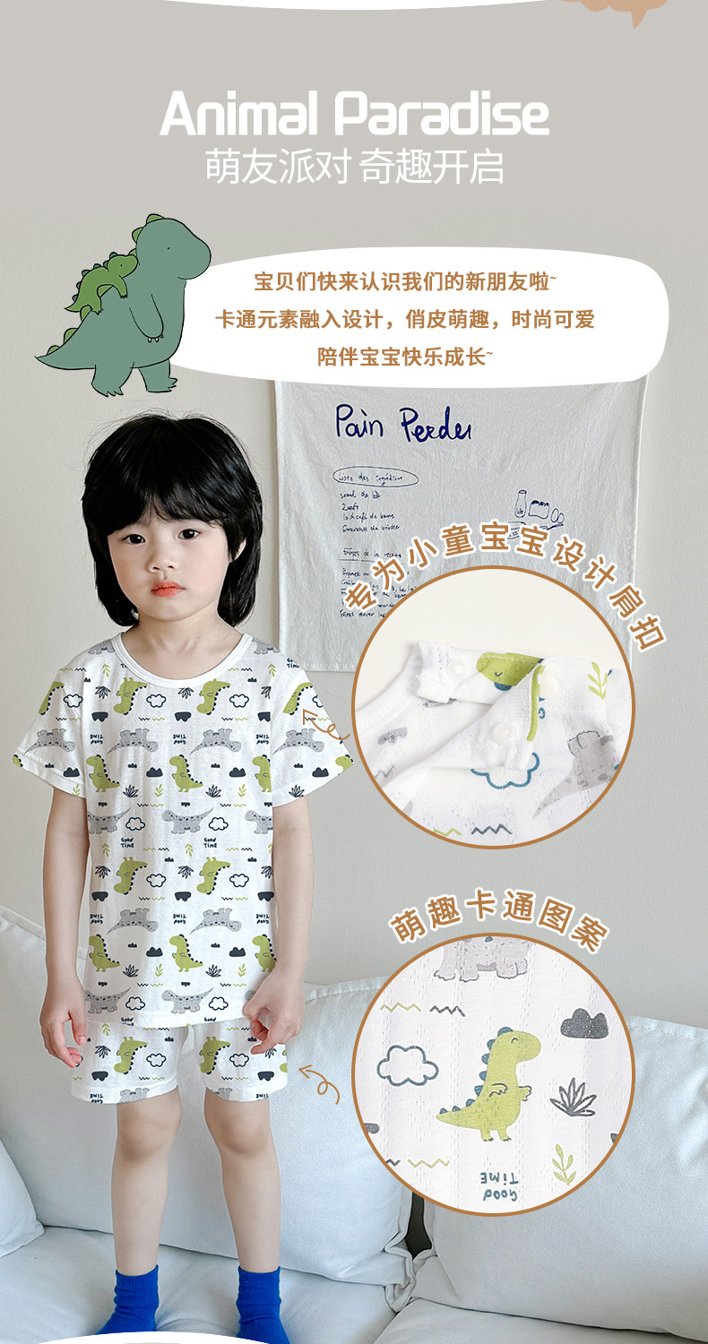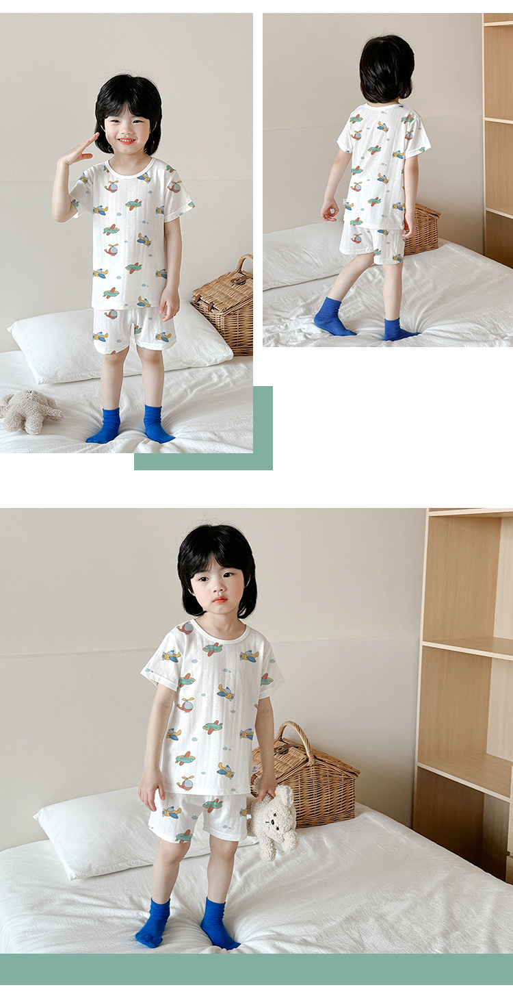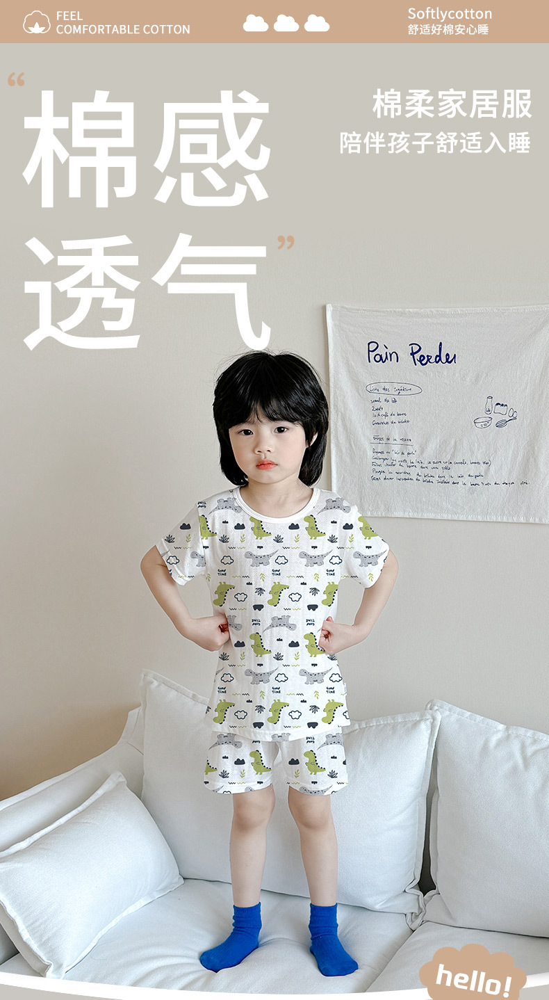 66-150cm 소녀 여름 가볍고 통기성 반팔 반바지 가정 의류 어린이 편안한 대나무 섬유 잠옷스토어 가기
