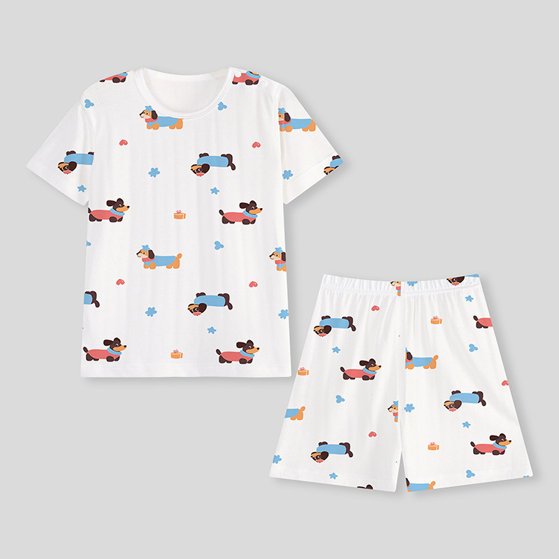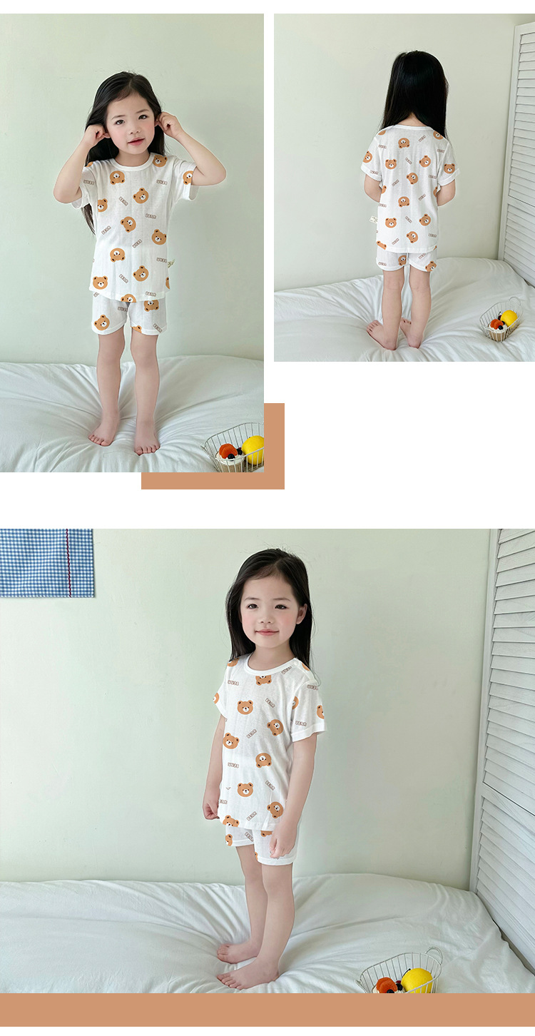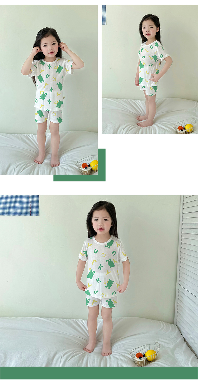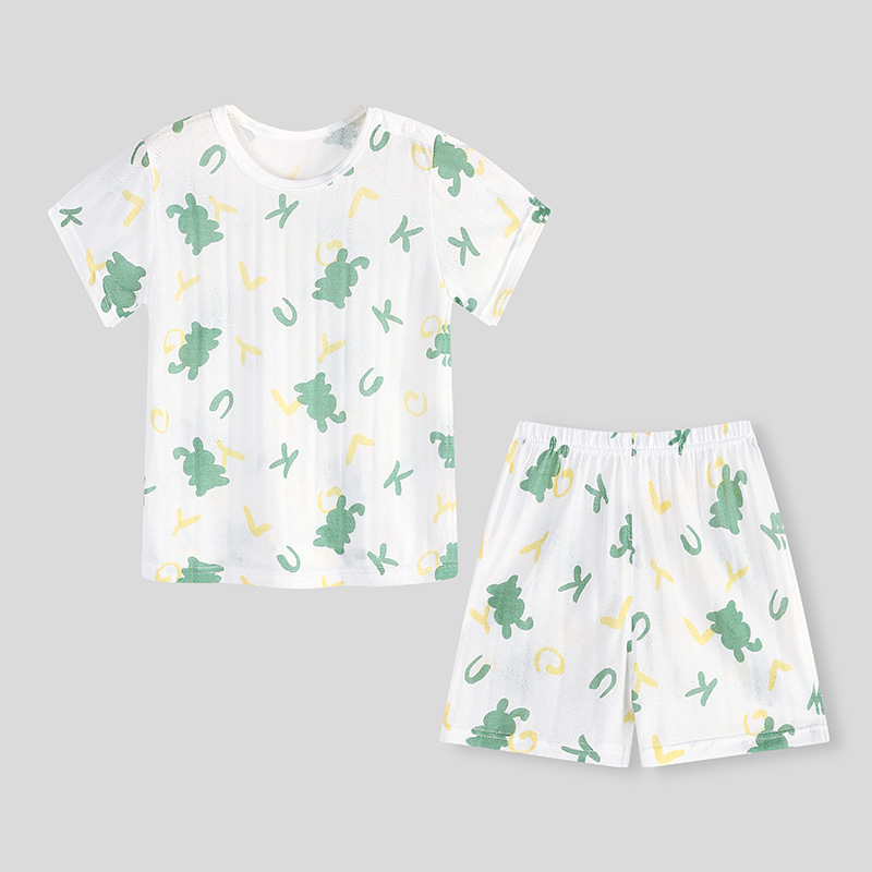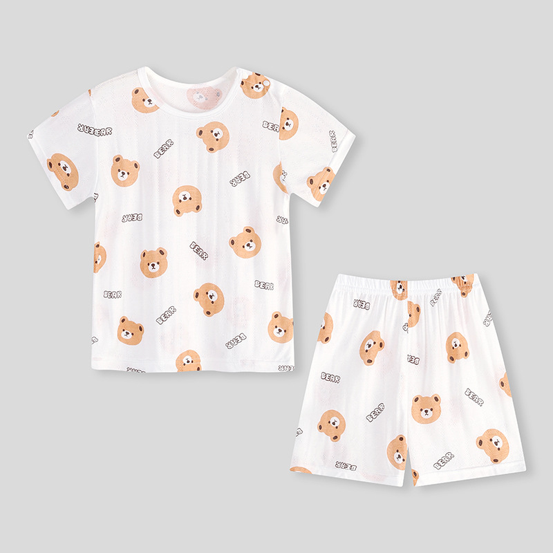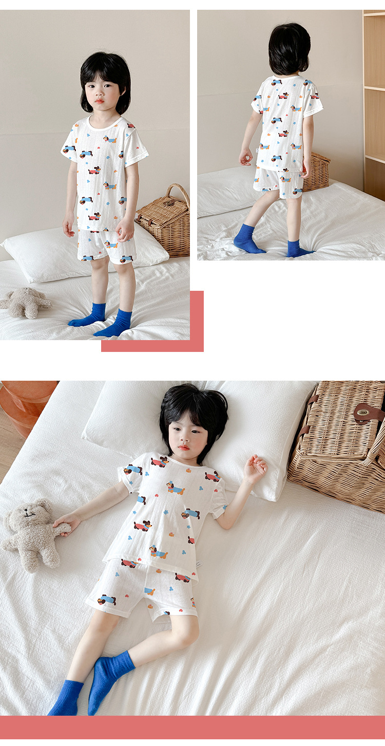 66-150cm 소녀 여름 가볍고 통기성 반팔 반바지 가정 의류 어린이 편안한 대나무 섬유 잠옷스토어 가기