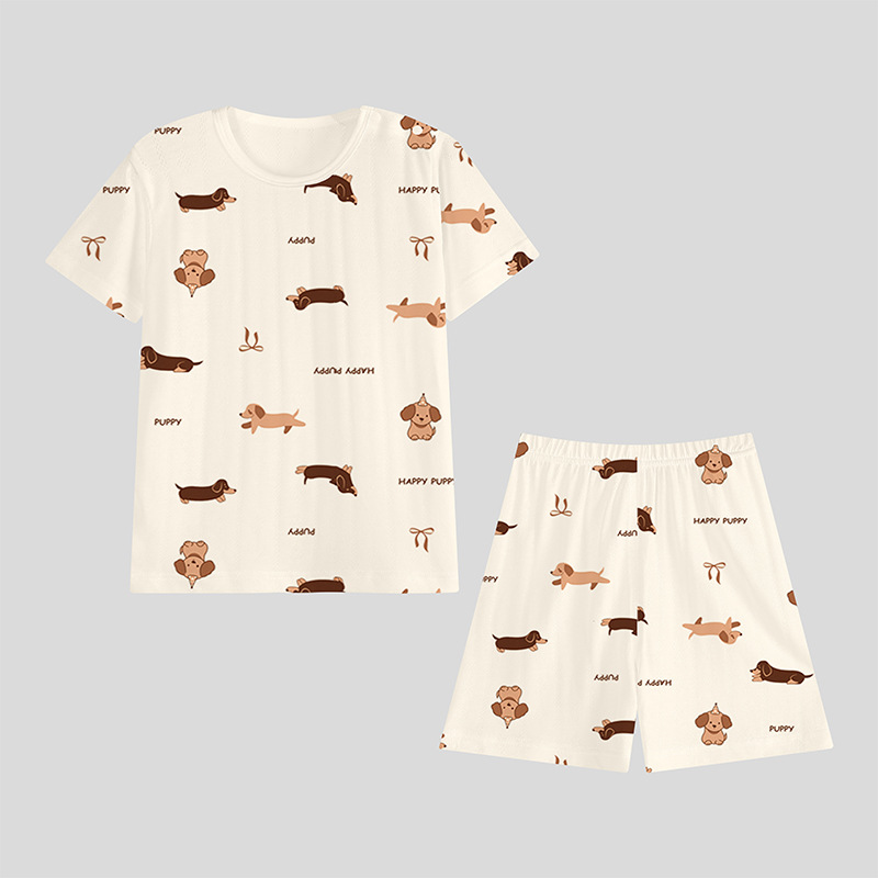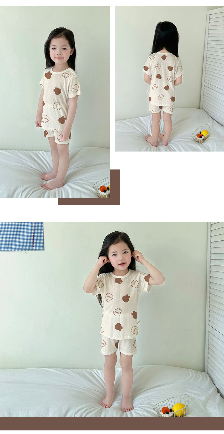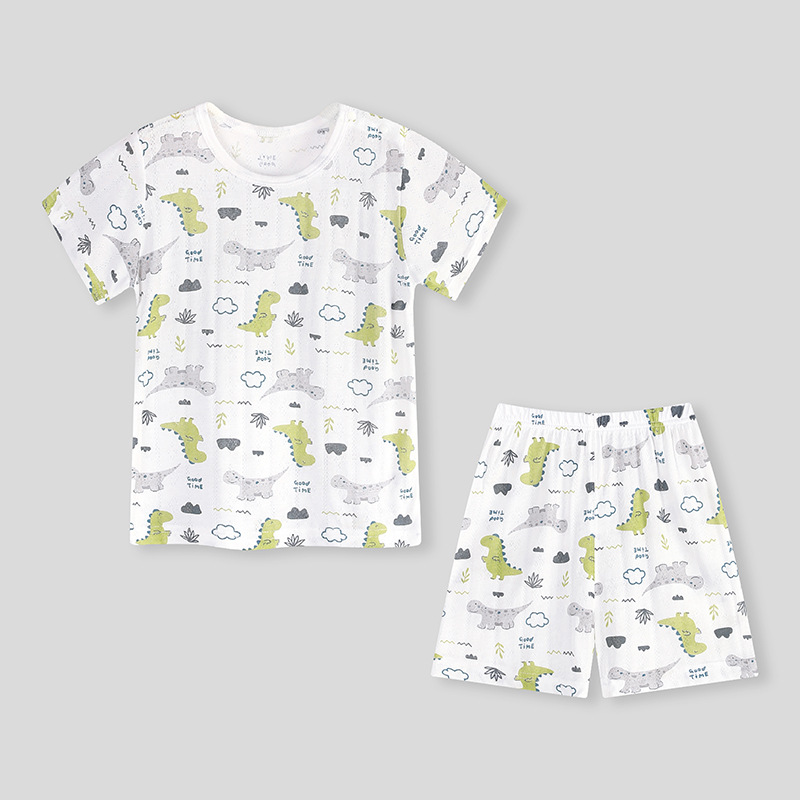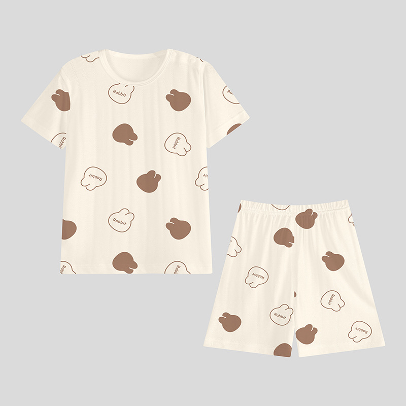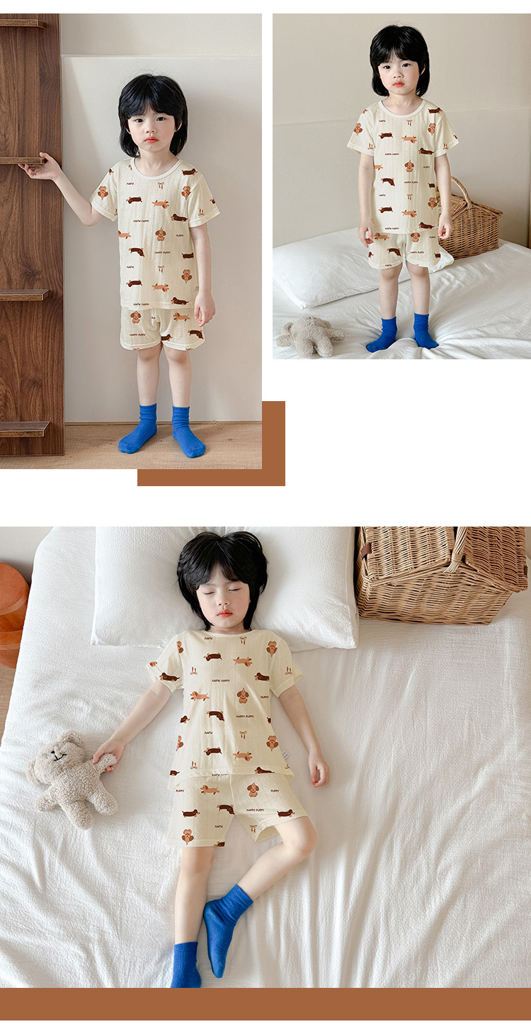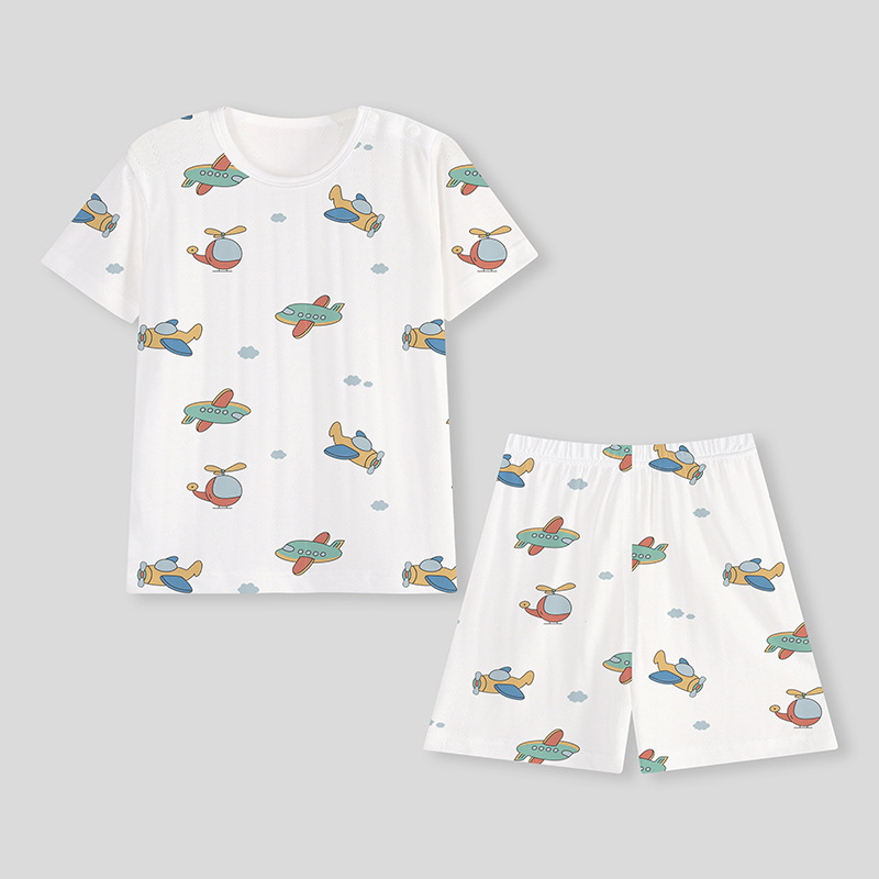66-150cm 소녀 여름 가볍고 통기성 반팔 반바지 가정 의류 어린이 편안한 대나무 섬유 잠옷스토어 가기