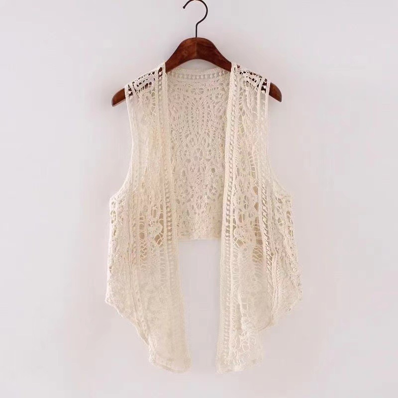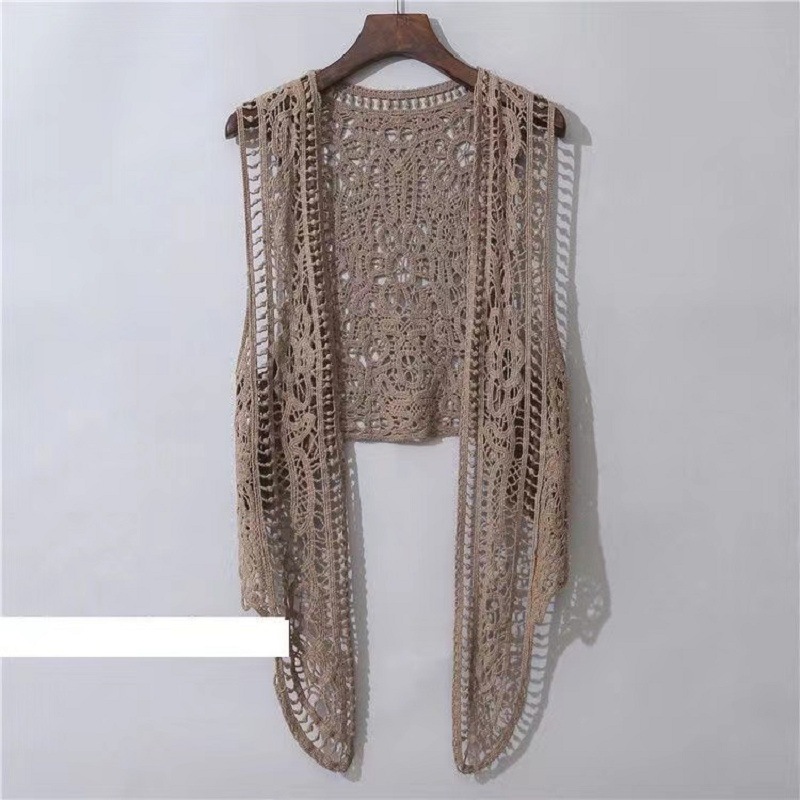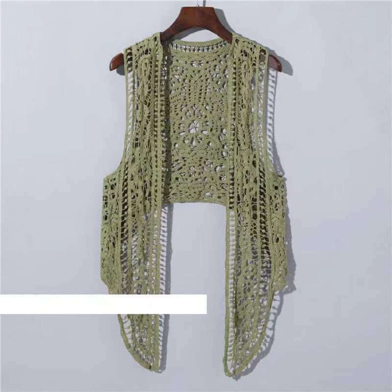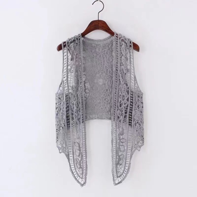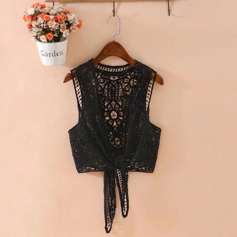 레이스 크로 셰 뜨개질 작은 조끼 여자의 여름 블랙 짧은 민소매 니트 카디건 조끼 얇은 조끼스토어 가기
